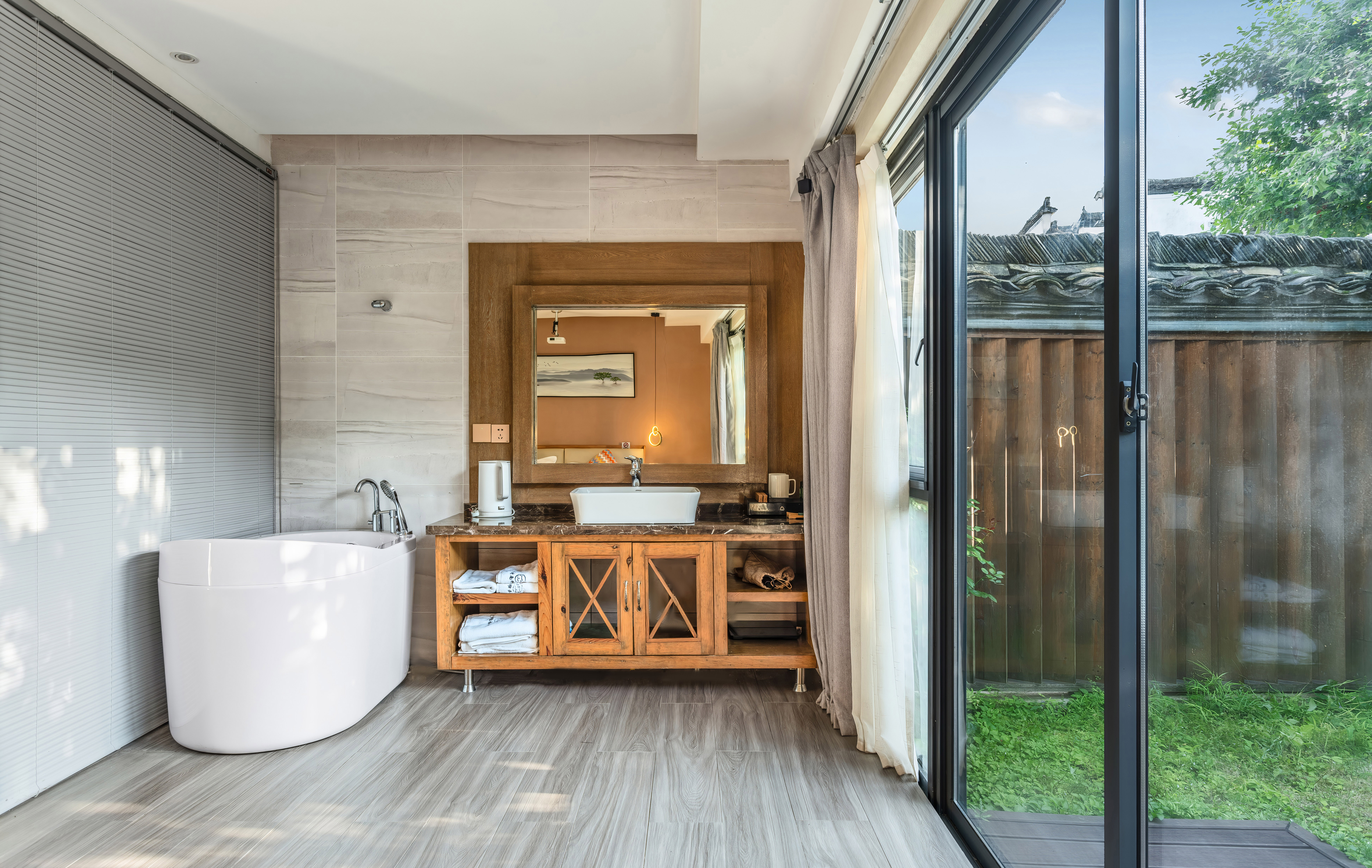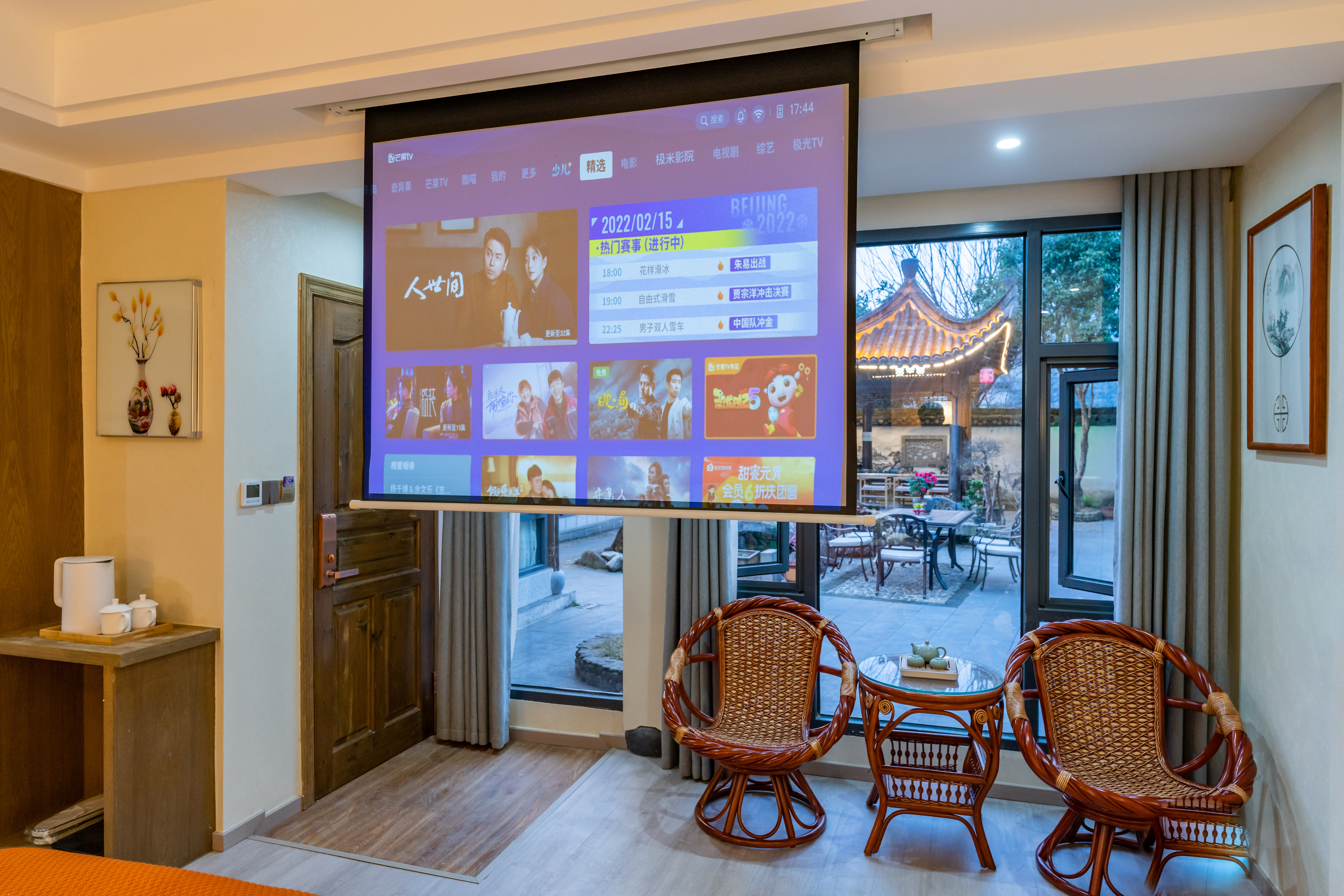 地暖·暮雨惬意温馨大床房(悠闲独院+巨幕投影)