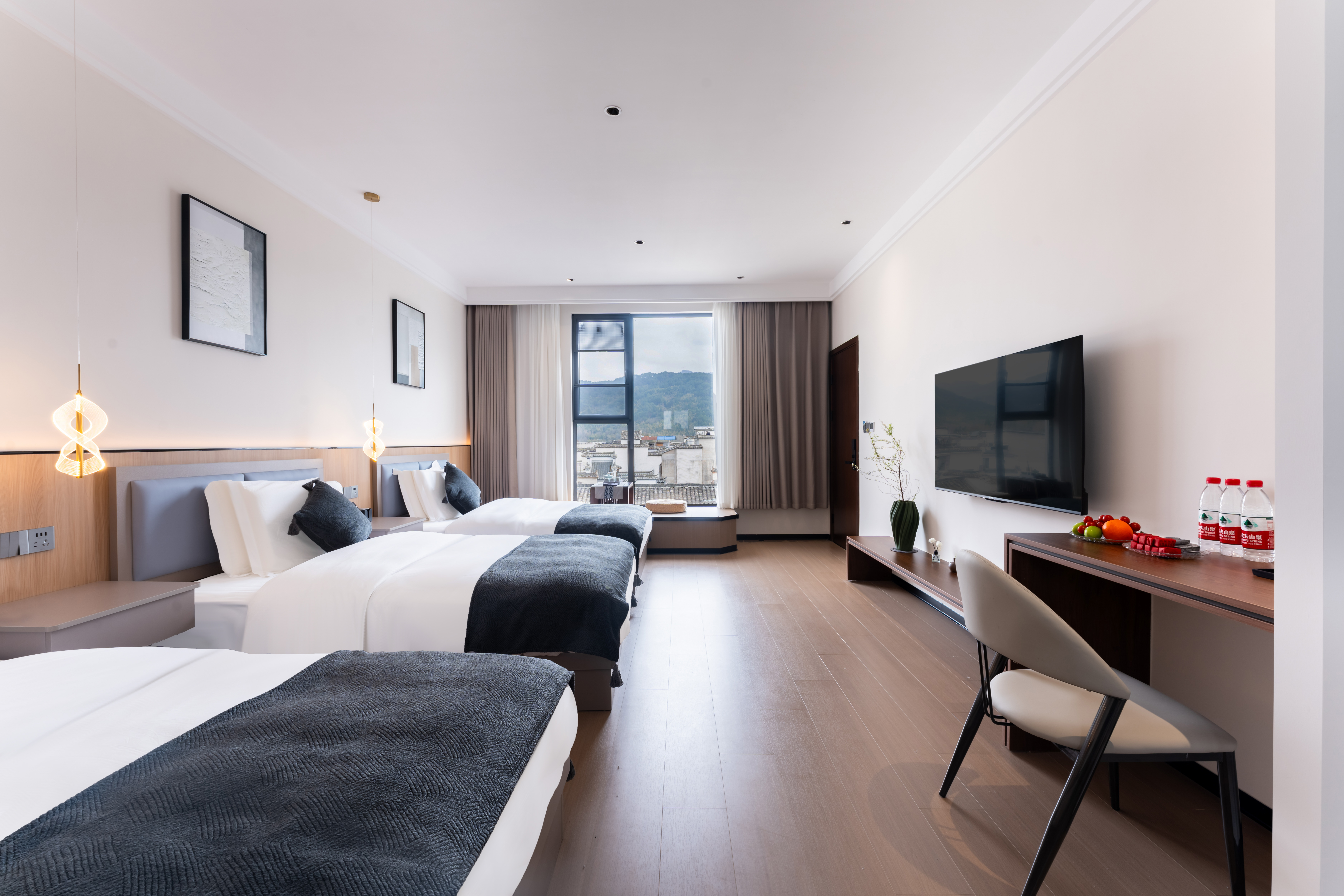 泊·栖休闲商务三人间+山景+乳胶床垫枕头+鹅绒被
