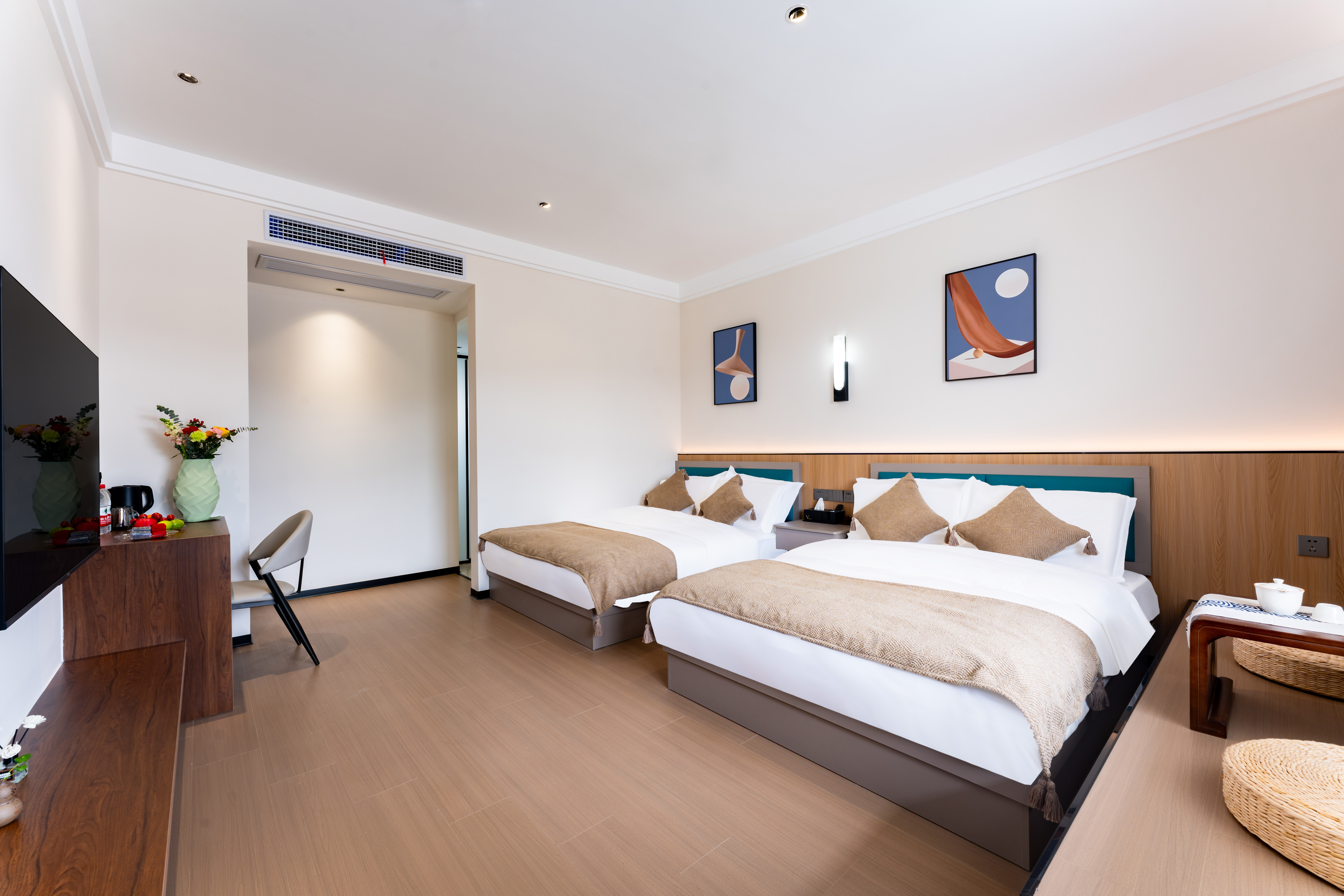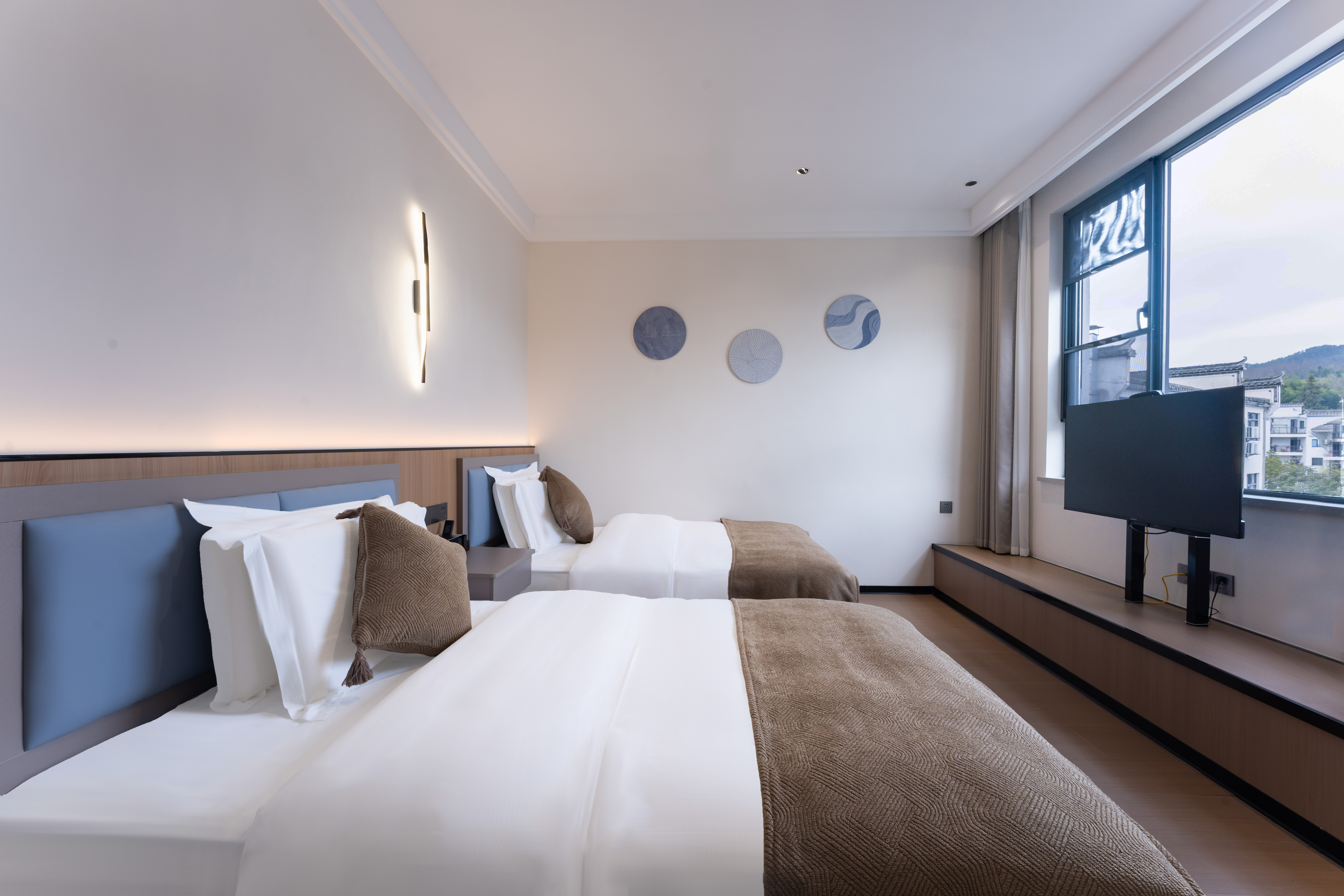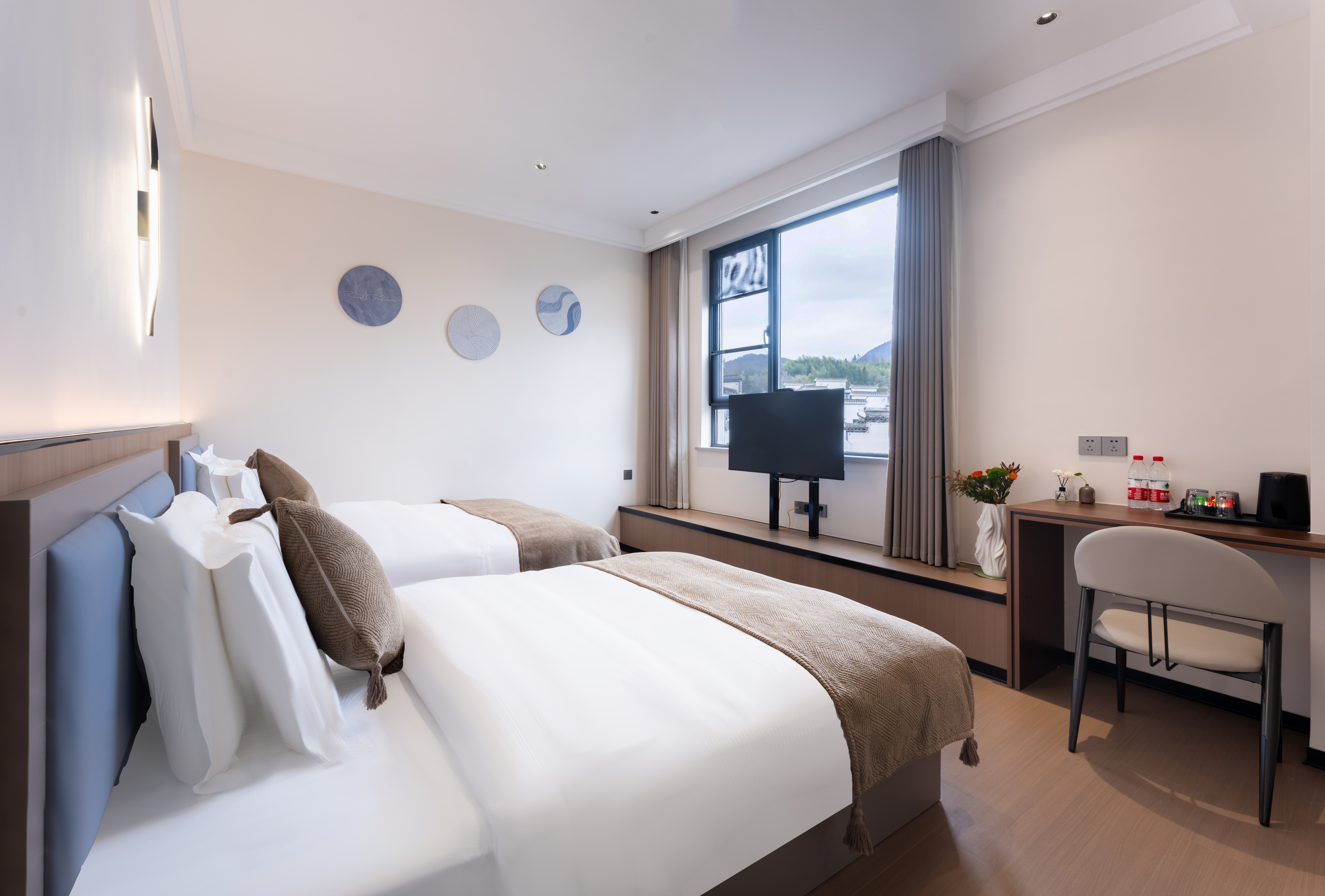 泊·然精选高级双床房+山景+乳胶床垫枕头+鹅绒被