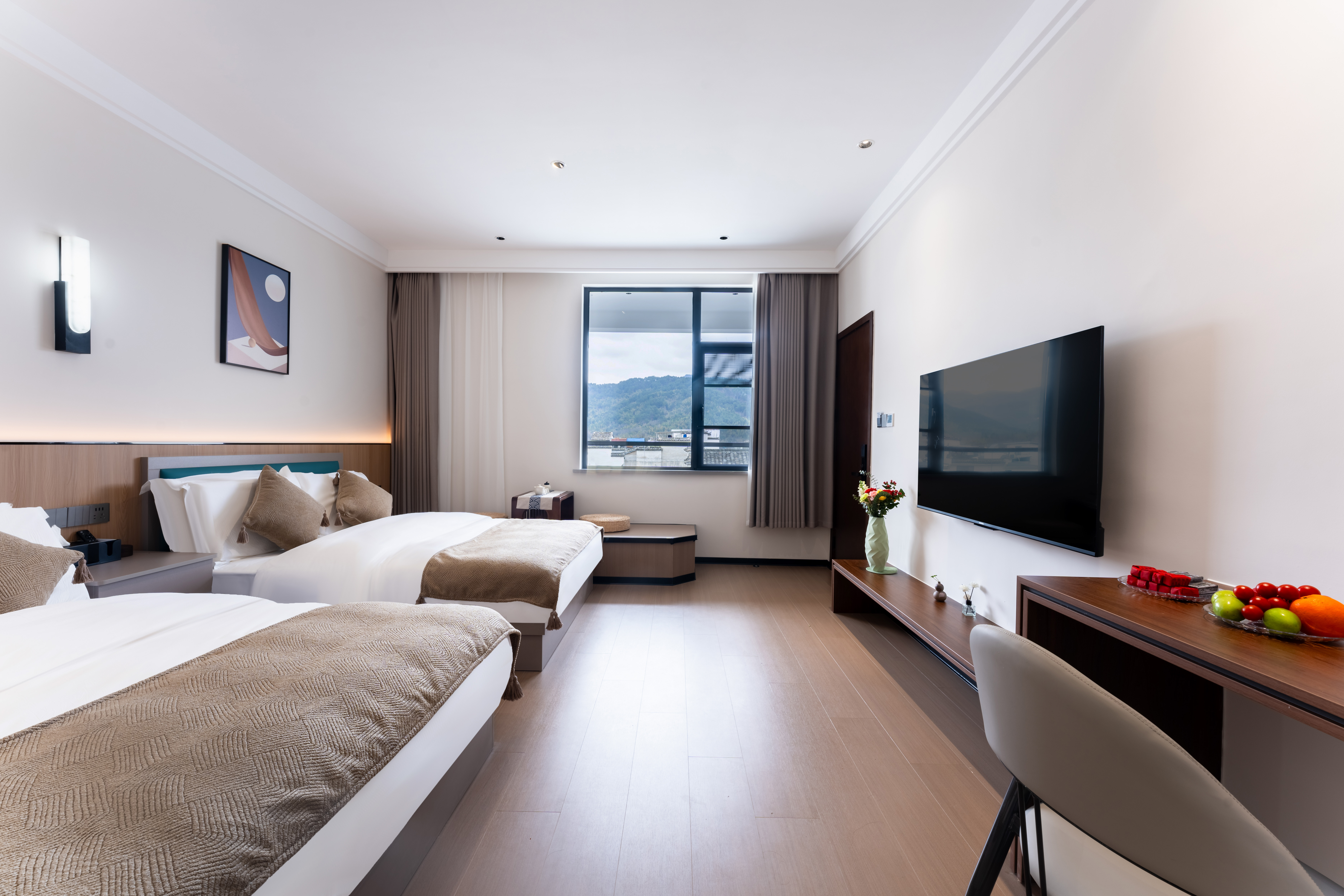 泊·归清新家庭双床房+山景+乳胶床垫枕头+鹅绒被