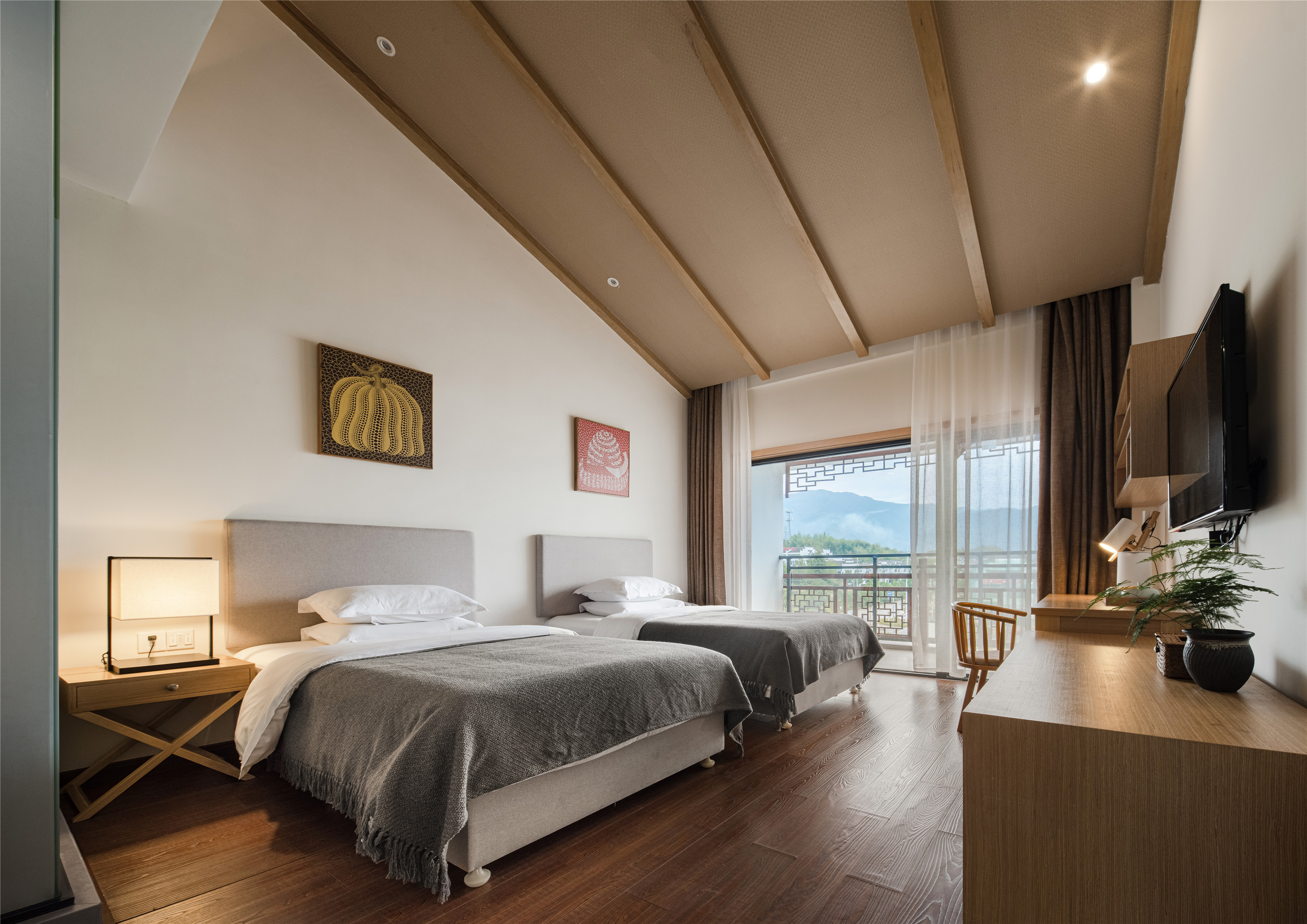 山野双床房+迷你小冰箱+外阳台
