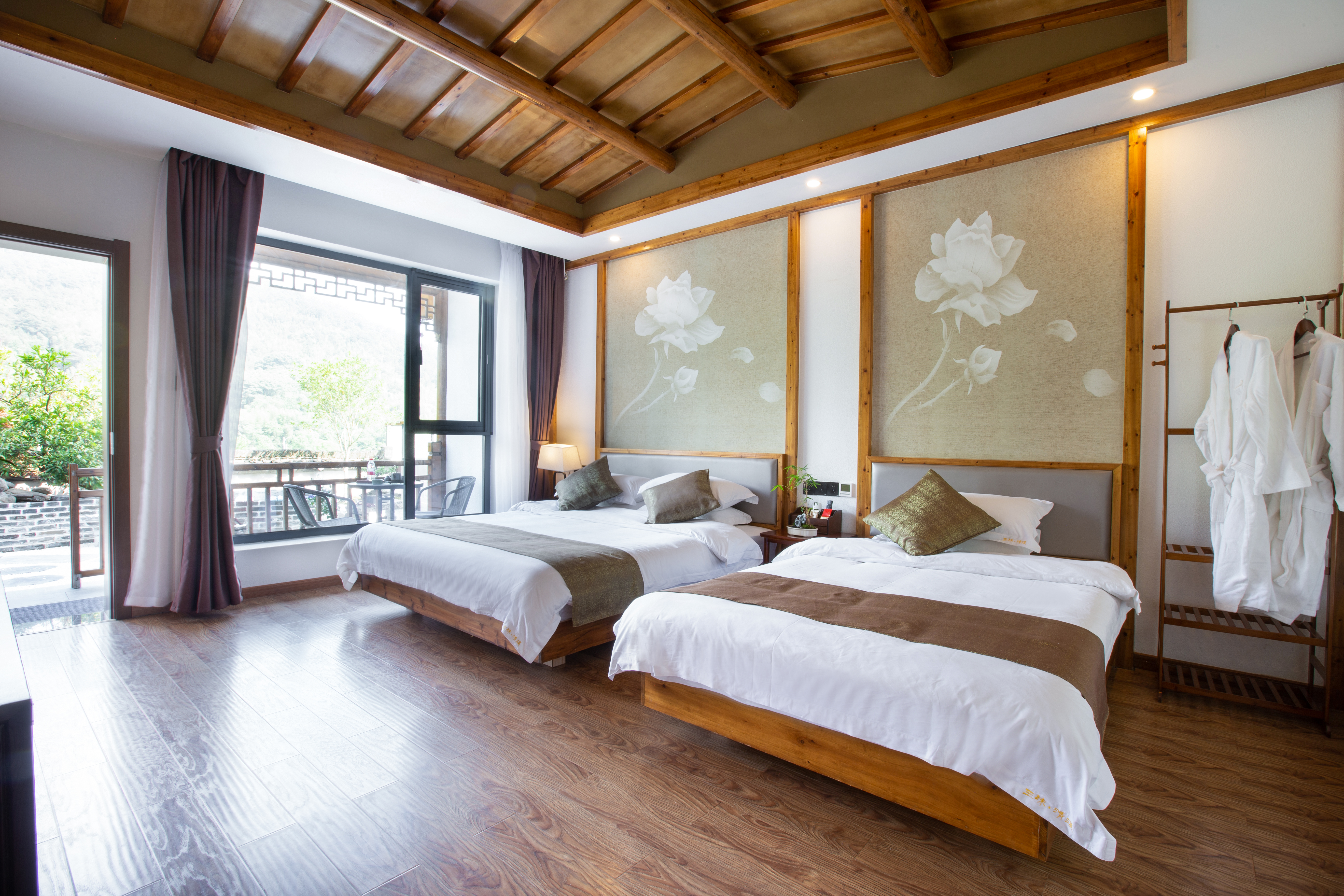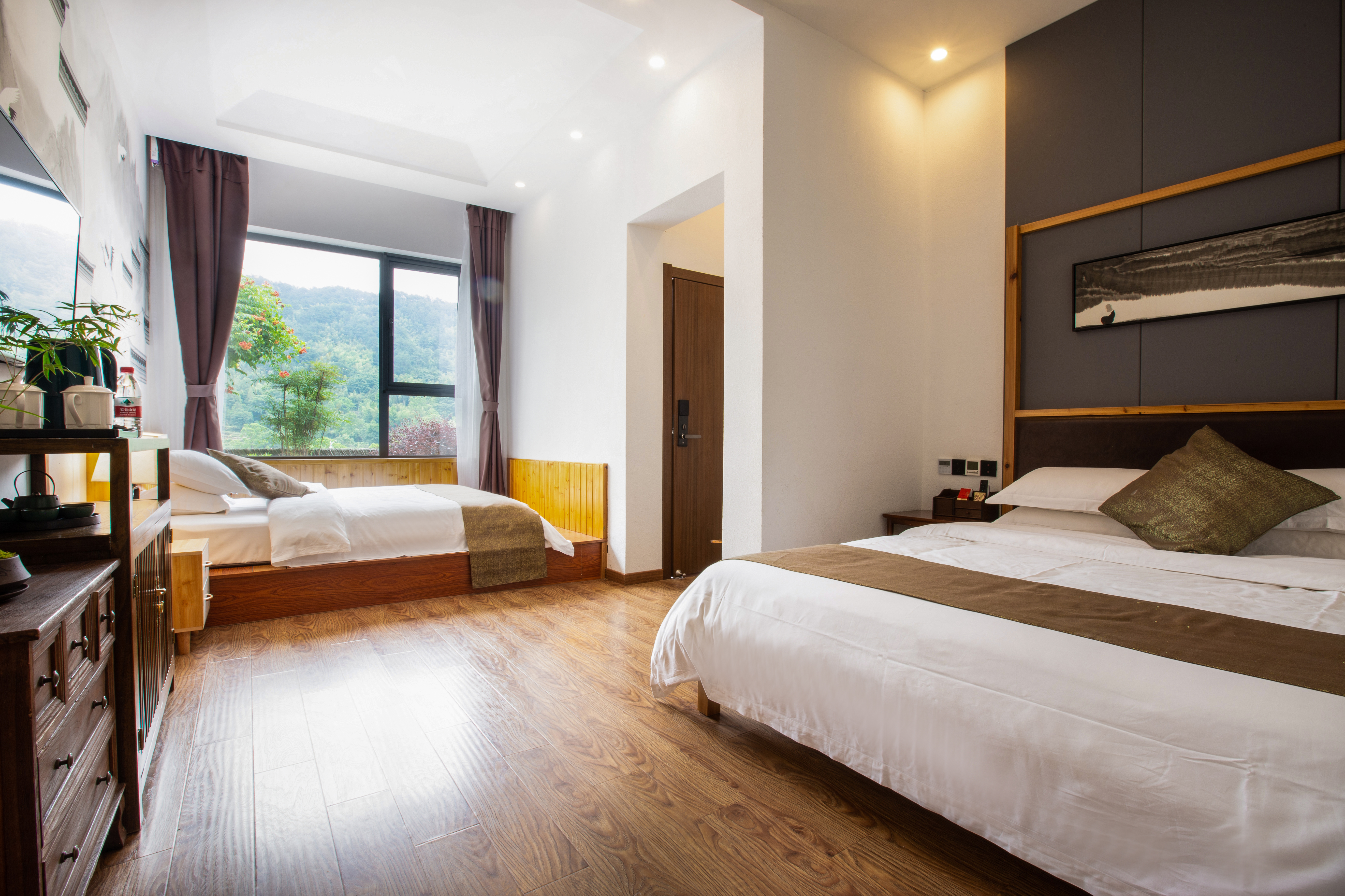 1号院溪畔·双重暖气·可观山景榻榻米温馨家庭双床房