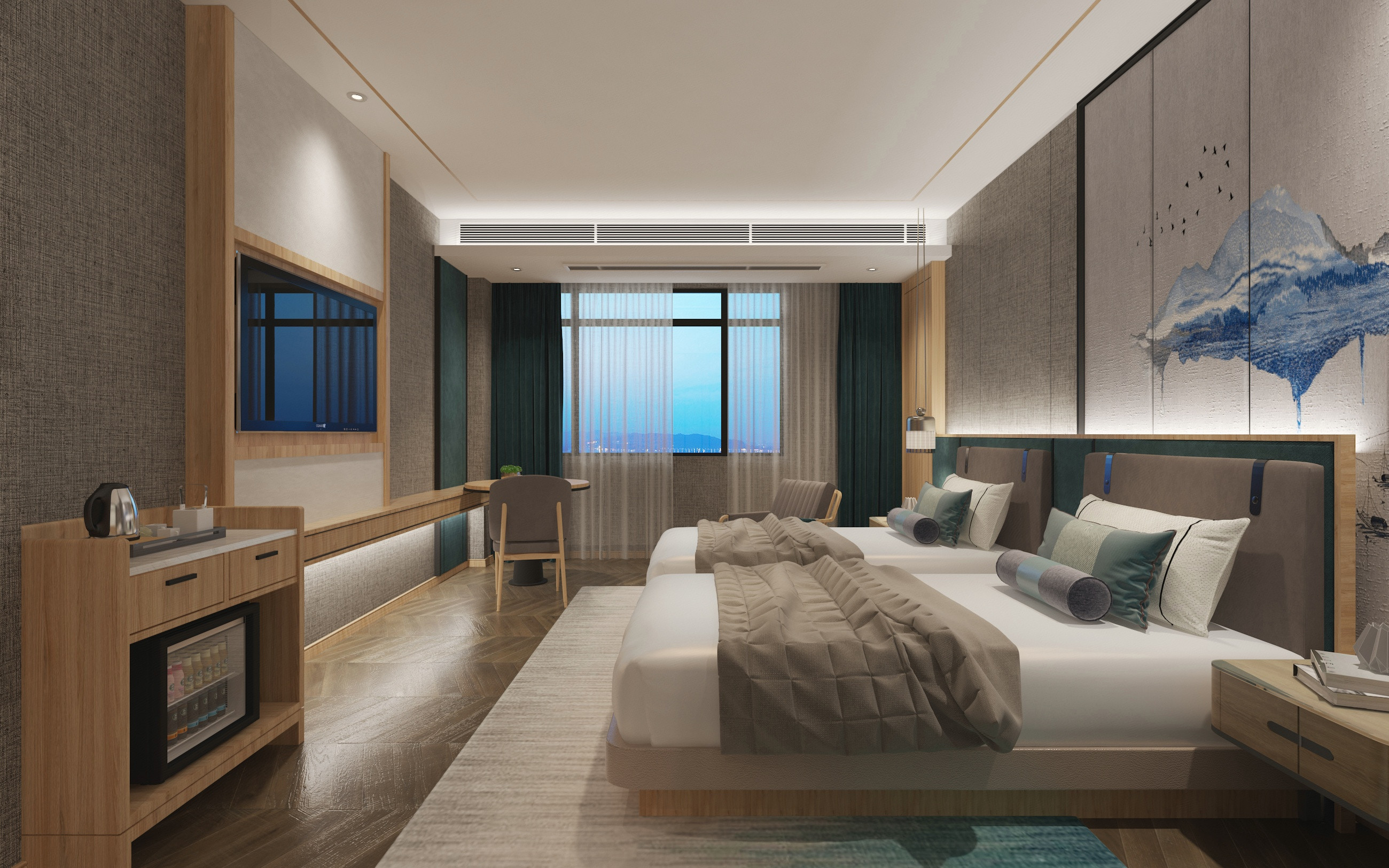 觅遇乳胶助眠双床房(小度智能客控+休闲桌椅+投屏电视)