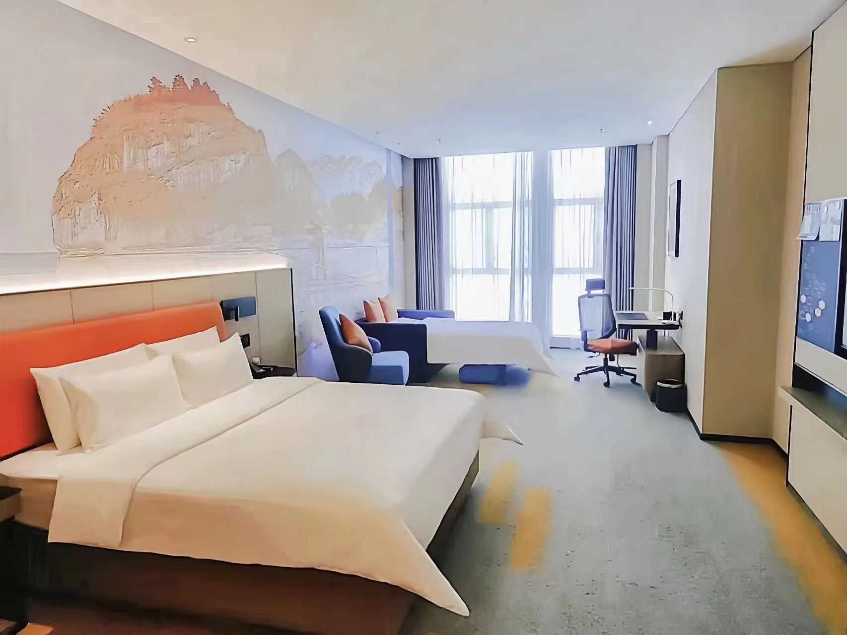 欢友双床房(1.8大床+1.2梳化床+舒达床垫+80°江景)