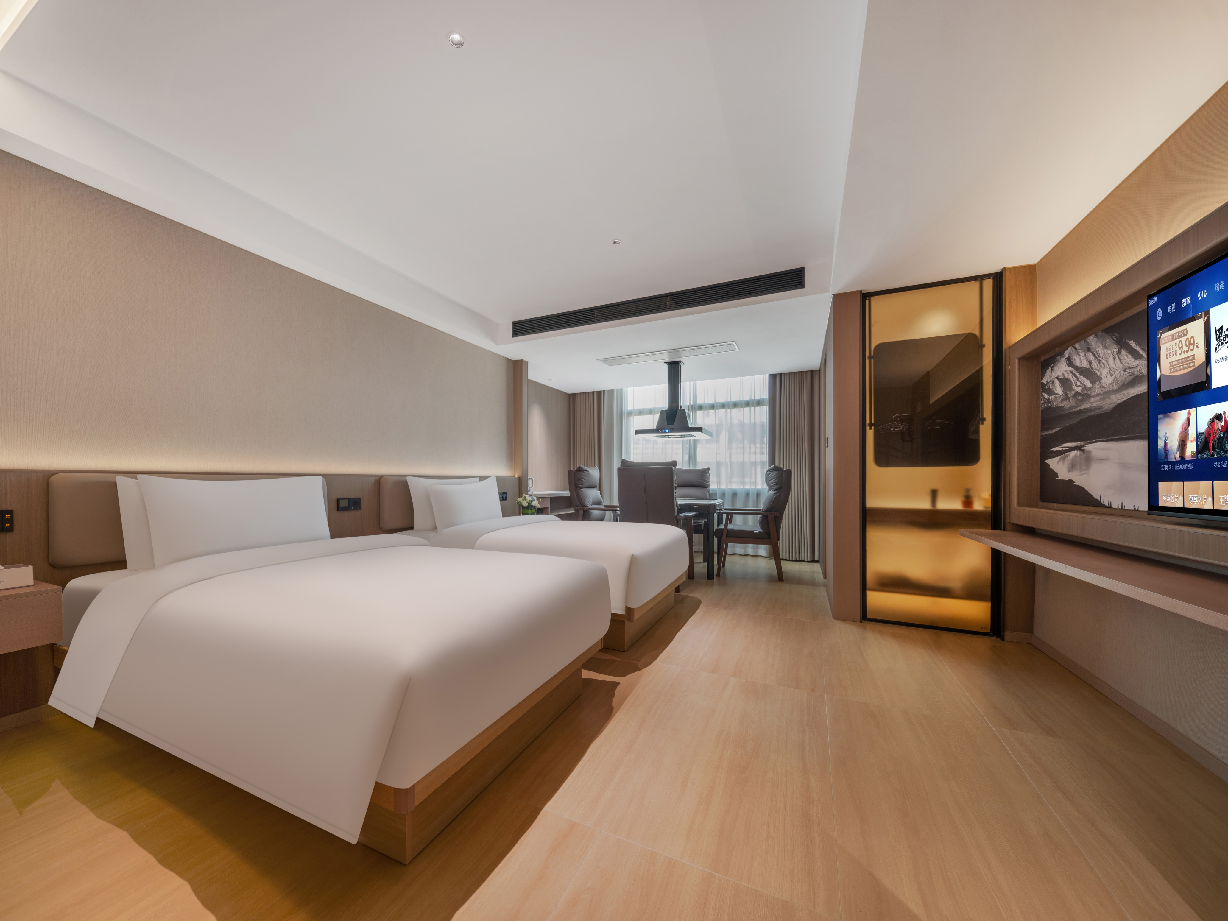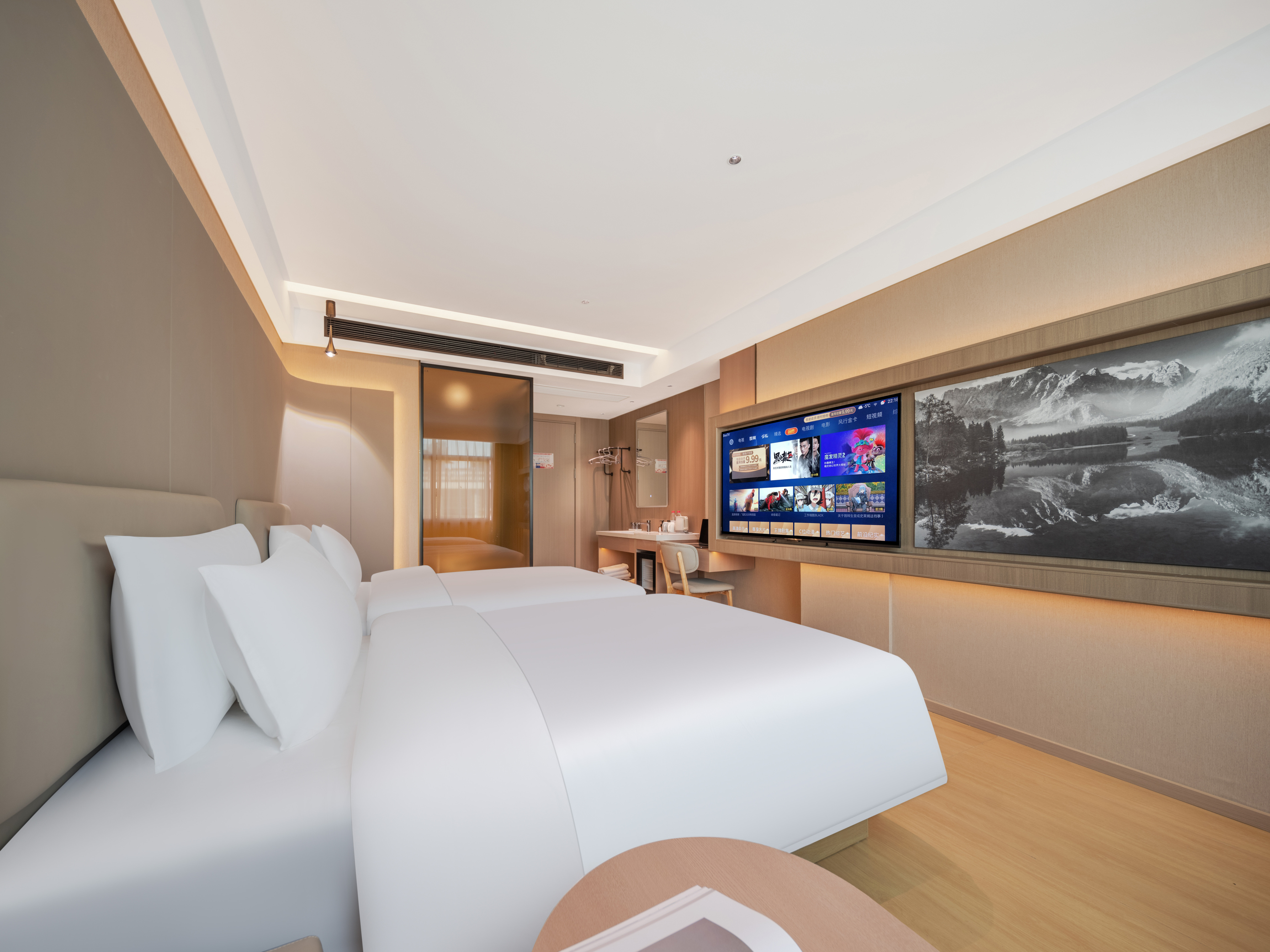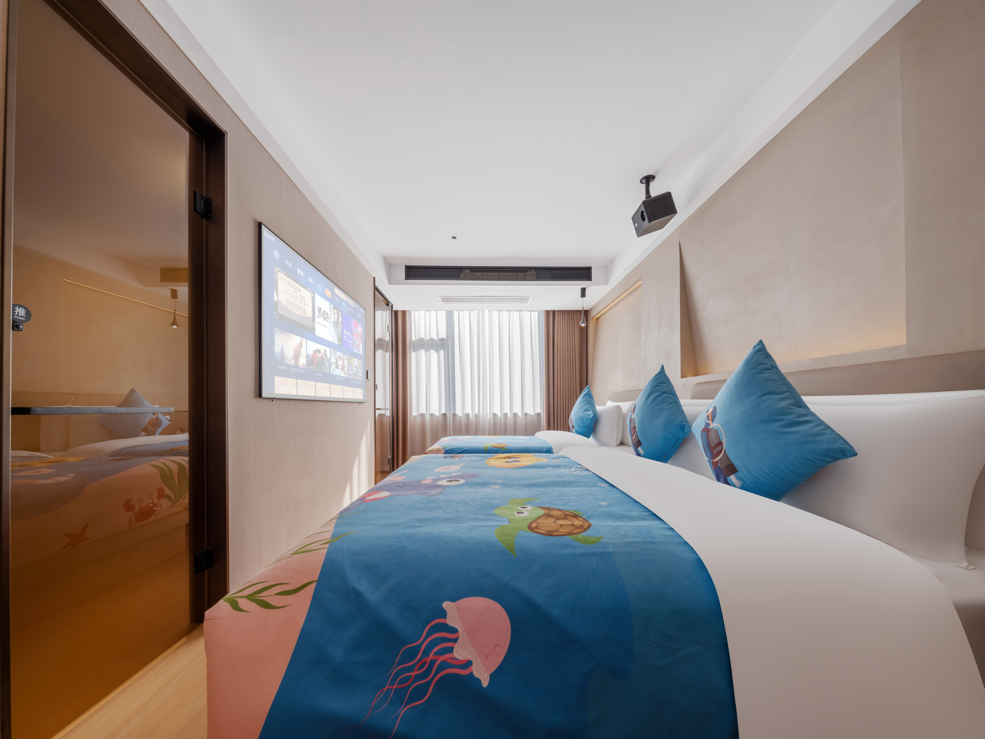 格意丨左右逢源 (双床房) [mini小冰箱+65寸投屏电视]