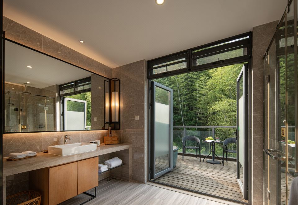 竹影阳台泡池亲子房-阳台温泉泡池+智能马桶+竹林风景