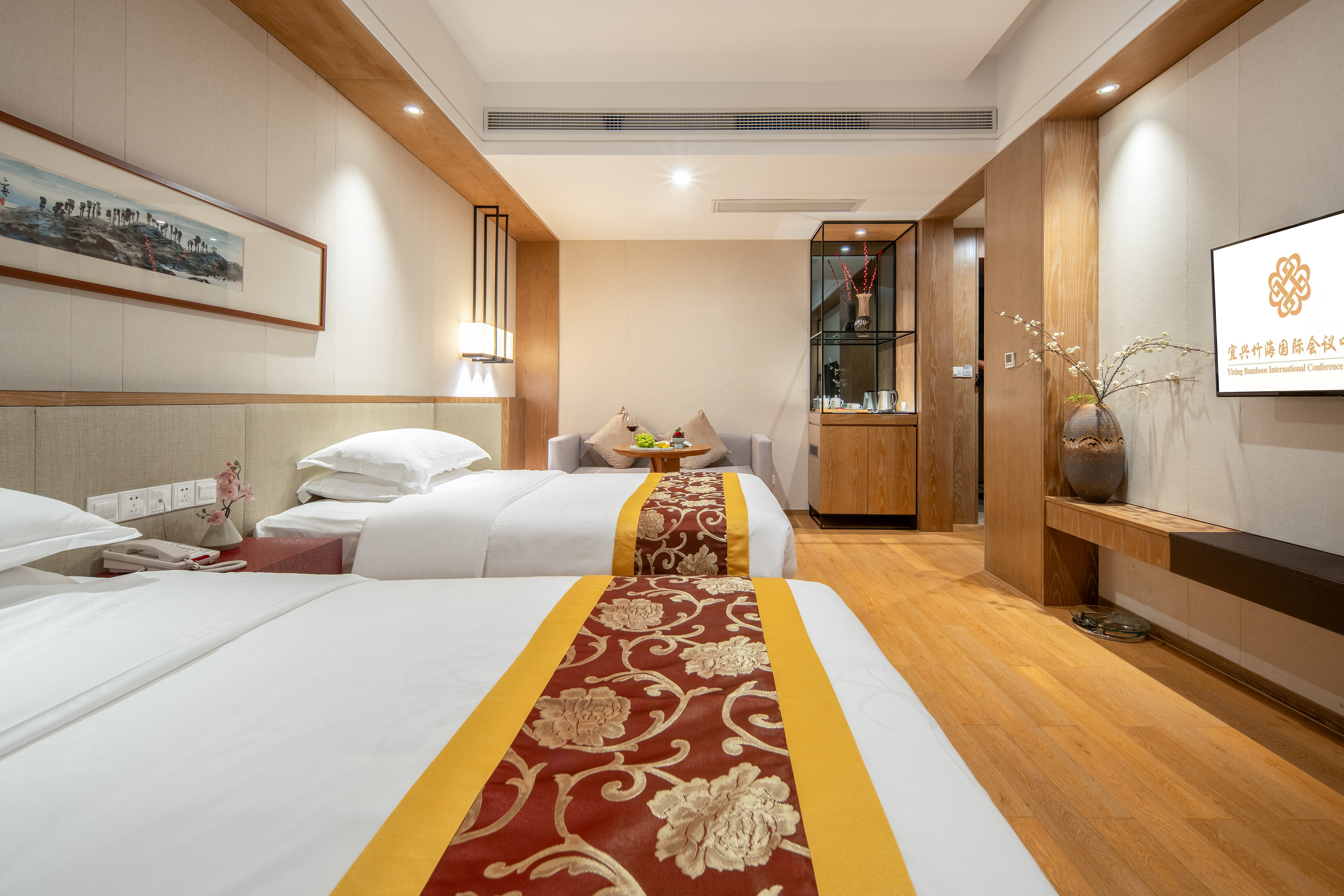 静谧?低压|舒适双床房「竹林氧吧+地热氡温泉入户」
