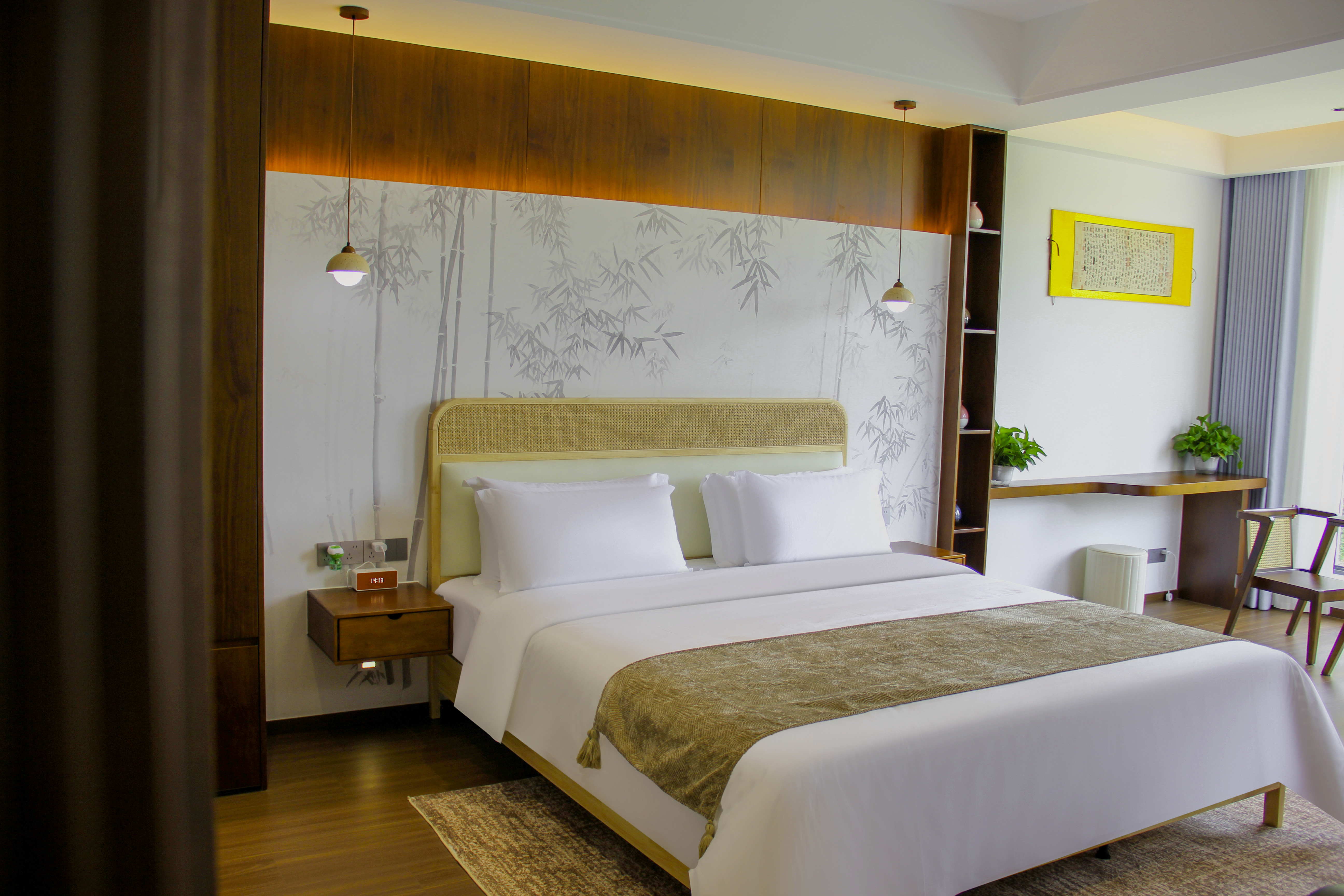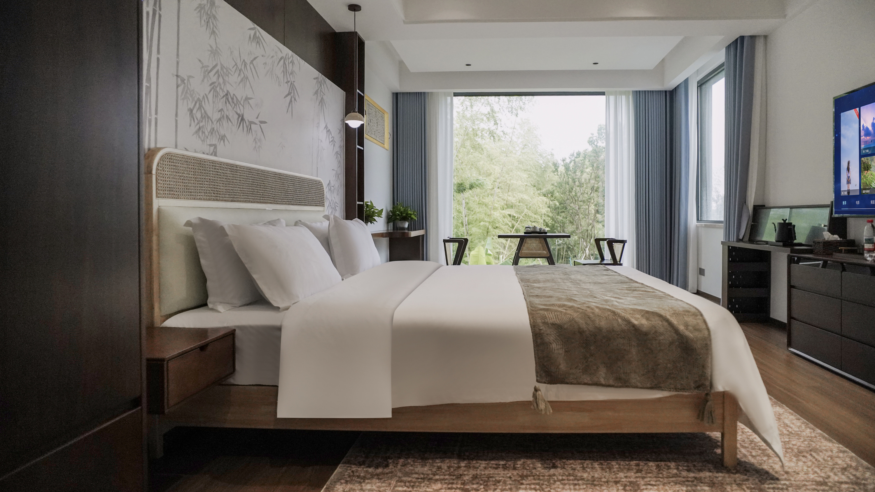 竹影大床房|全屋智能+慕思床垫+榻榻米+落地窗+4k电视