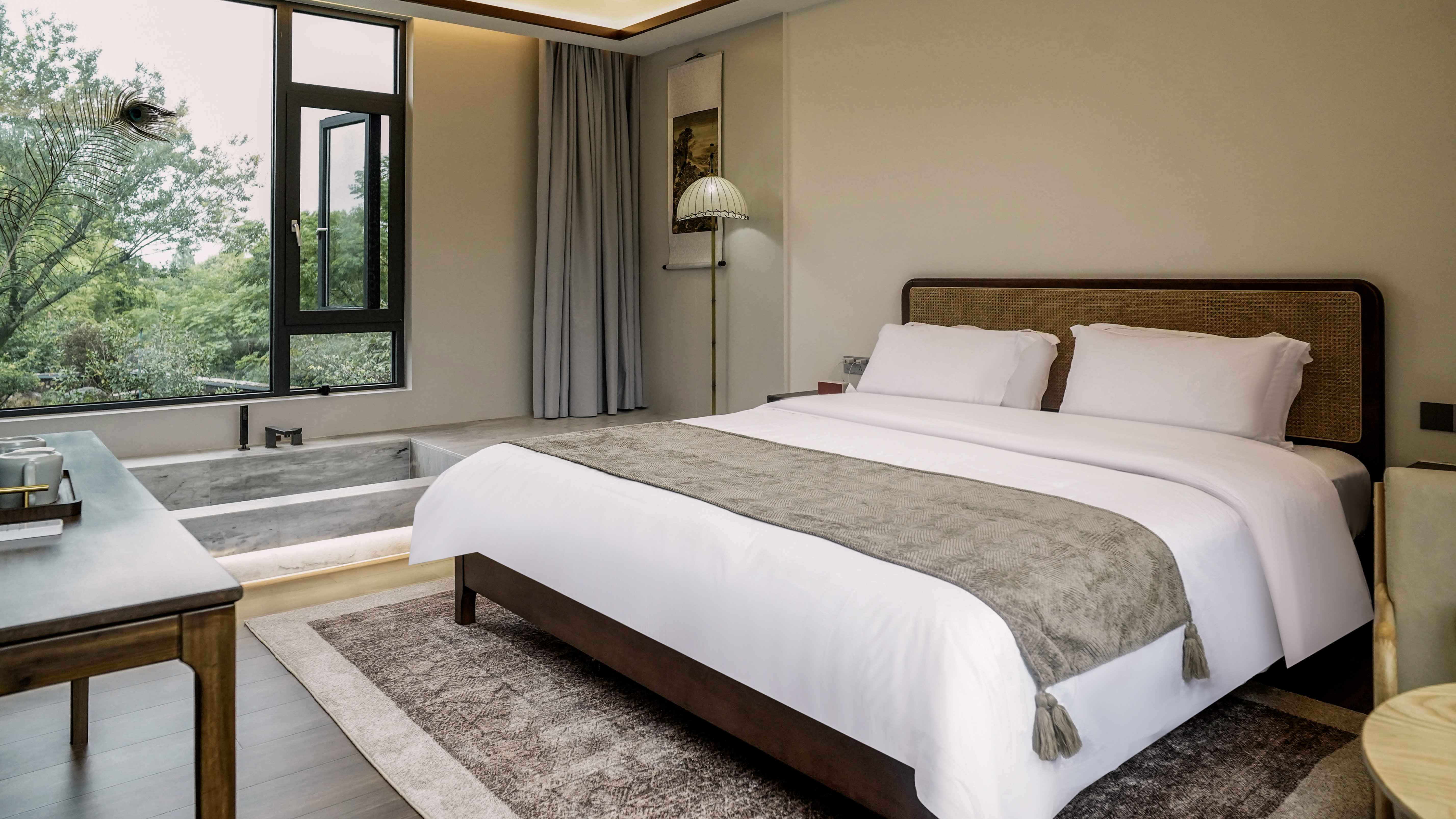 竹影大床房|全屋智能+慕思床垫+榻榻米+落地窗+4k电视