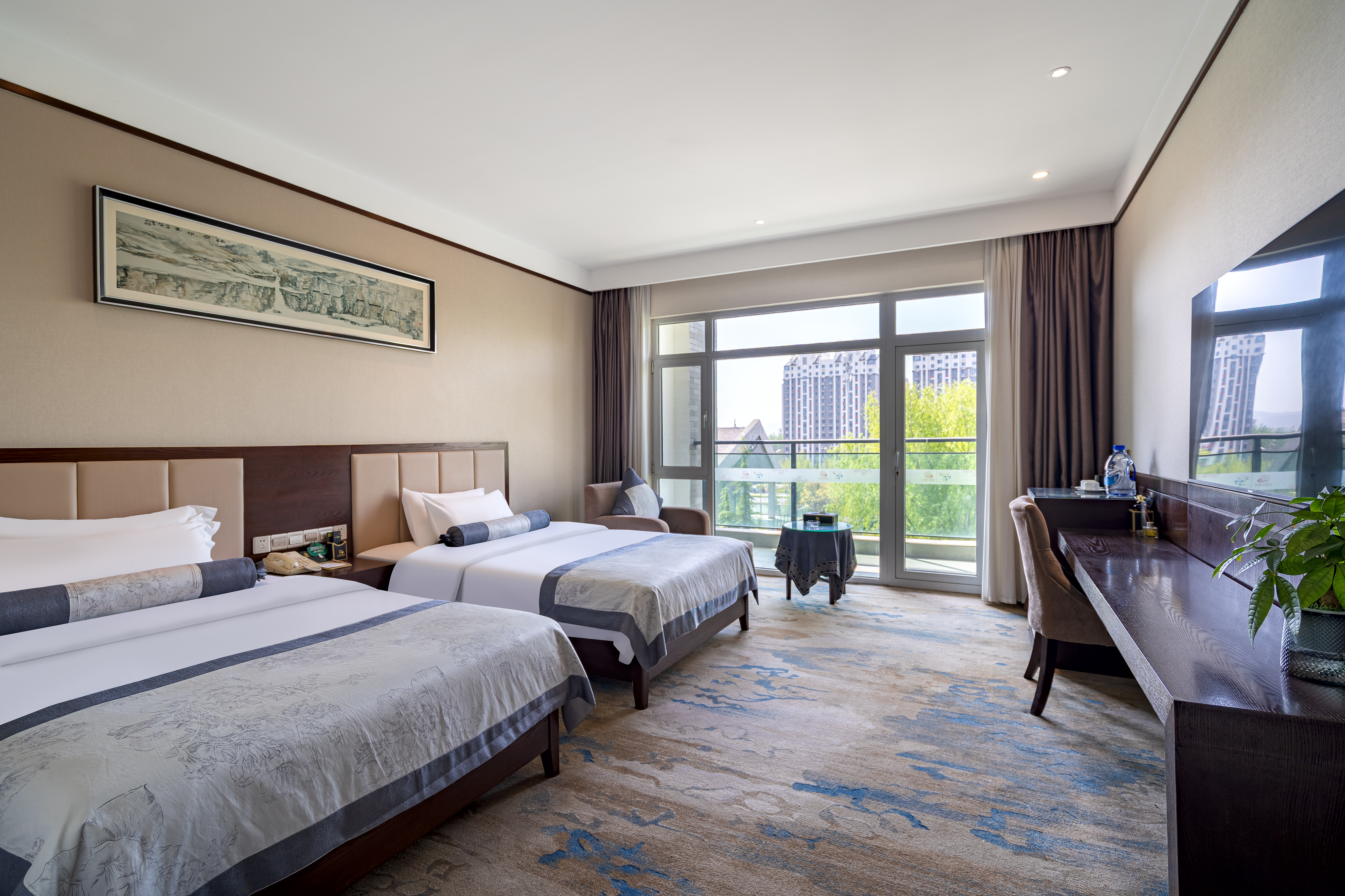 高级园景双床房(智能客控+超大阳台+落地窗)