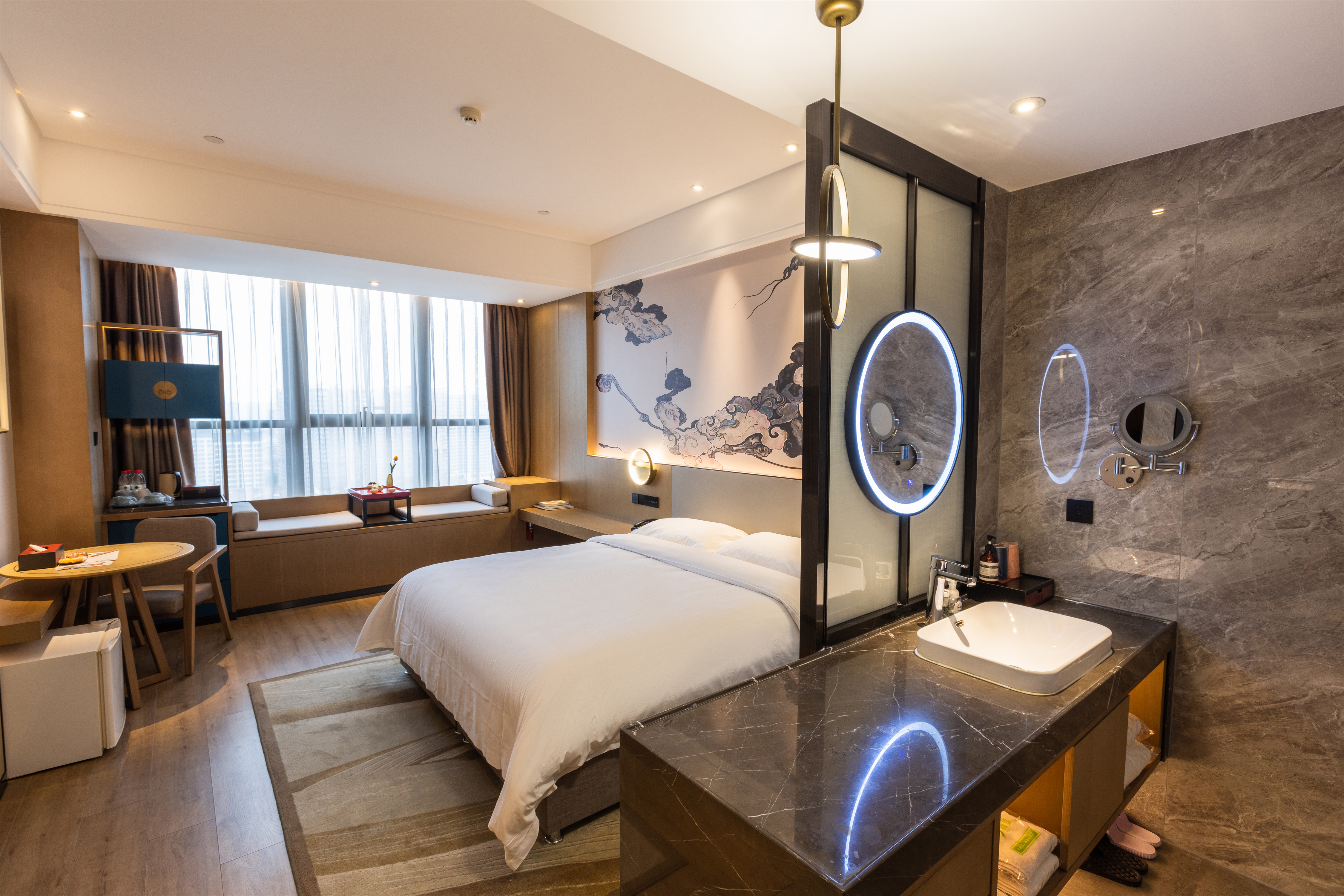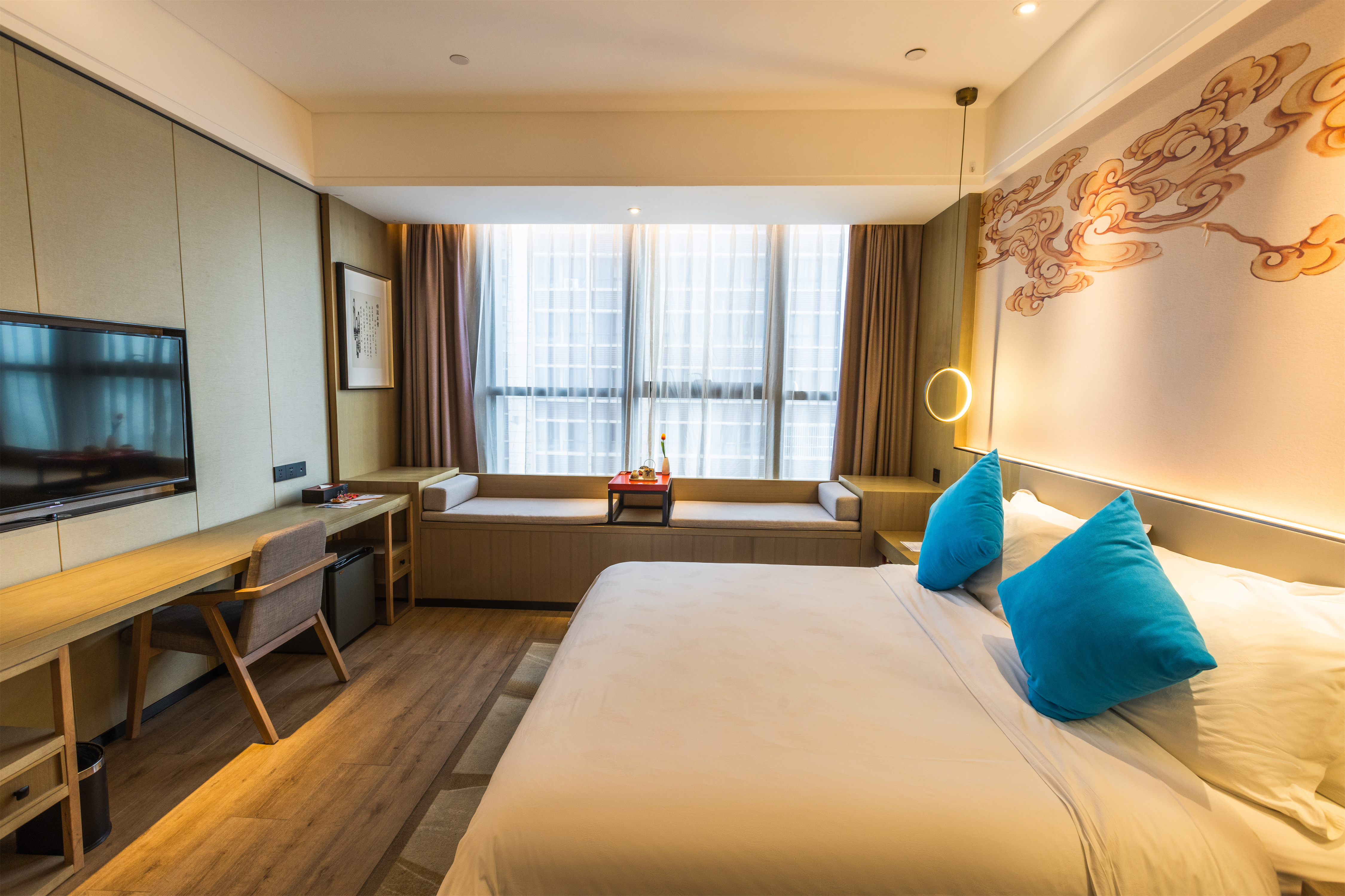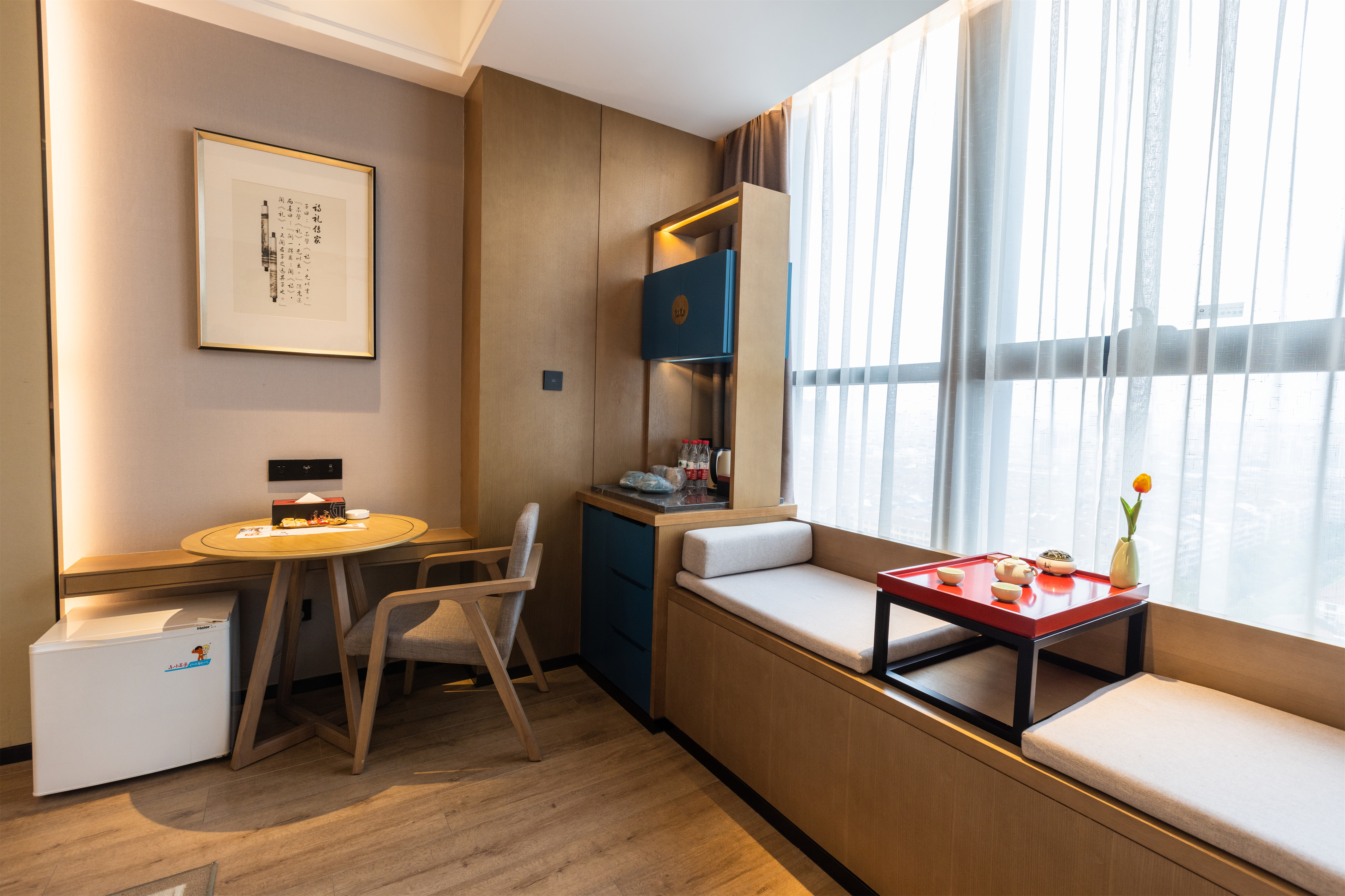 雅致大床房(戈兰泰思零压床垫+小冰箱+飘窗茶台)