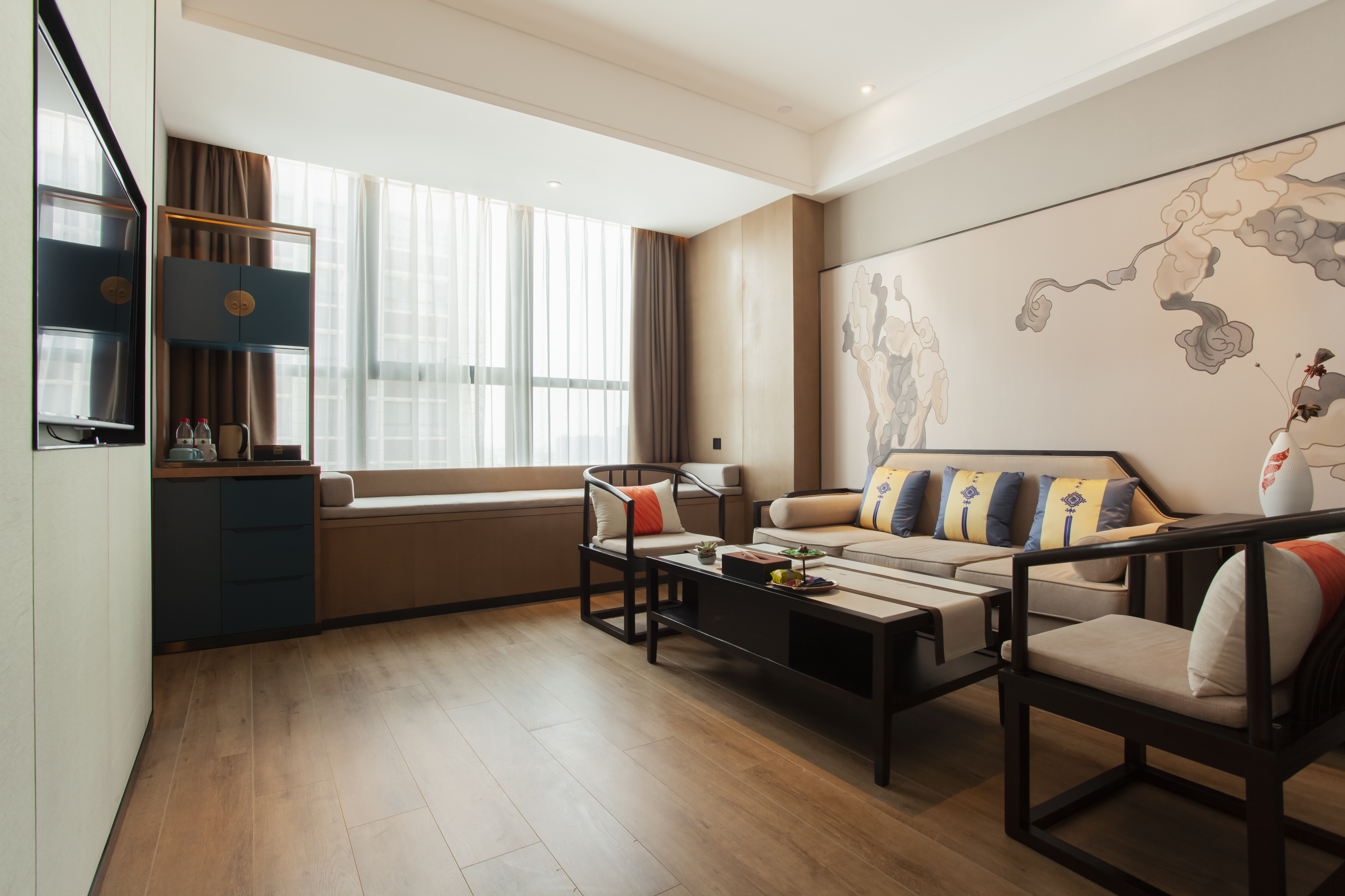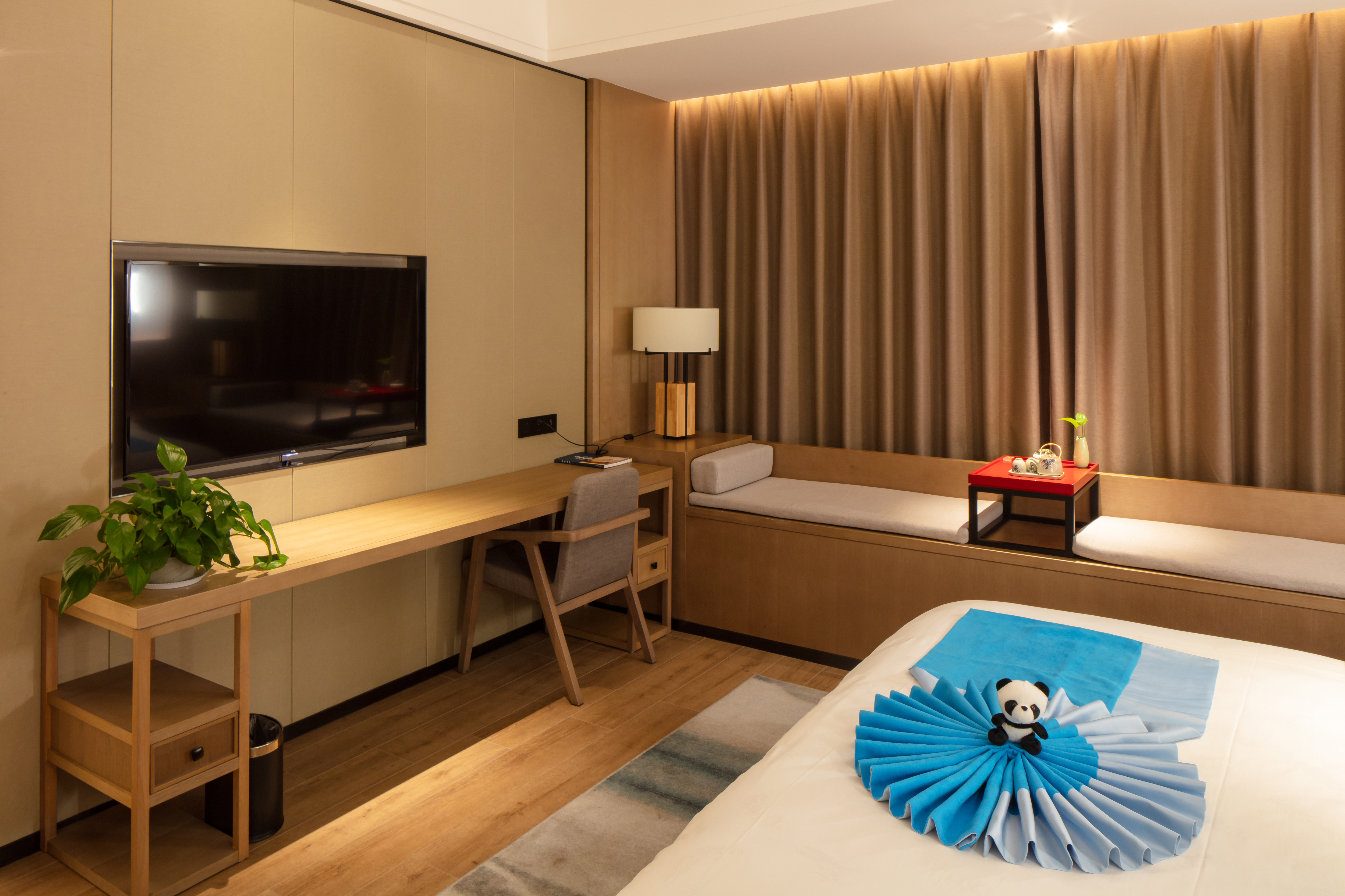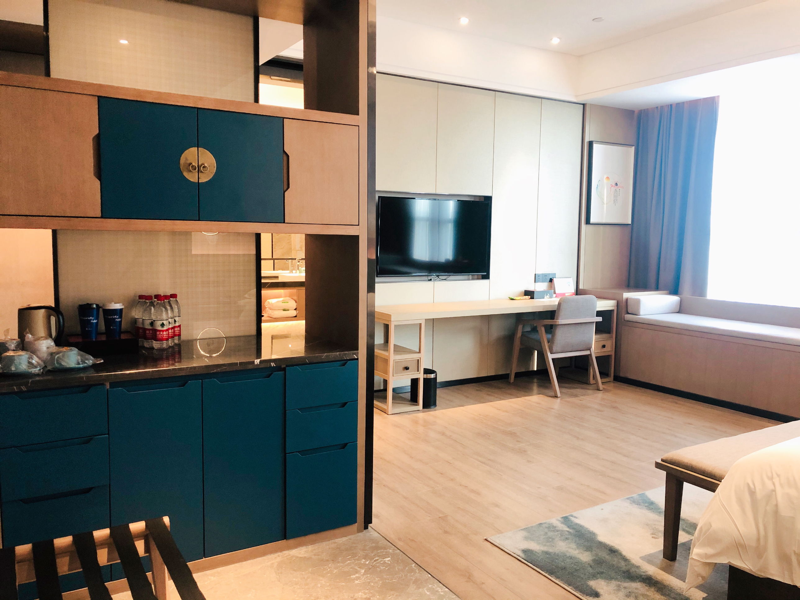 雅致大床房(戈兰泰思零压床垫+小冰箱+飘窗茶台)
