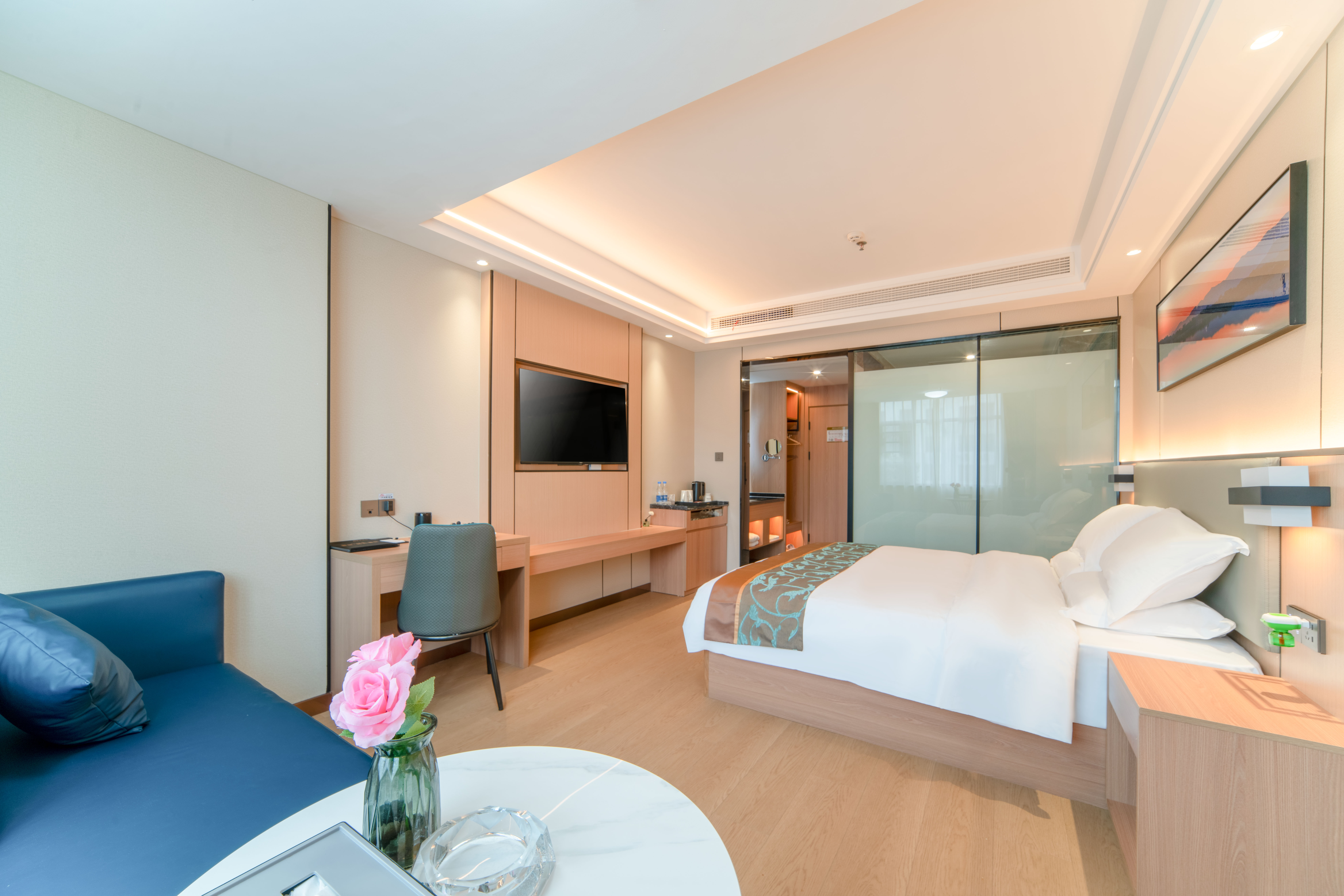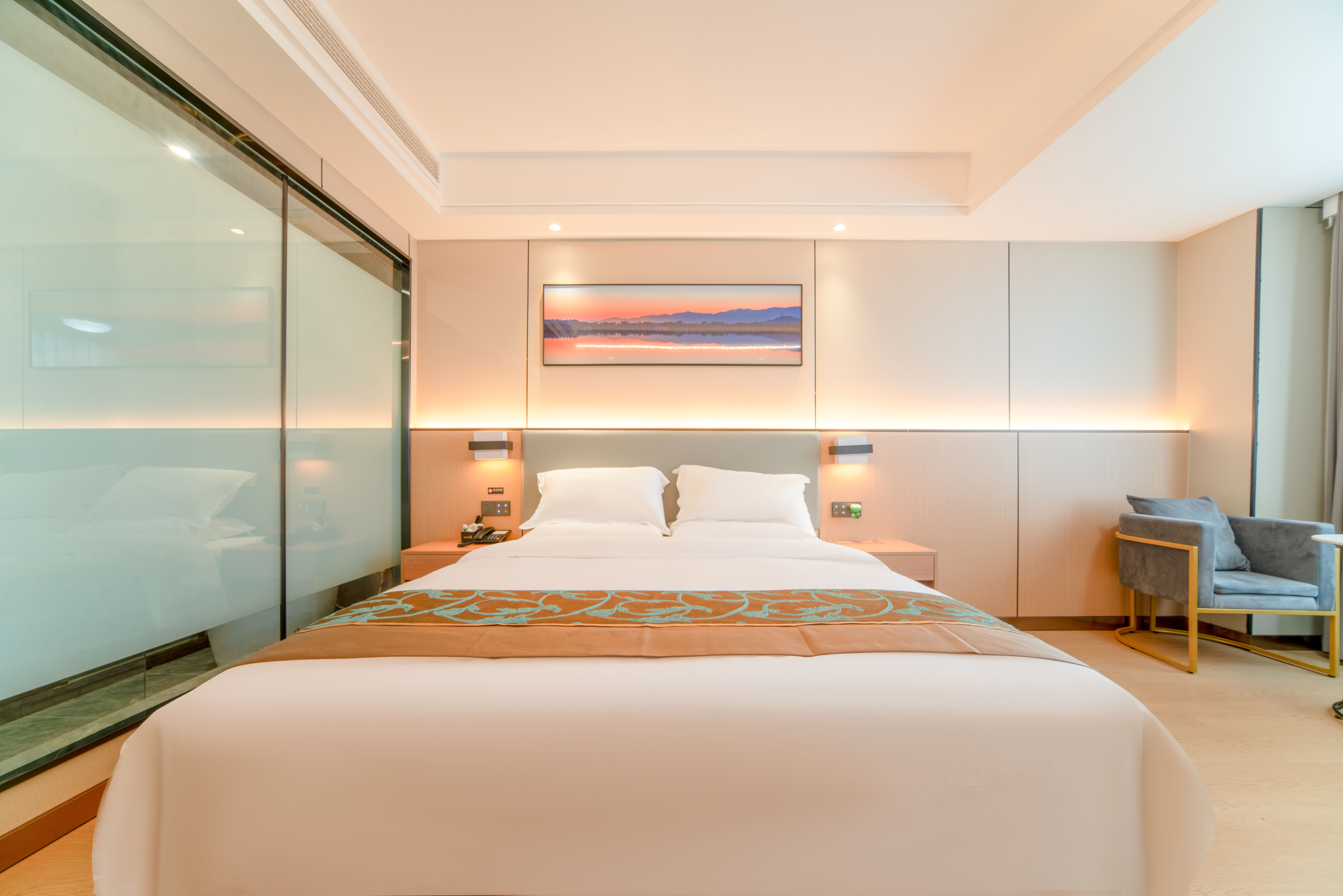 商旅·雅致大床房~智能客控+智能马桶+零压床垫+乳胶睡枕+舒适躺椅+阳光充足 >