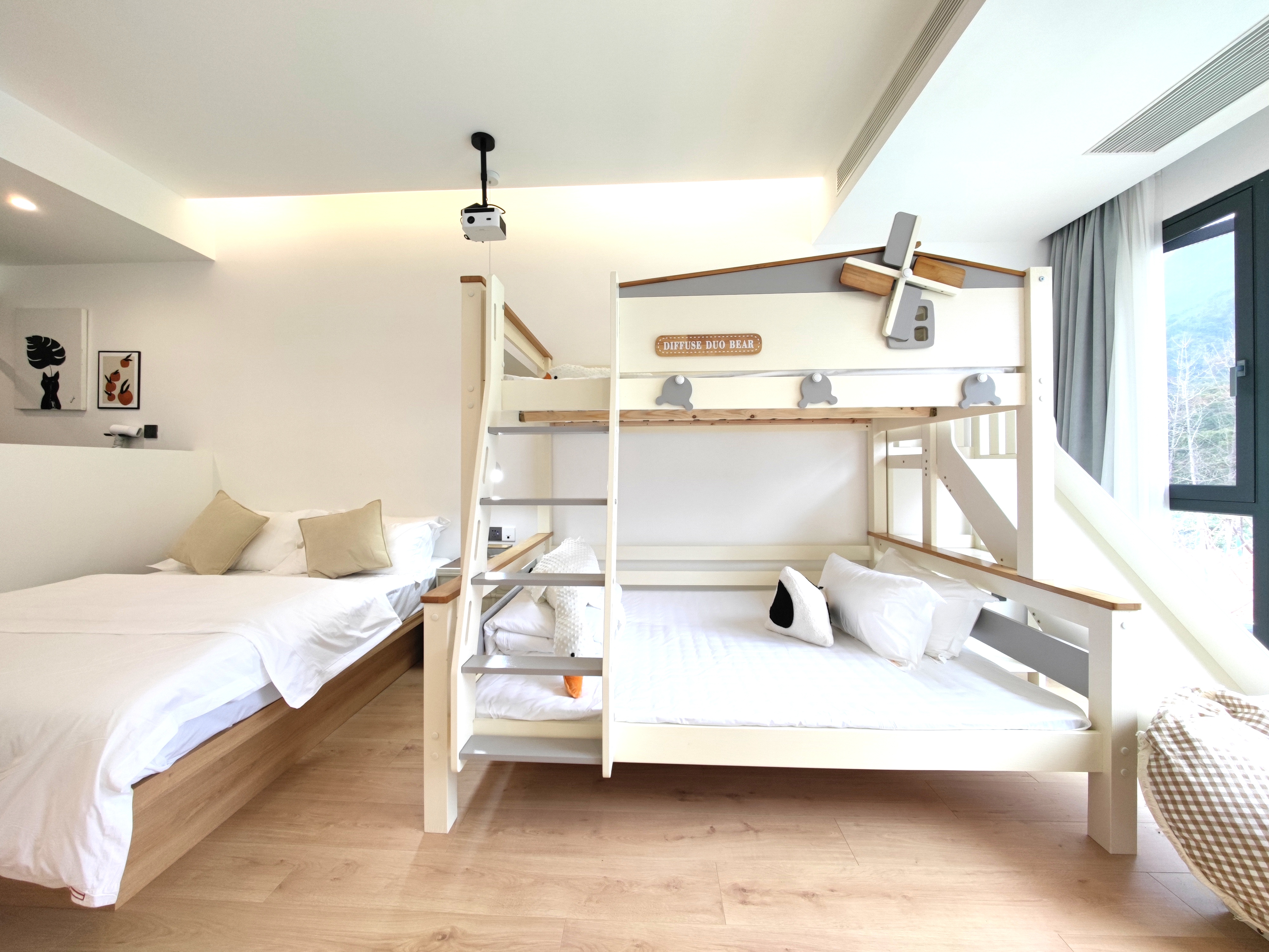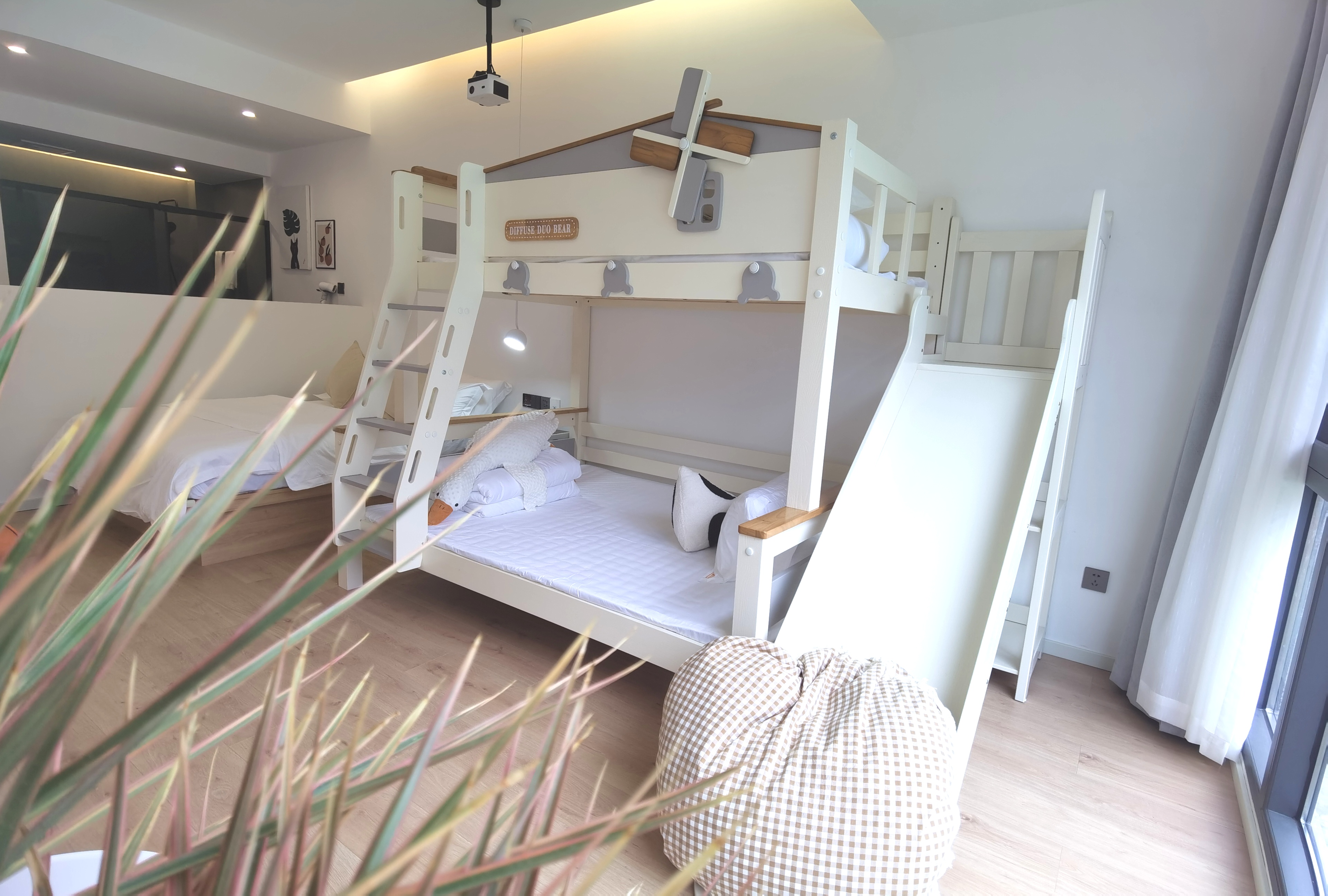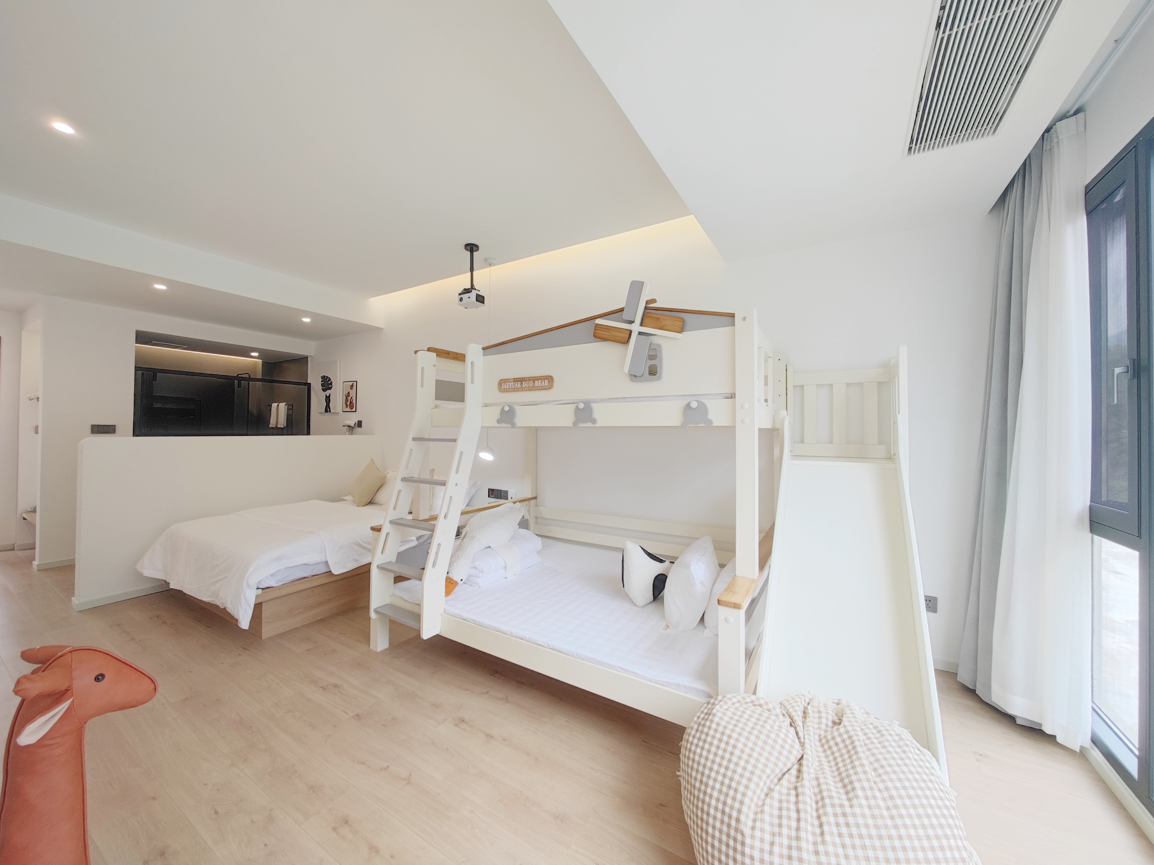 拾春丨温馨三床家庭房{上下滑梯床+超清投影+语音智能客控}