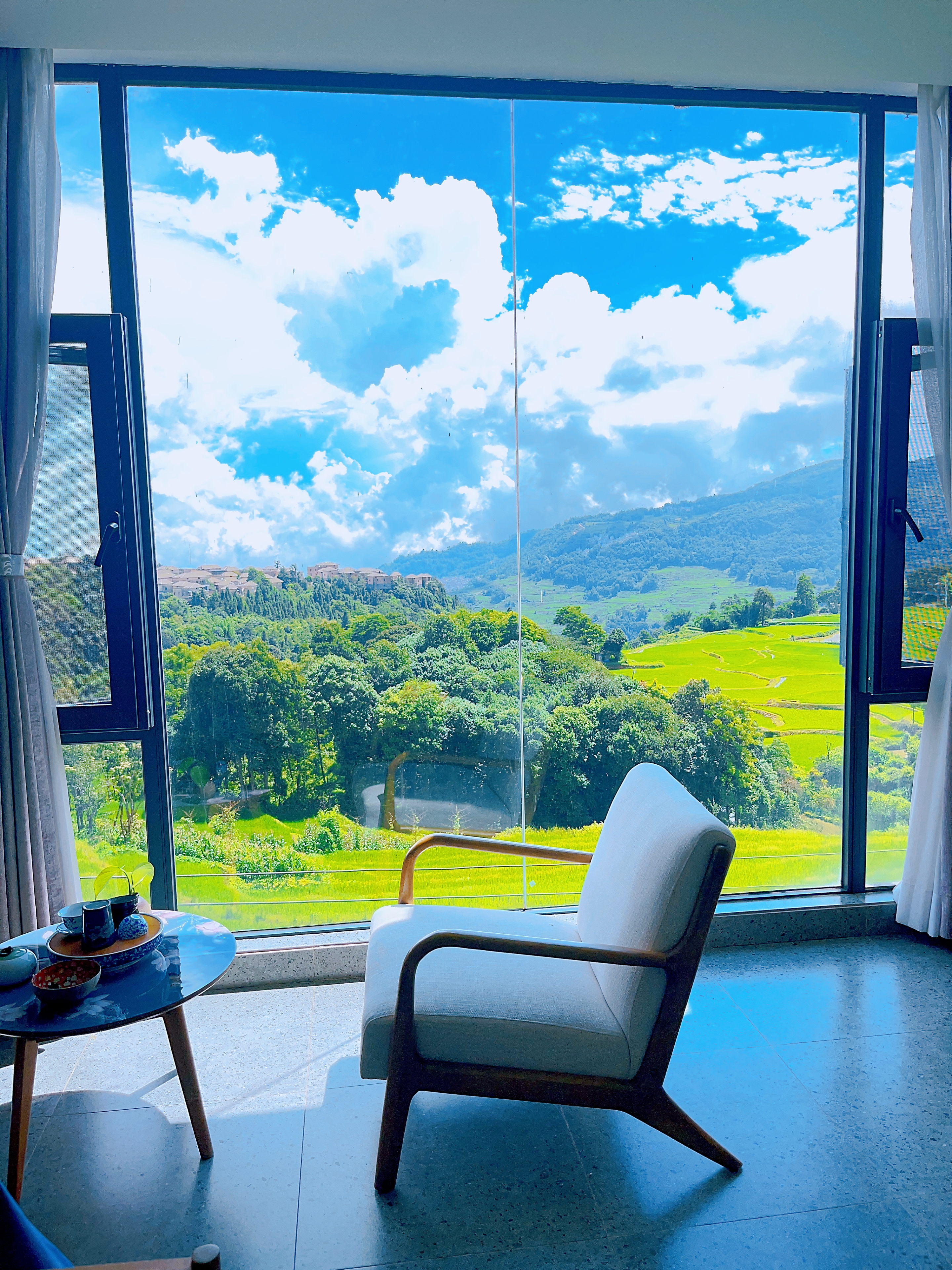 半尘揽山·梯田景观·双床房