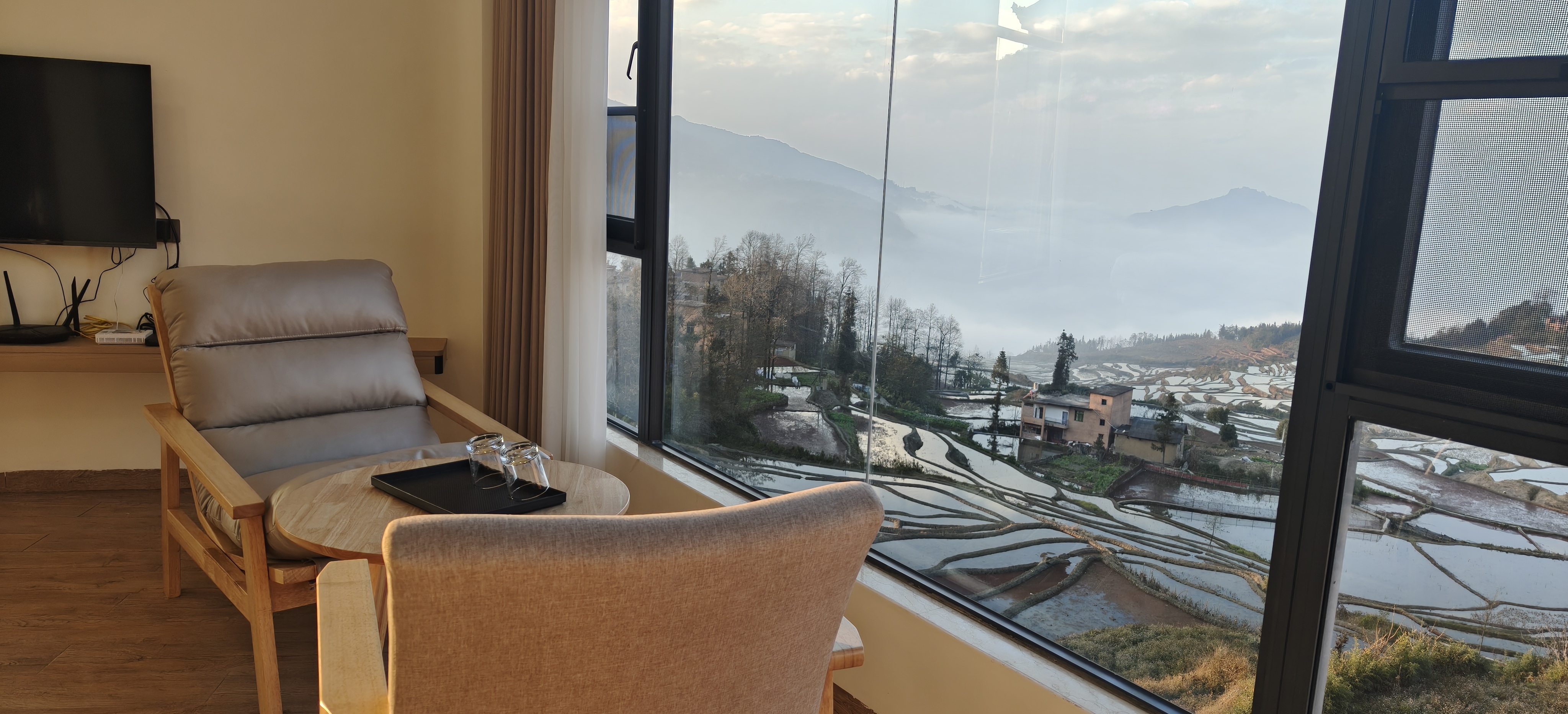 悦己.270度日落稻田景观家庭房-蓝色梯田全景(2号楼)