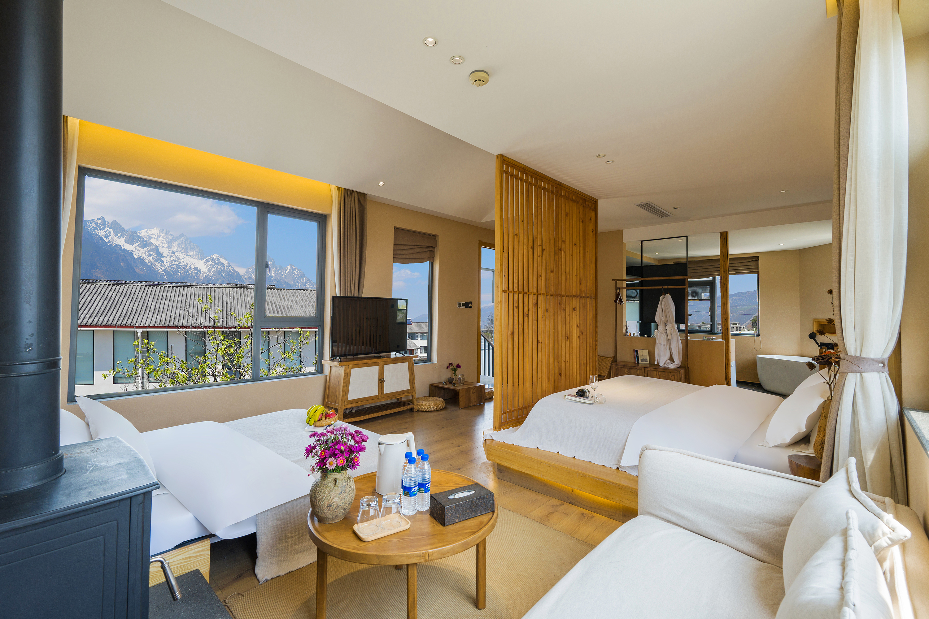 Skr5晨熙丨躺床上能看雪山观景套房「地暖+马歇尔音响」