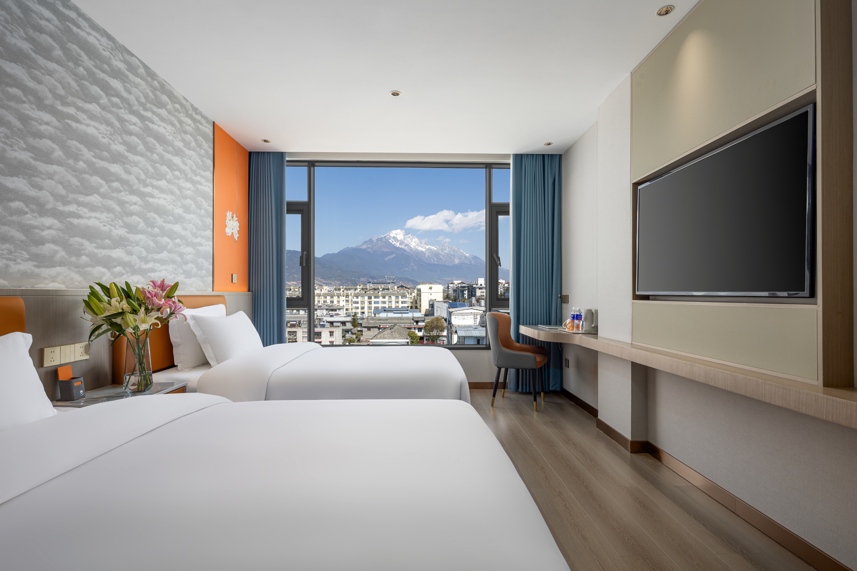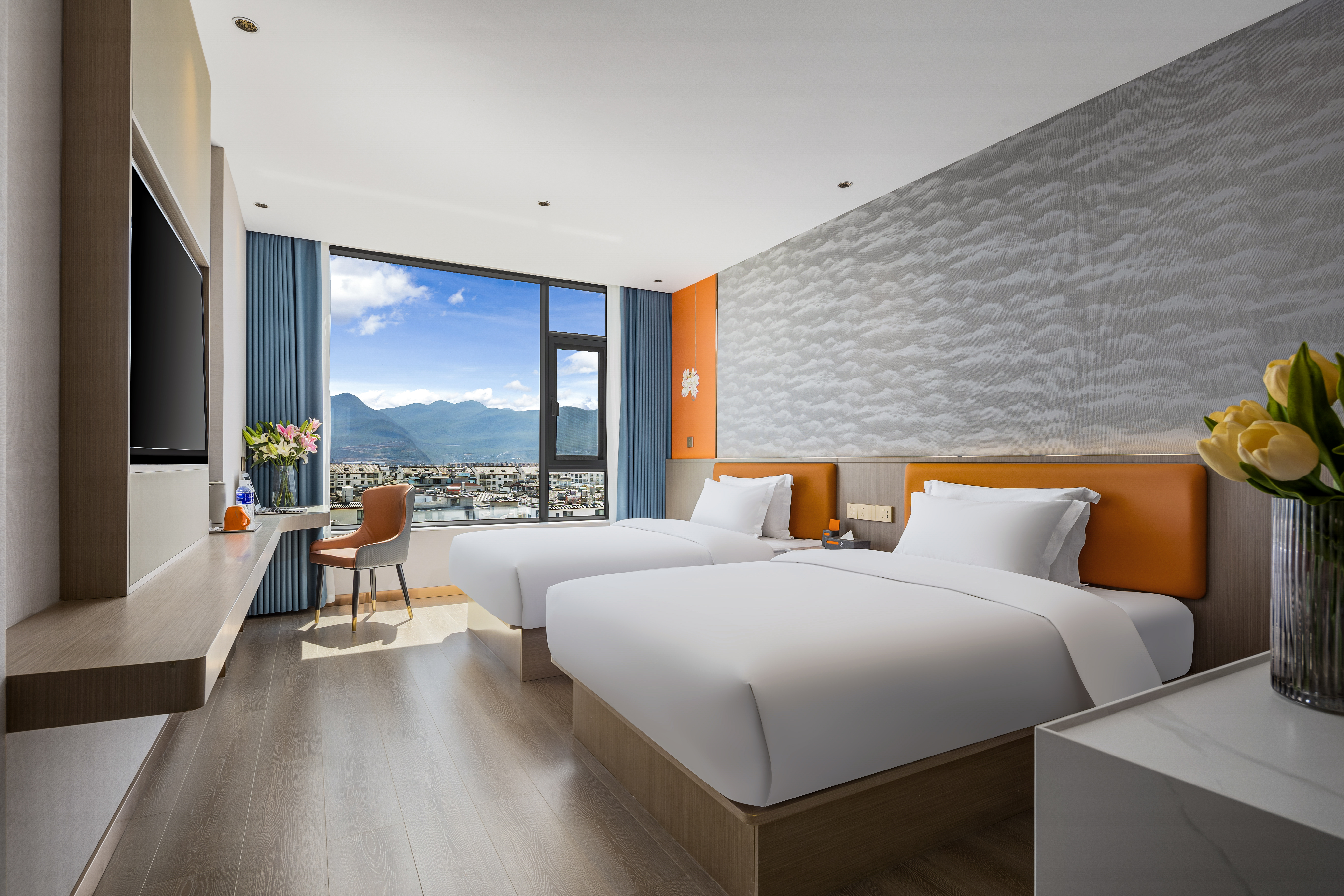 Twin Bed Room With Sunny City View