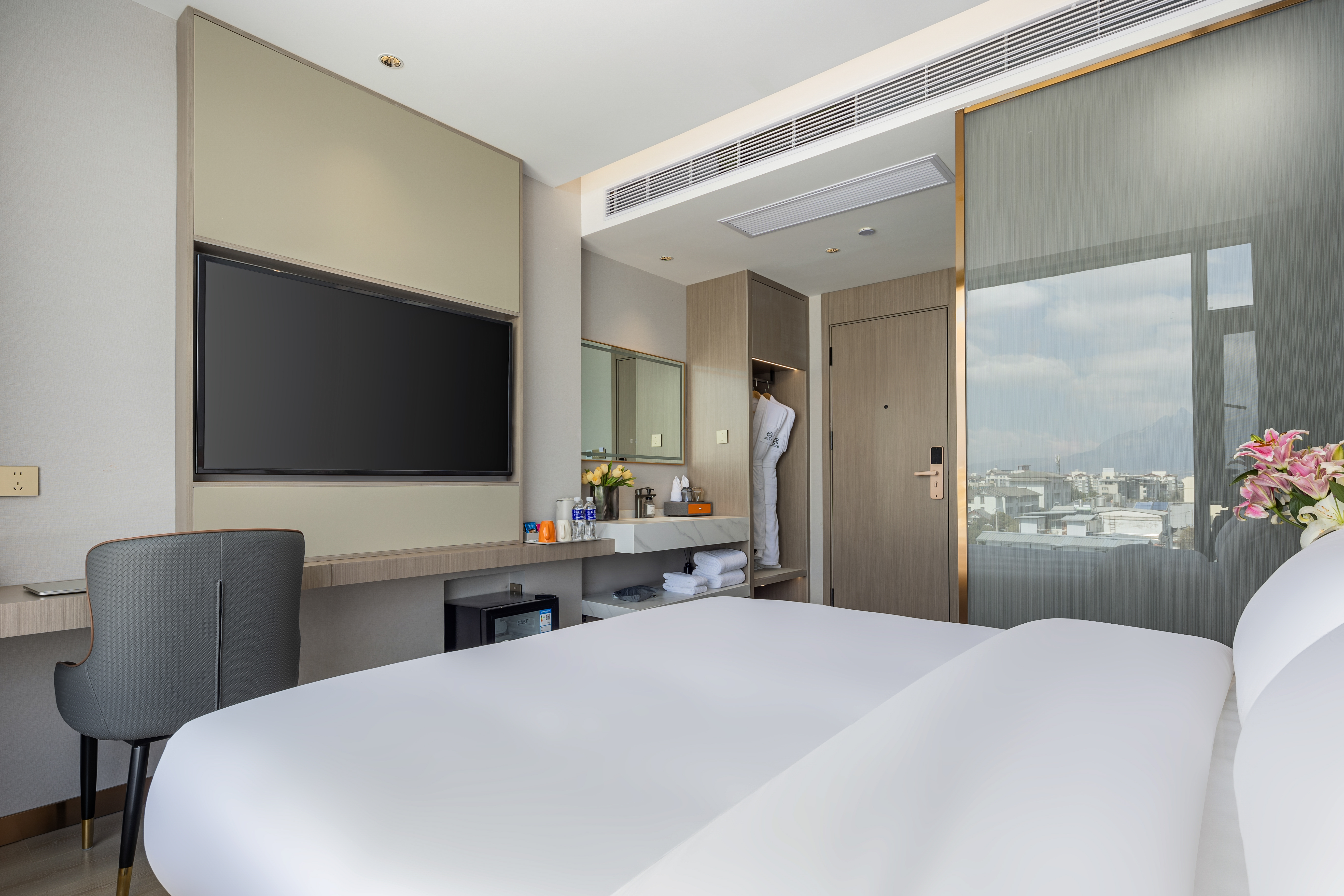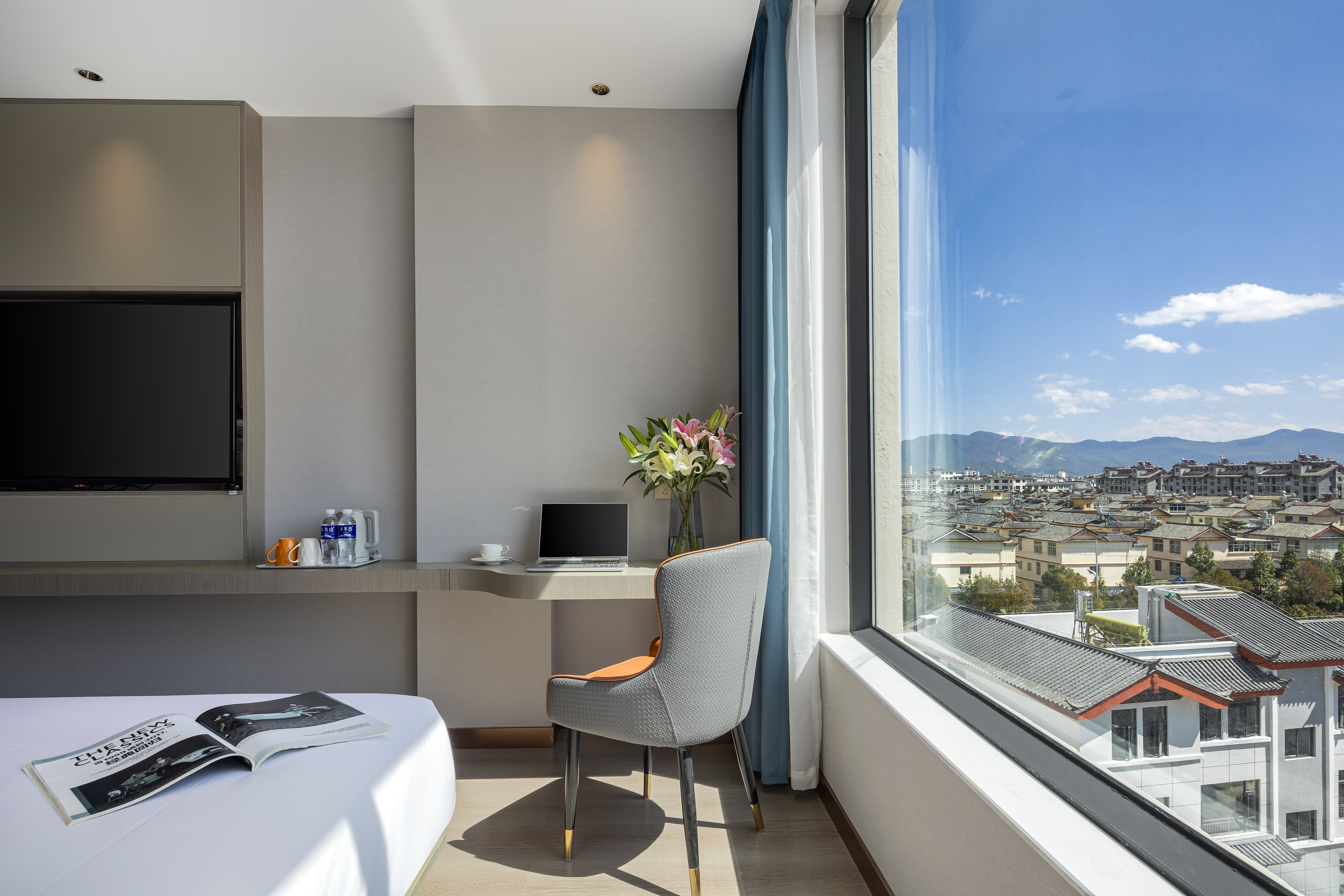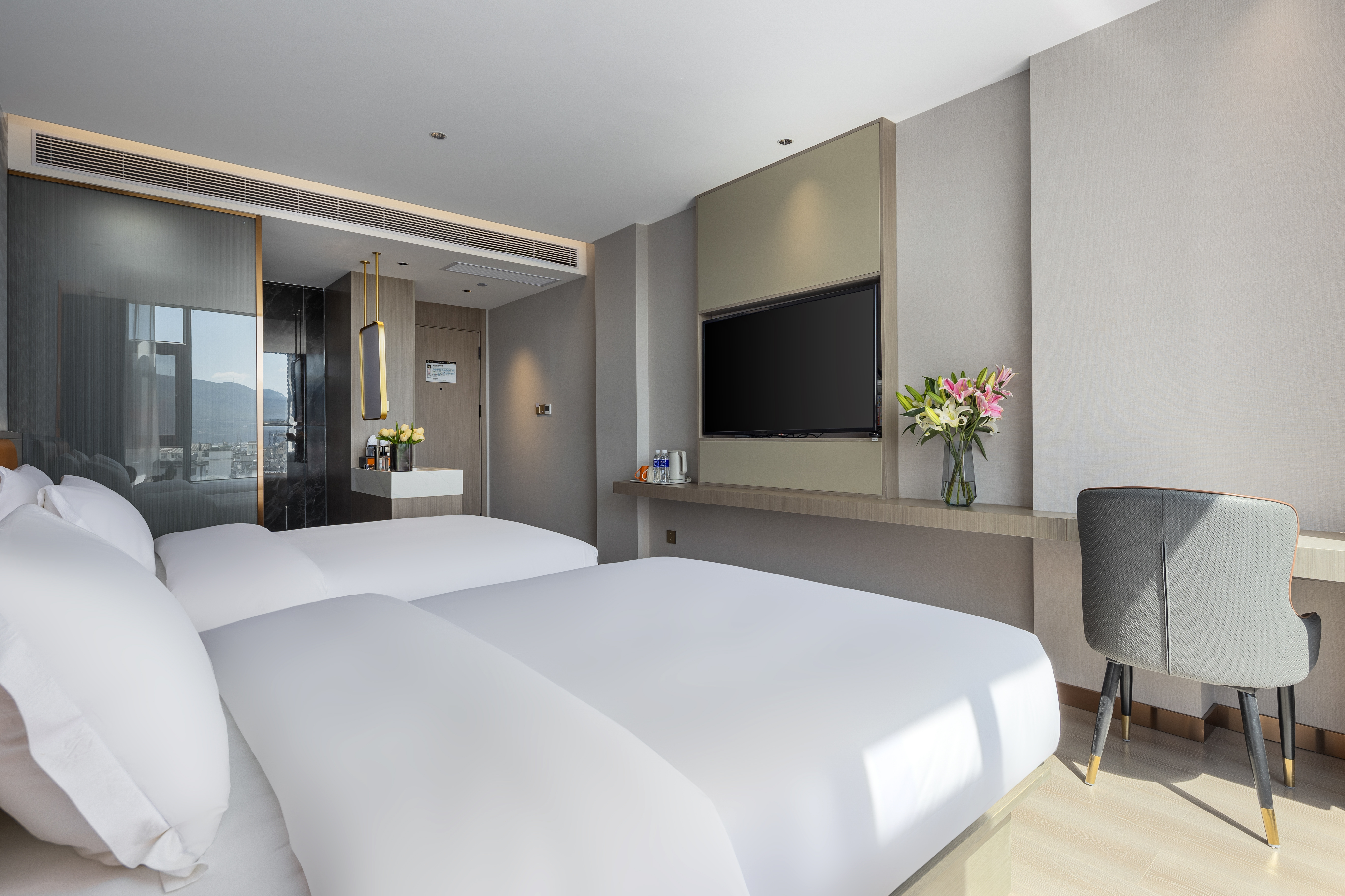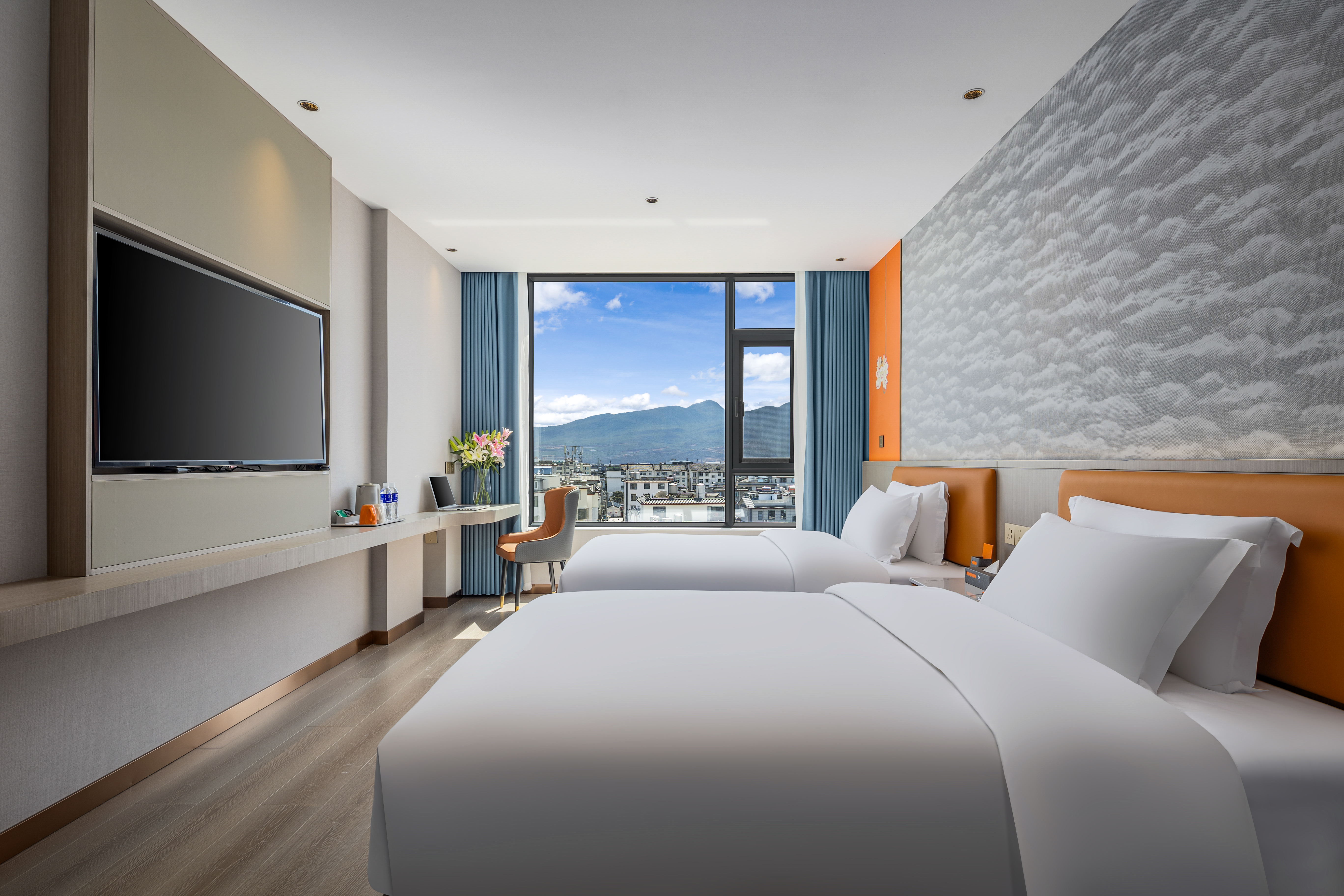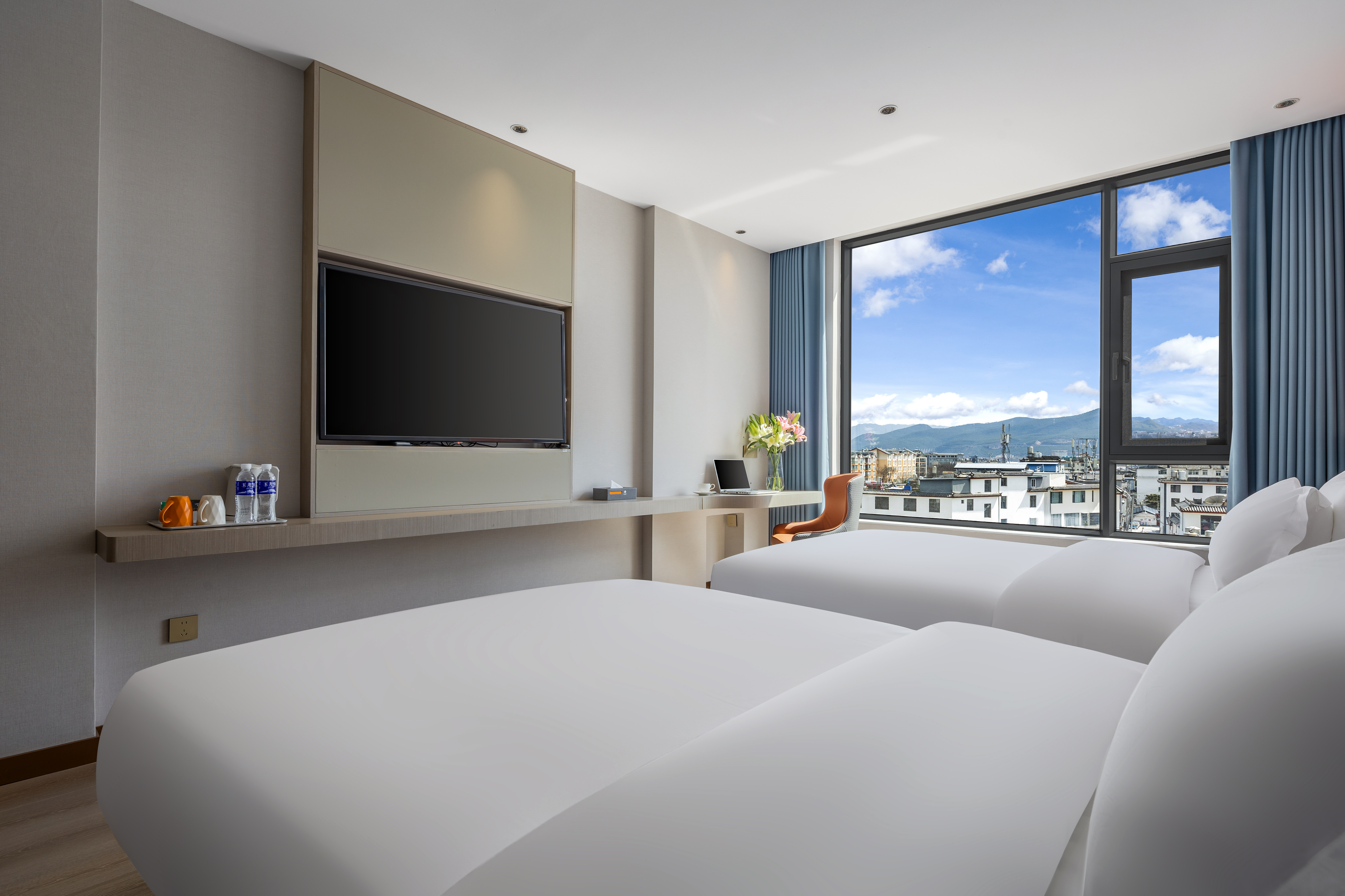 Twin Bed Room With Sunny City View
