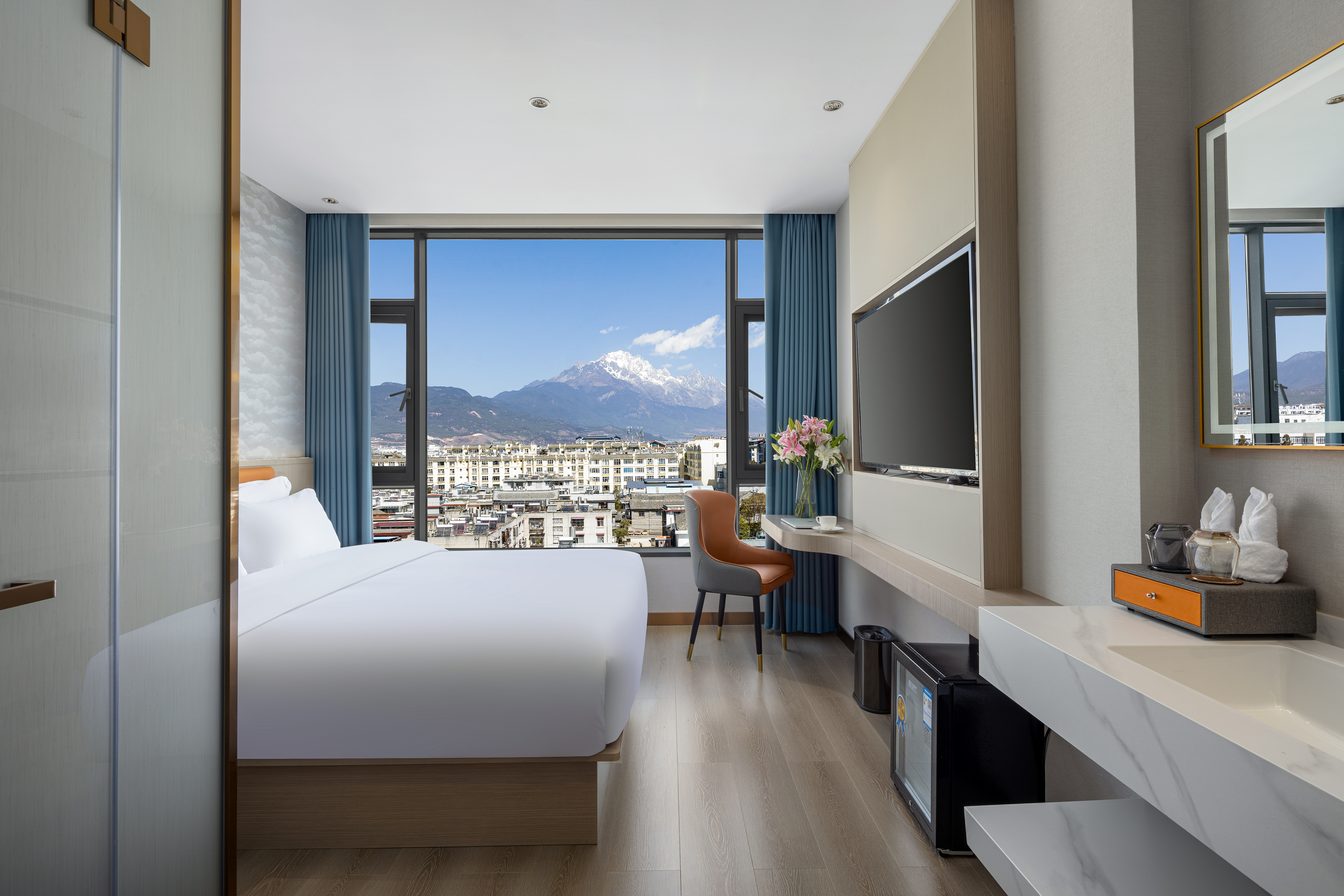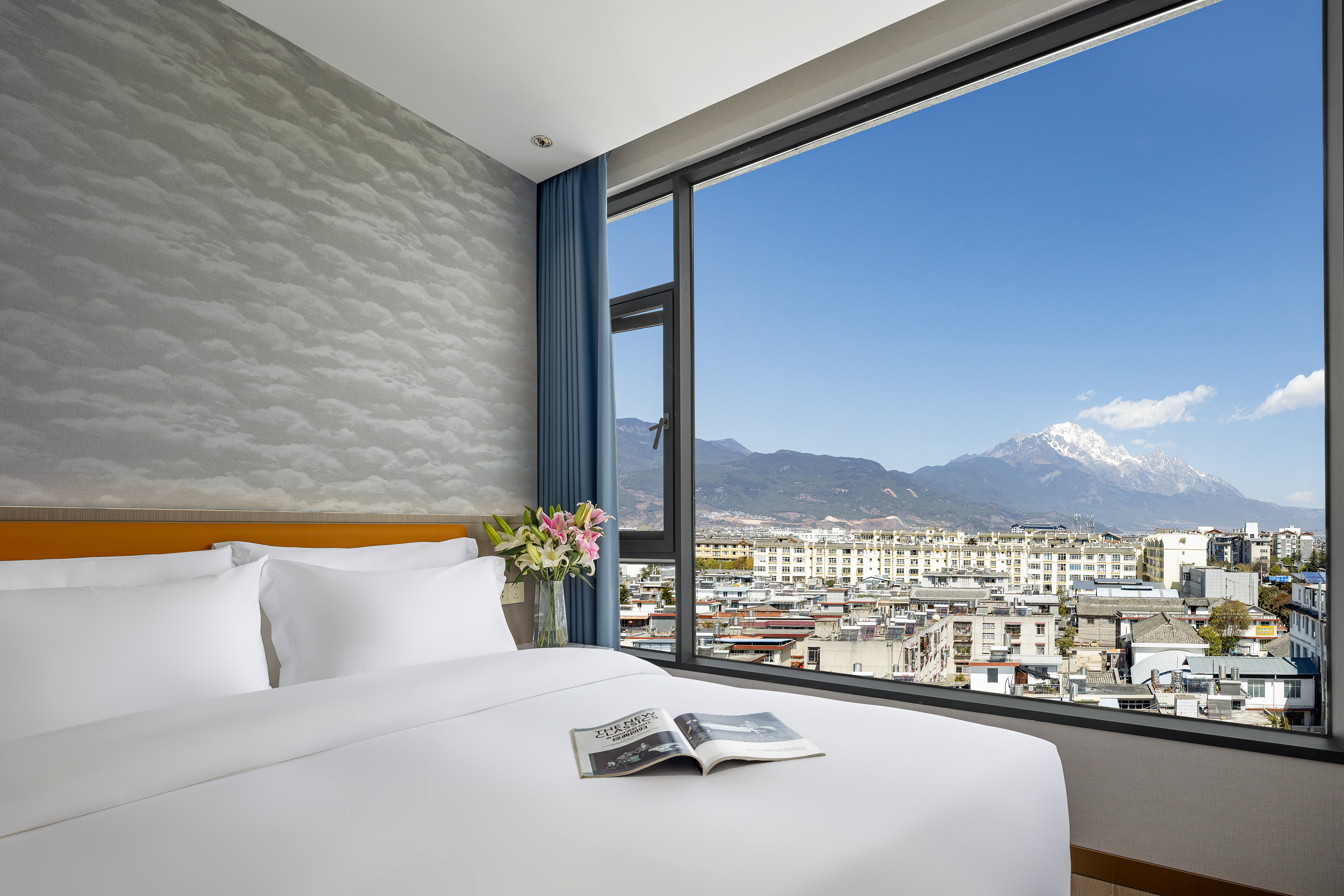 Queen Bed Room With Snow Mountain View