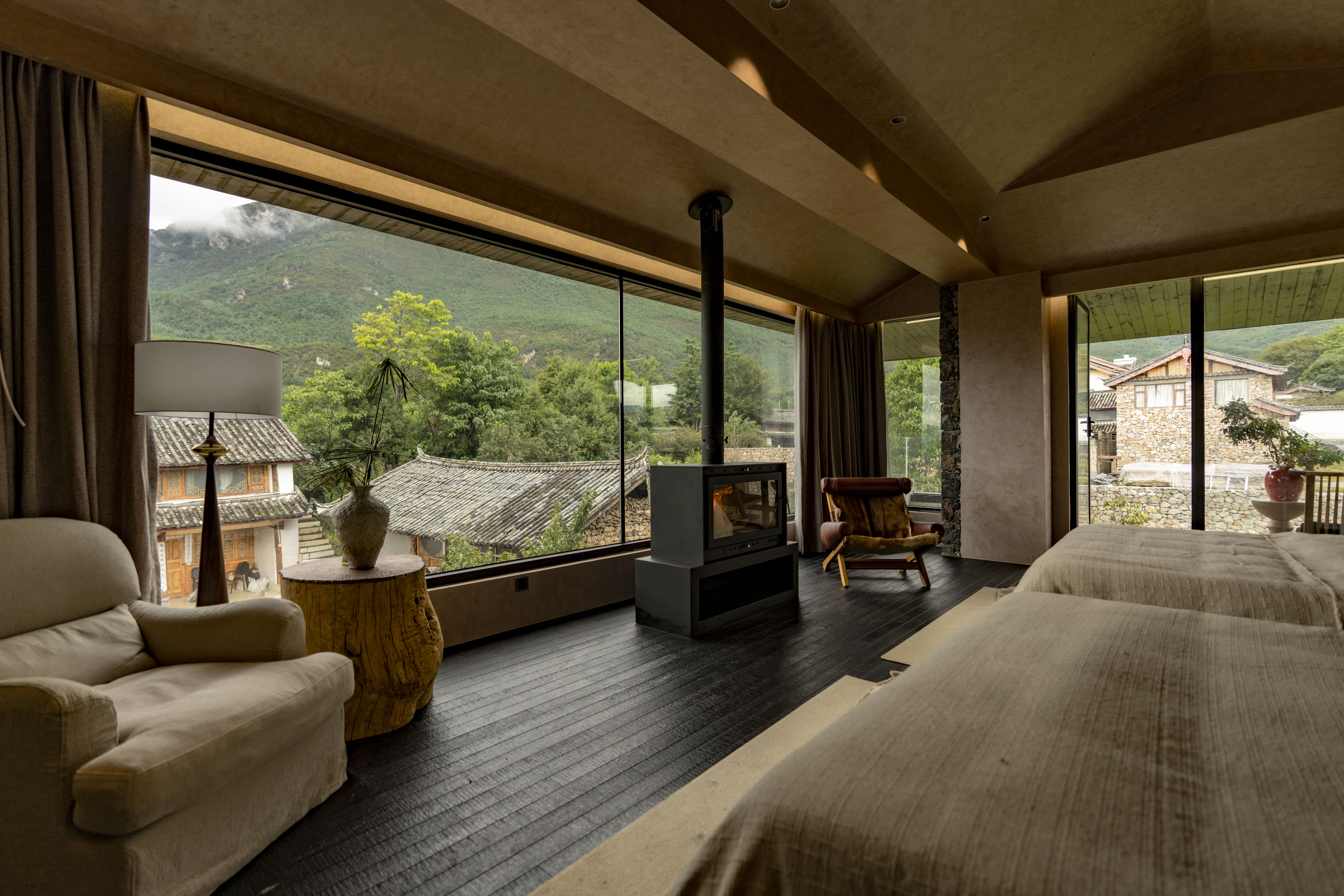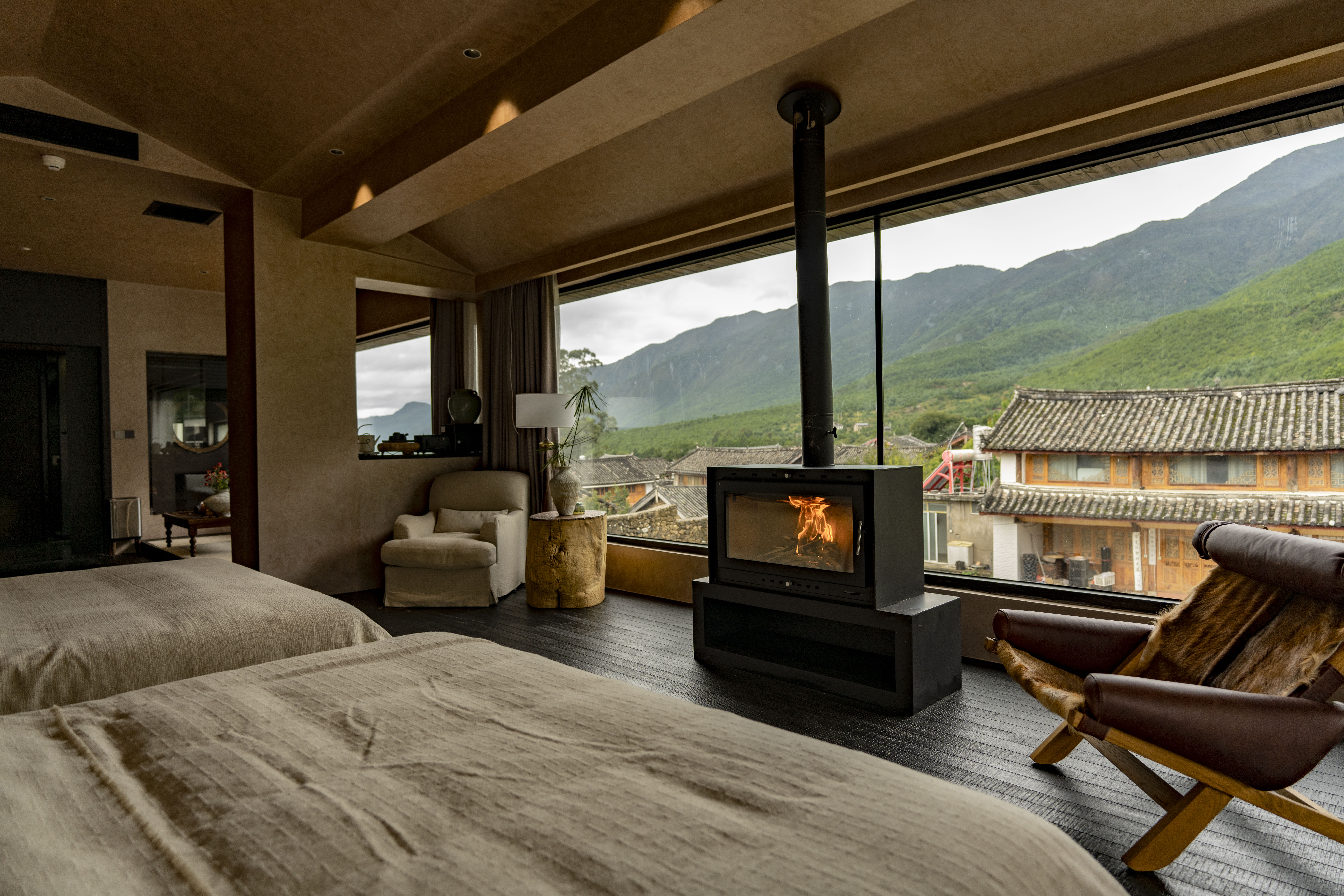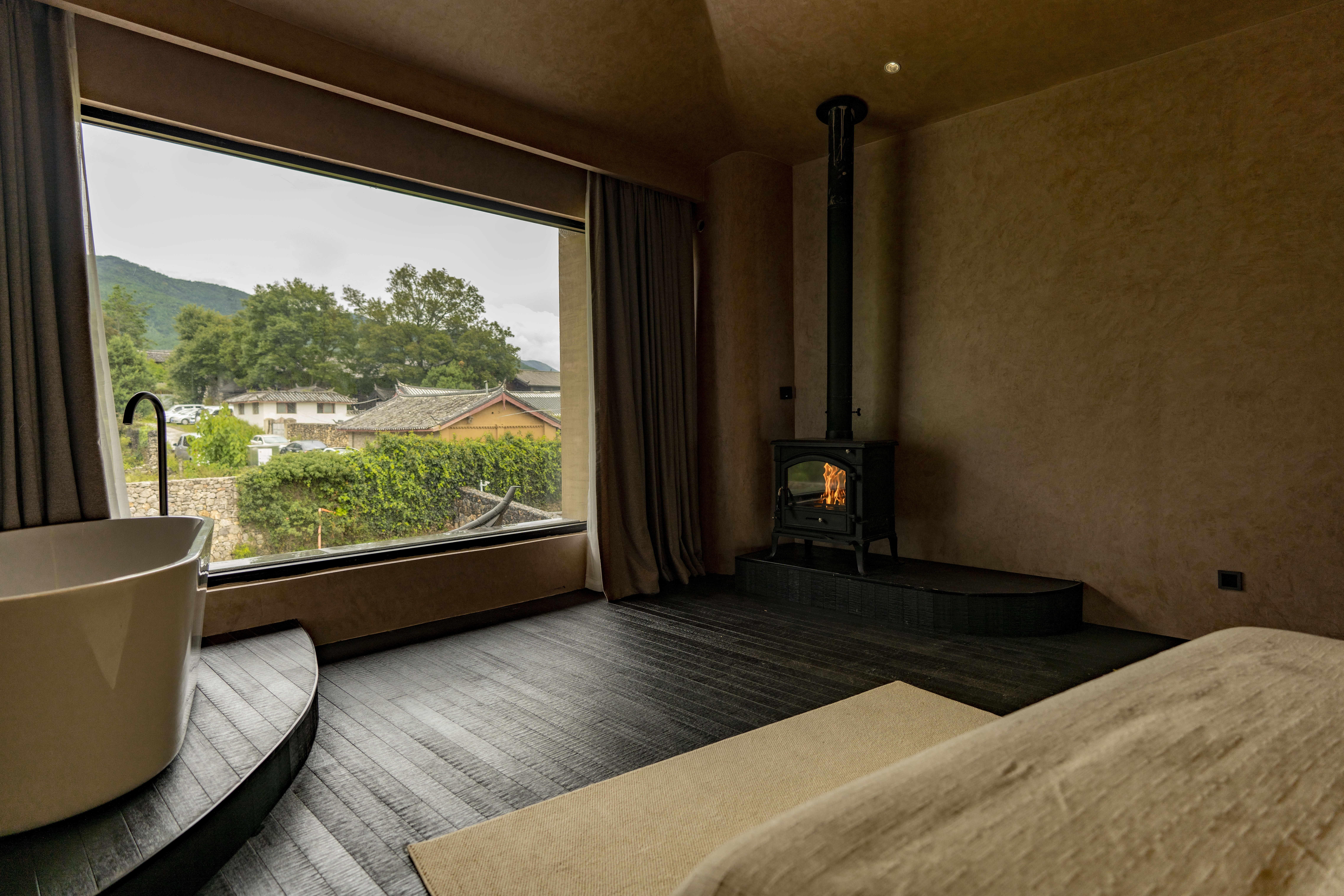 Snow Mountain View Tub Luxe Enjoyment Double Bed Room
