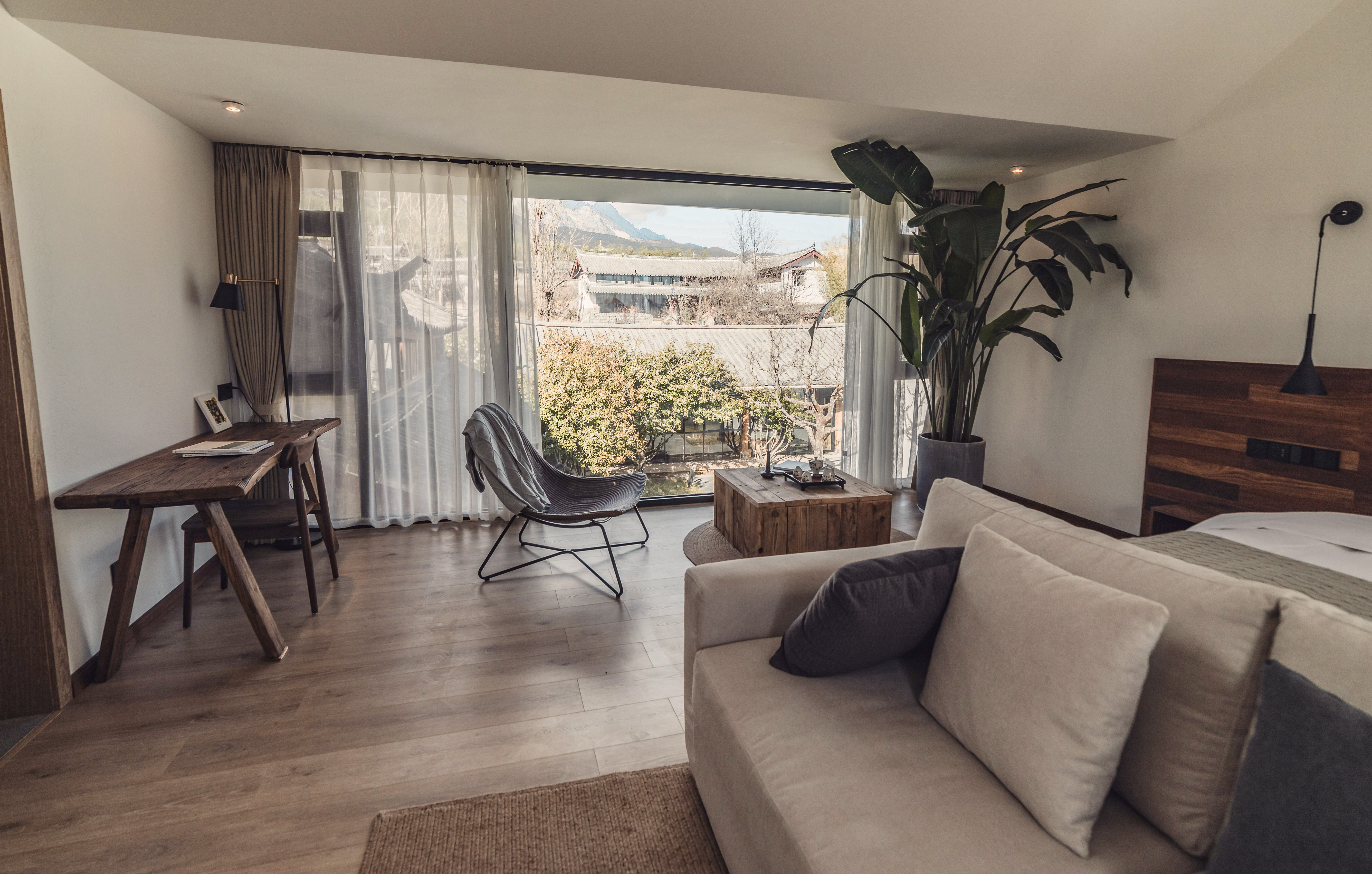Queen Bed Room With View Of Snowy Mountains