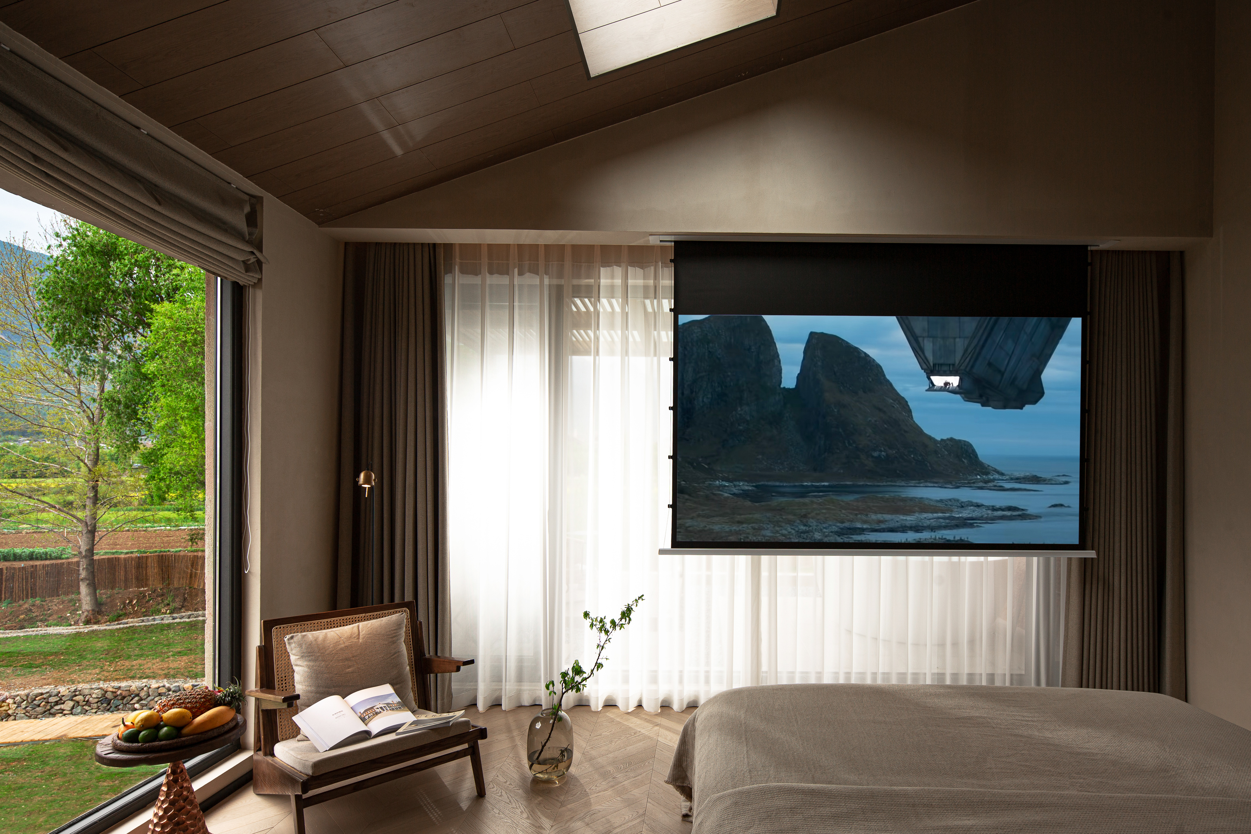 Shan Zhi Pastoral Snow Mountain View Family Room With Kohler Bathroom, Large Screen Projection, Fridge