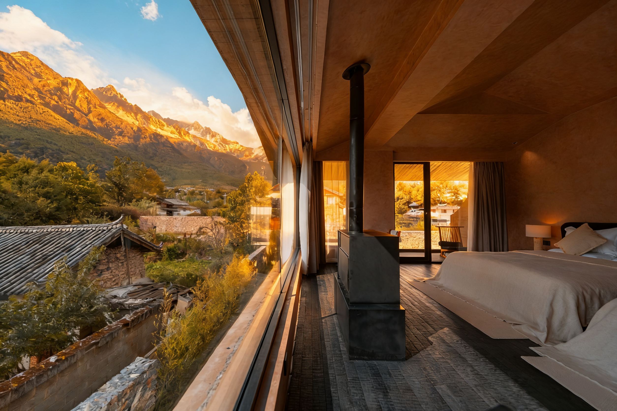 沐光|雪山全景泡池露台家庭套房【香氛|智控|壁炉】