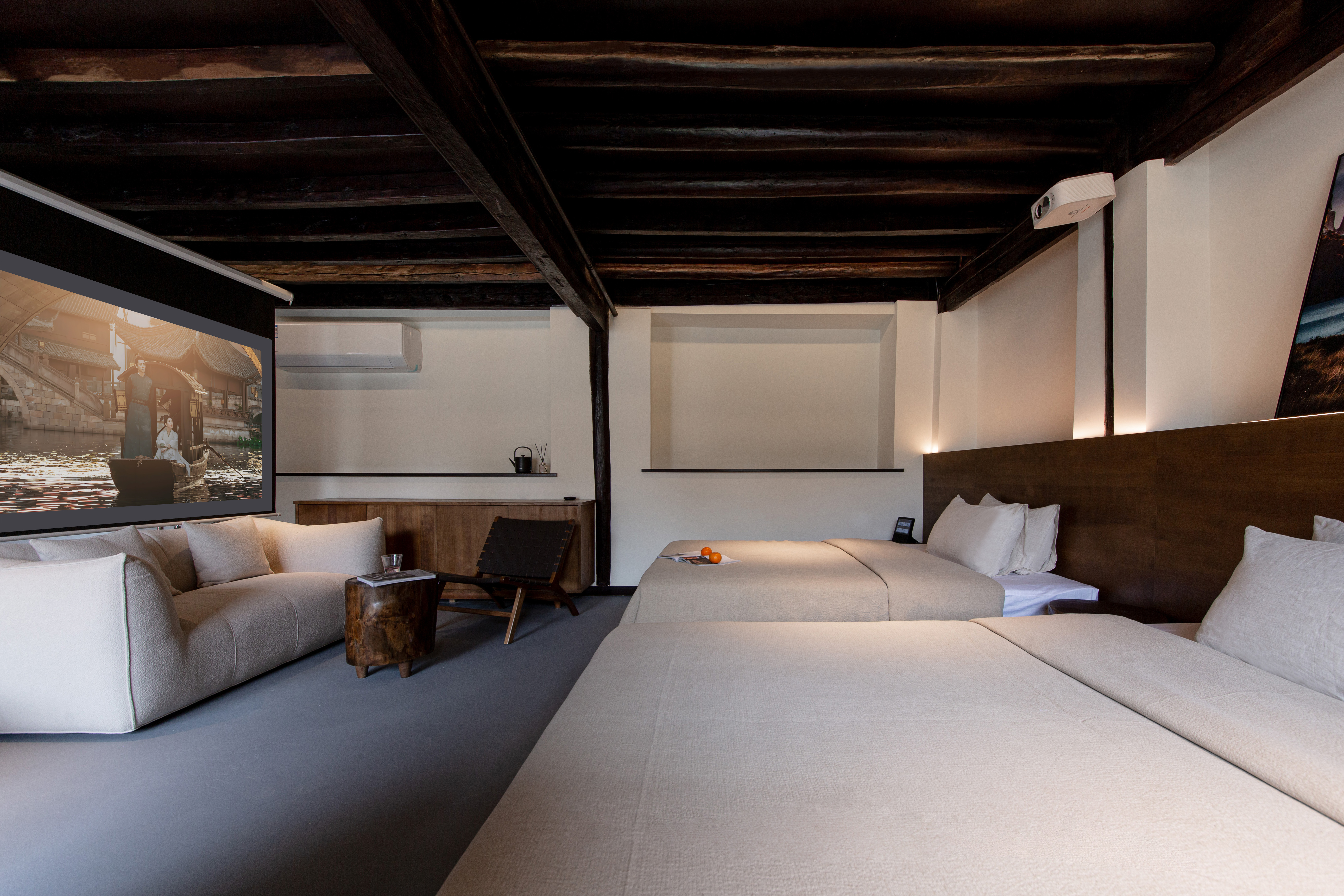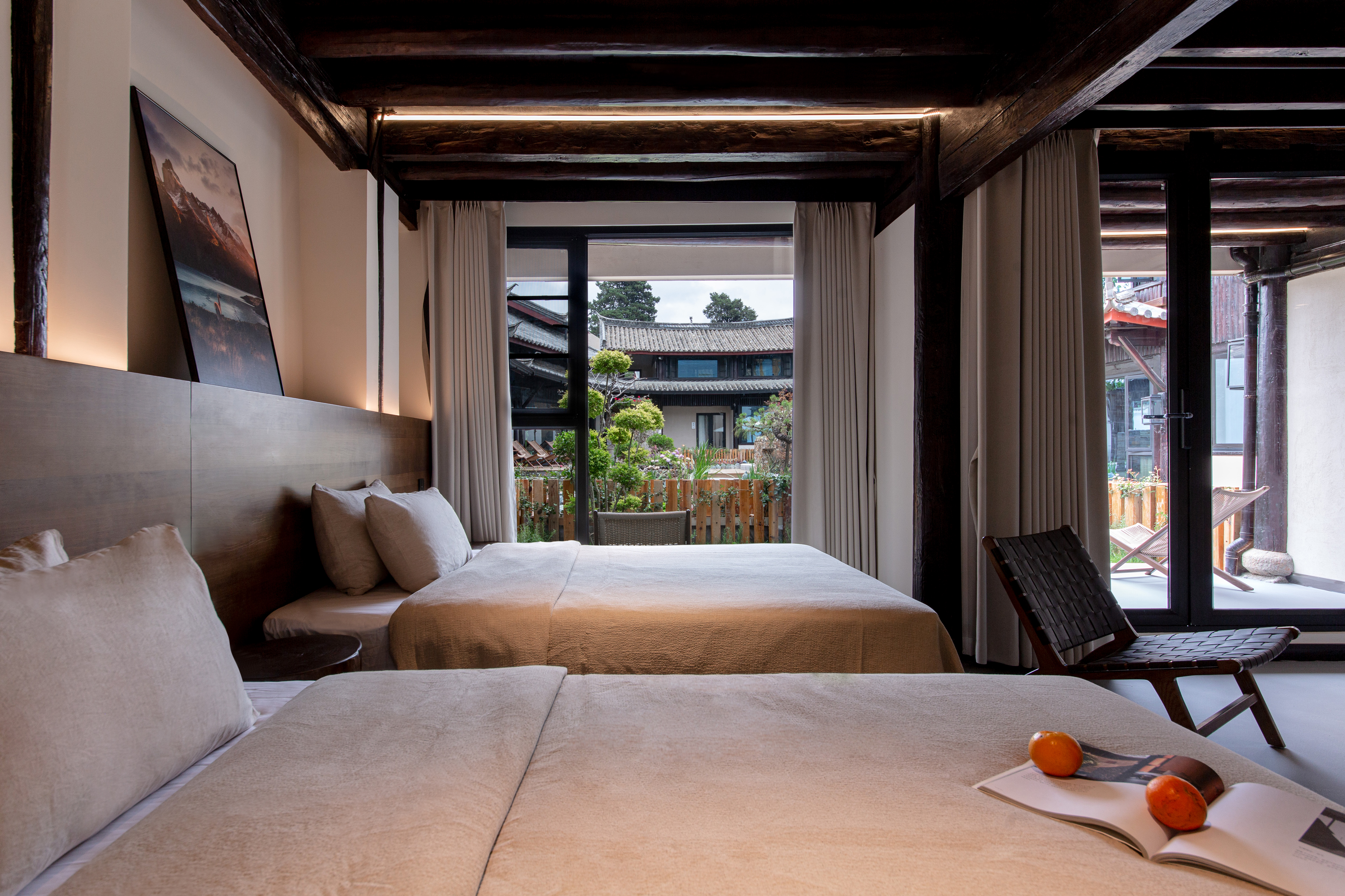 花满∣锦鲤景观小院双床房+浴缸+戴森+加湿器+空调+巨幕投影