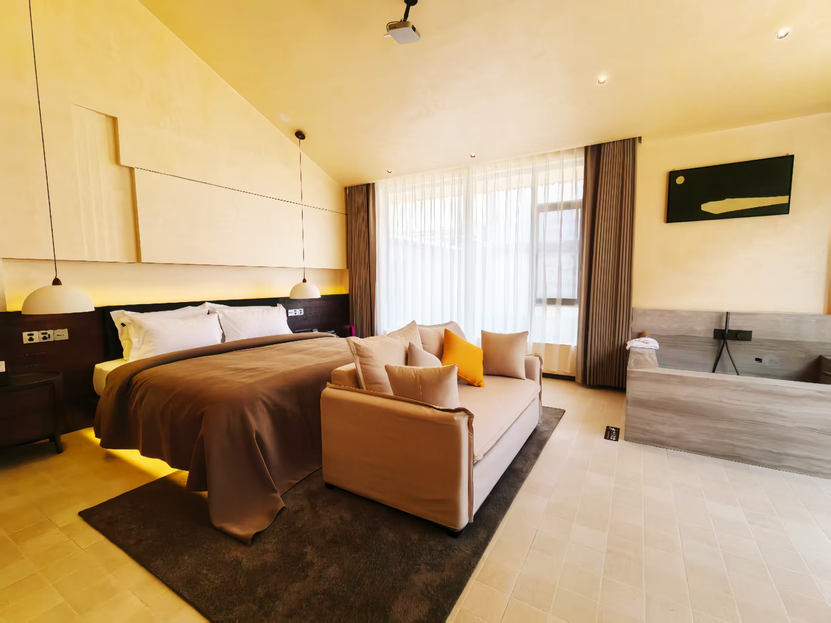 庭栀雪山全景花园浴缸家庭房『戴森·投影·慕思床垫』