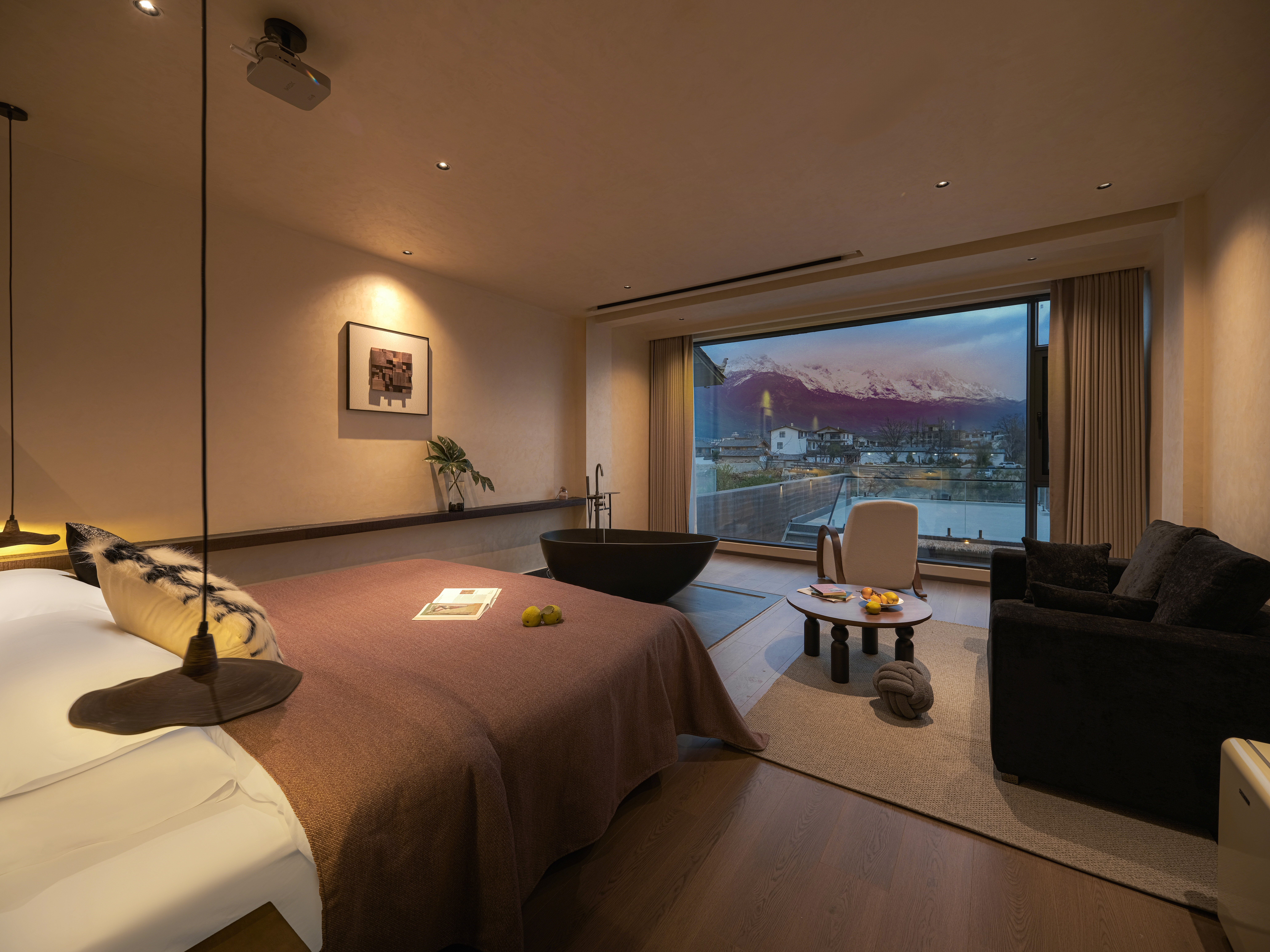 晚霁雪山观景浴缸大床房-慕思床垫-戴森-马歇尔音响