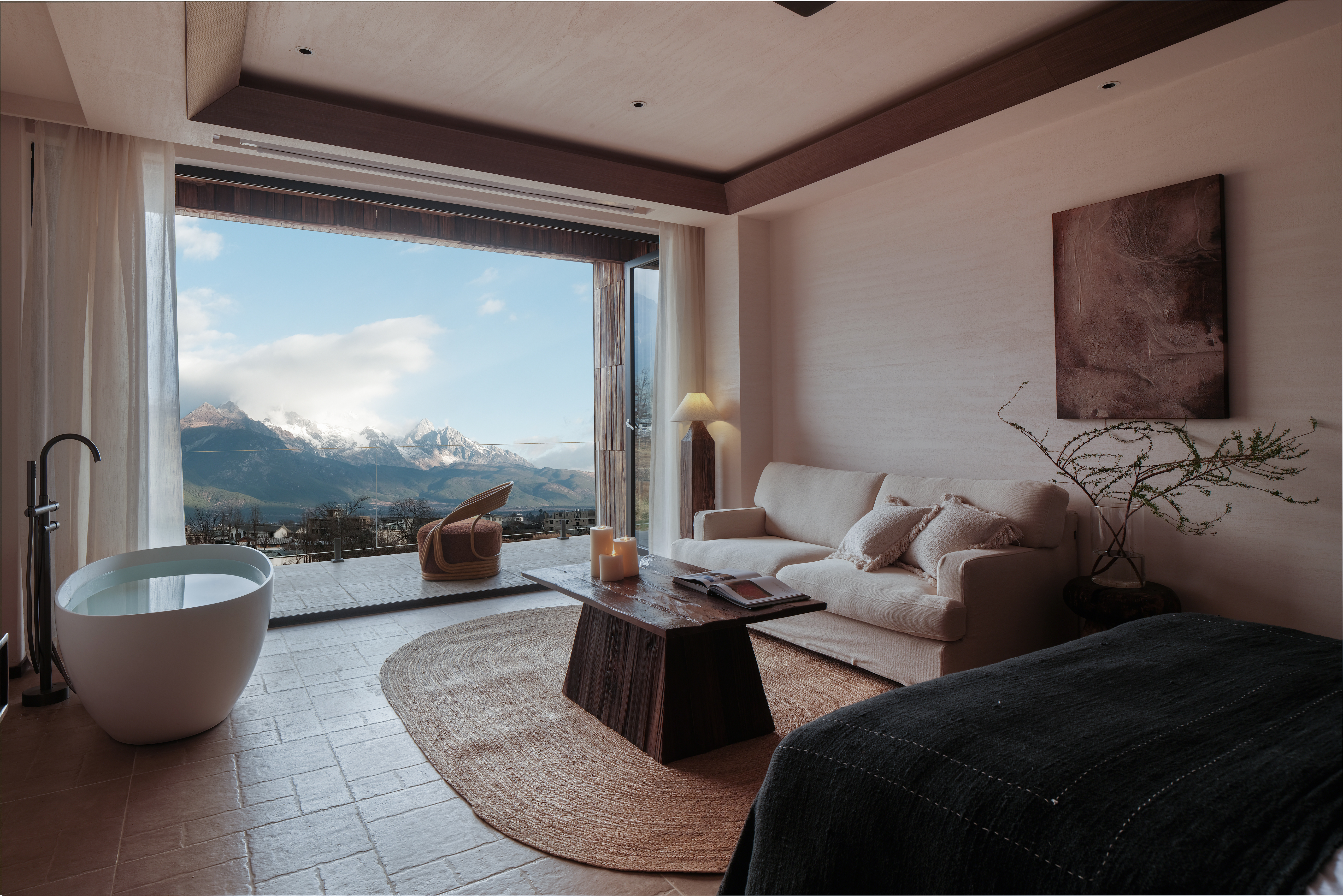 赏·雪山浴缸露台全景房(爱普生投影+马歇尔音响)