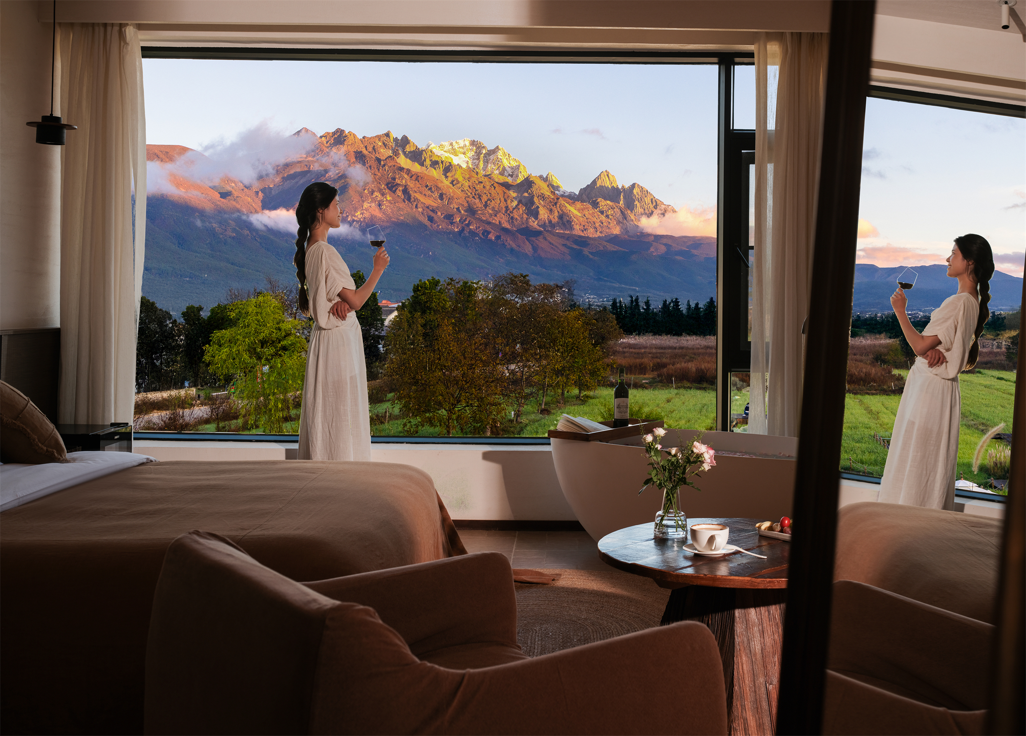 閲·雪山观景露台大床房(爱普生投影+马歇尔音响)