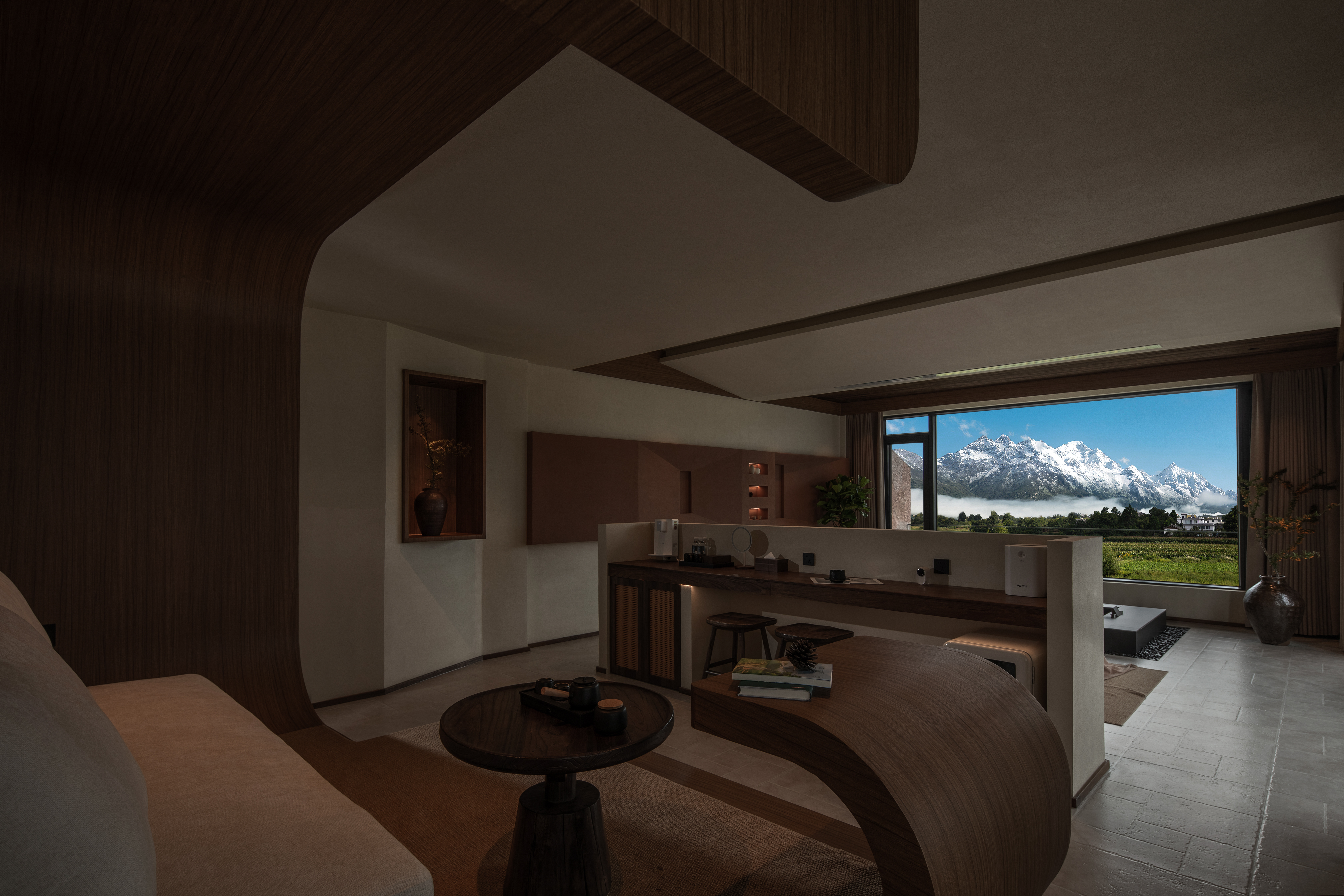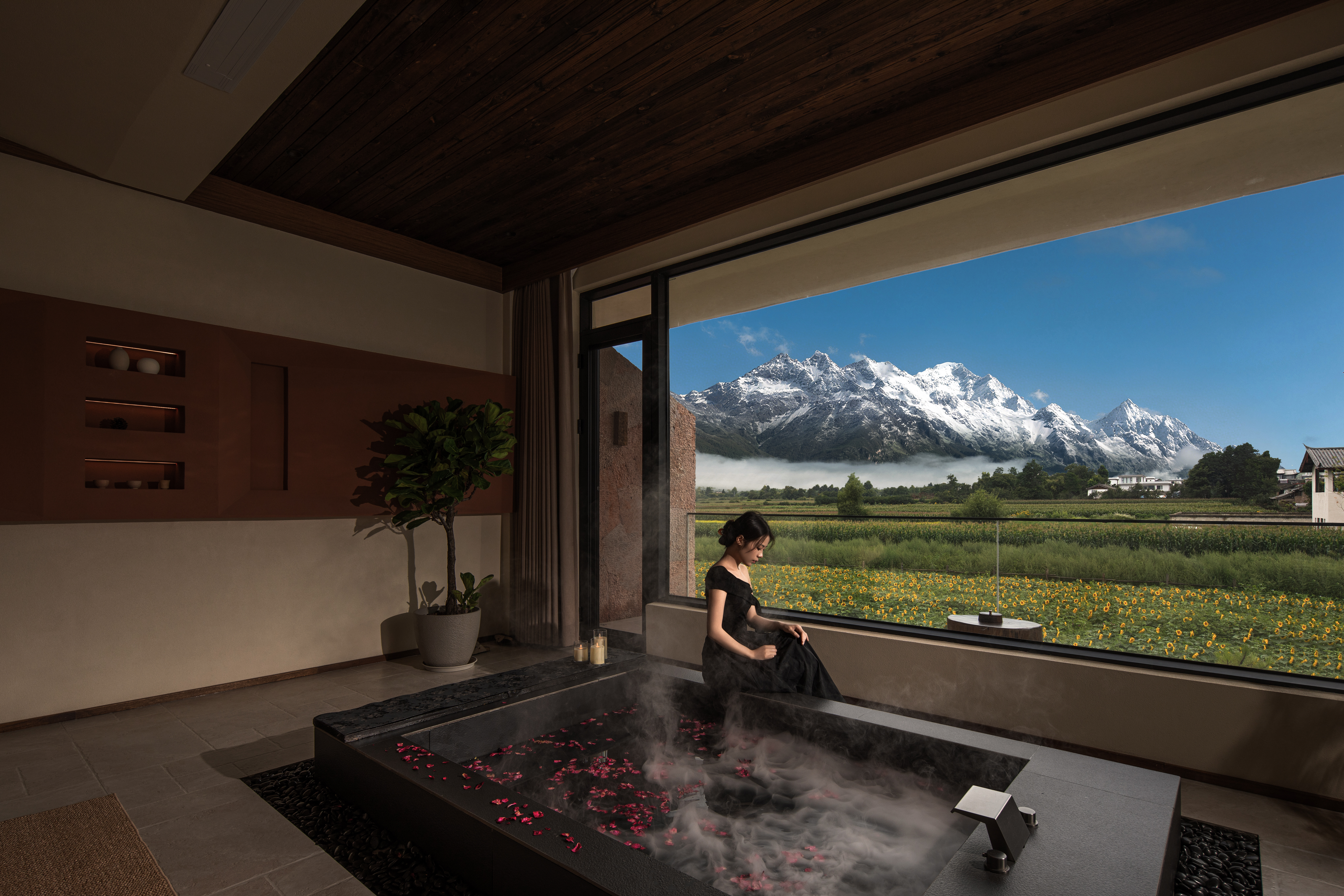 云岭|180°雪幕私汤观山大床套房|供氧机+地暖+金可儿