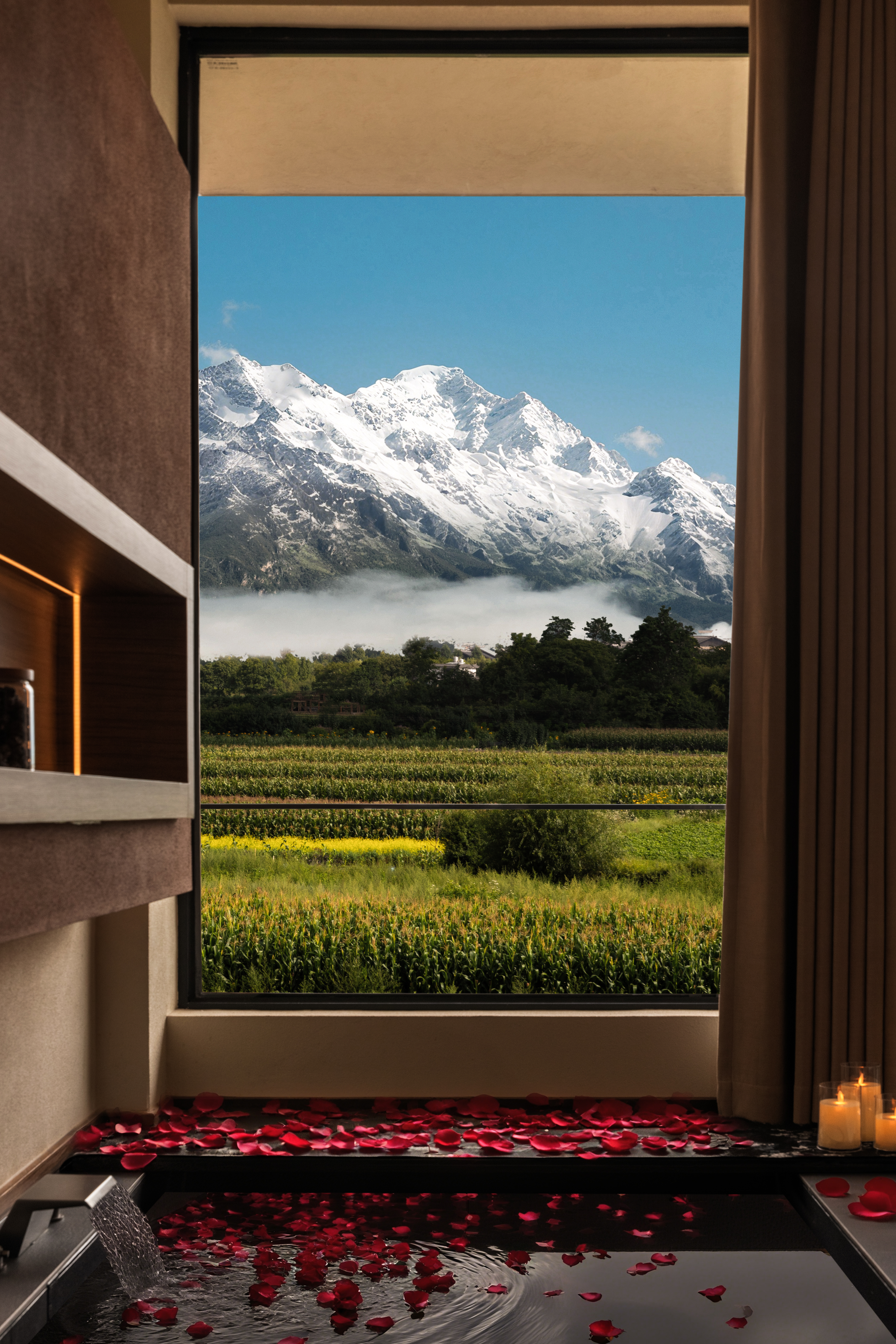 霁雪|270°L型环雪浅池露台大床房|供氧机+地暖+科勒
