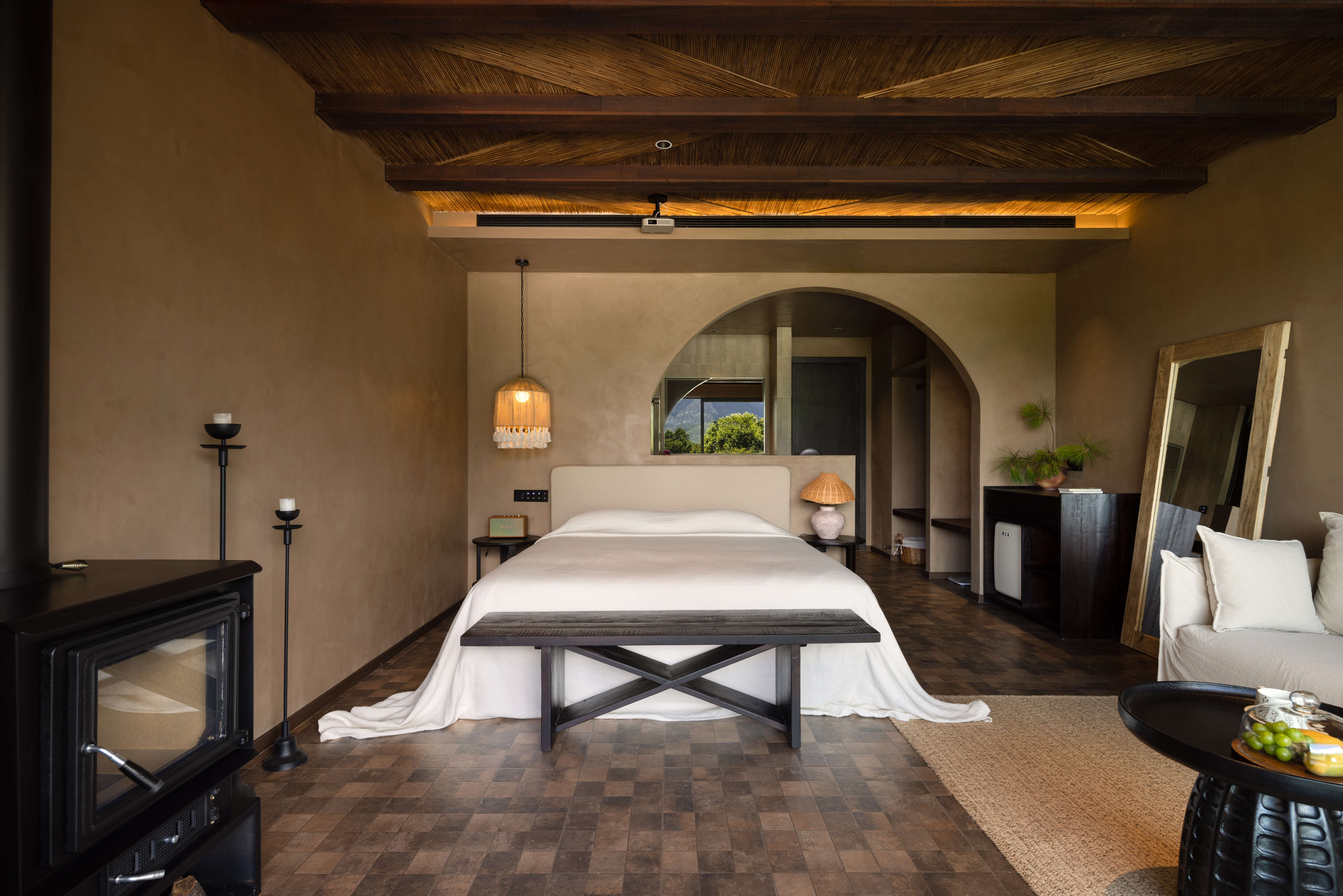 见山丨日照金山阳台大床房(壁炉+巨幕投影+地暖空调)