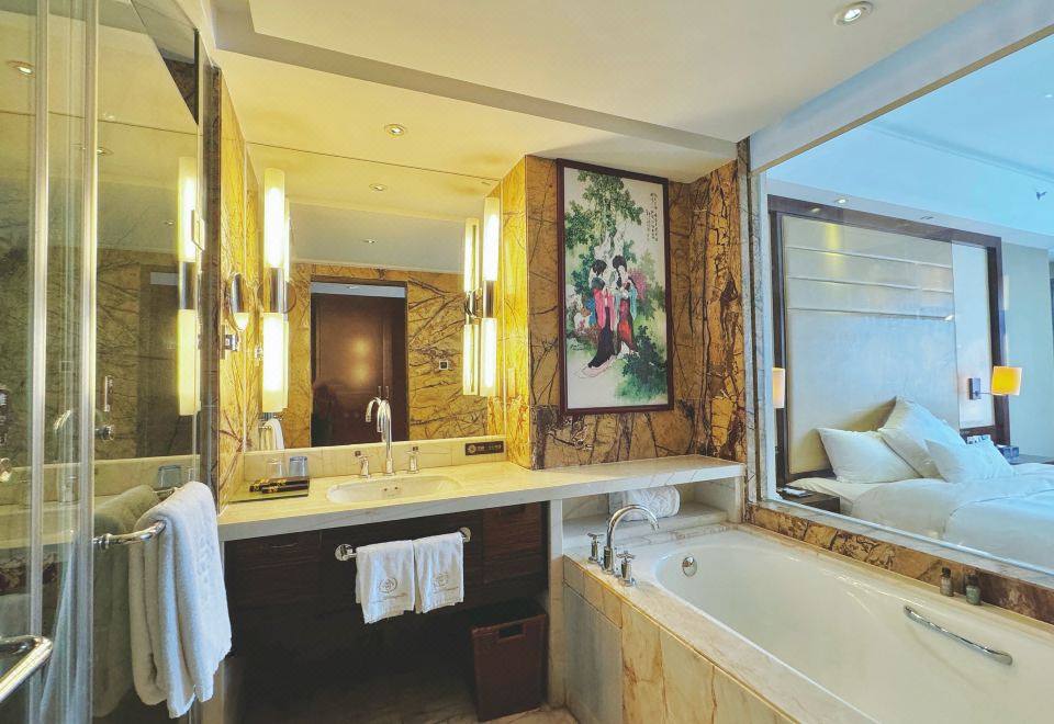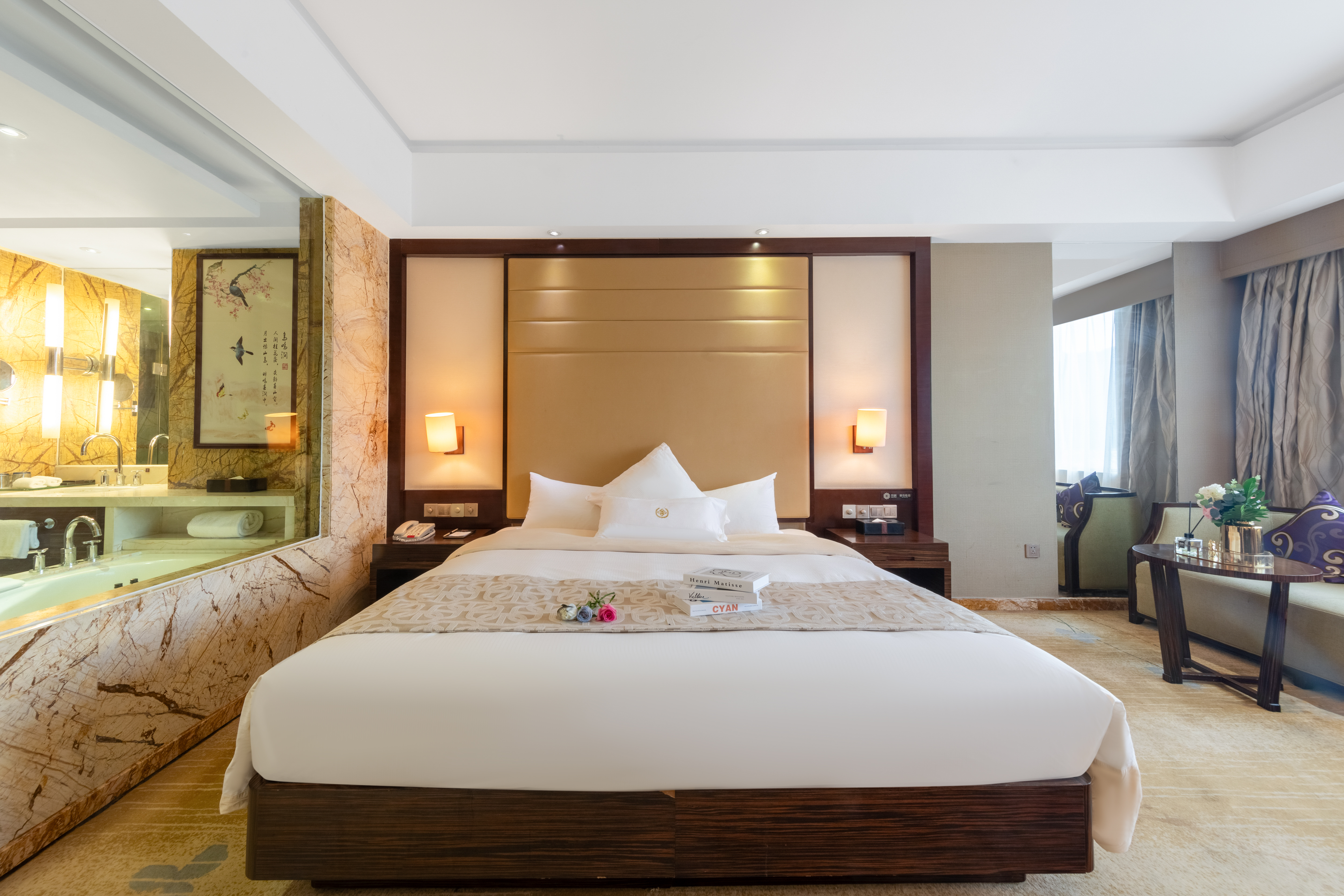 尊享·石韵大床房丨进口大理石精装+商务电脑+功夫茶具+市景