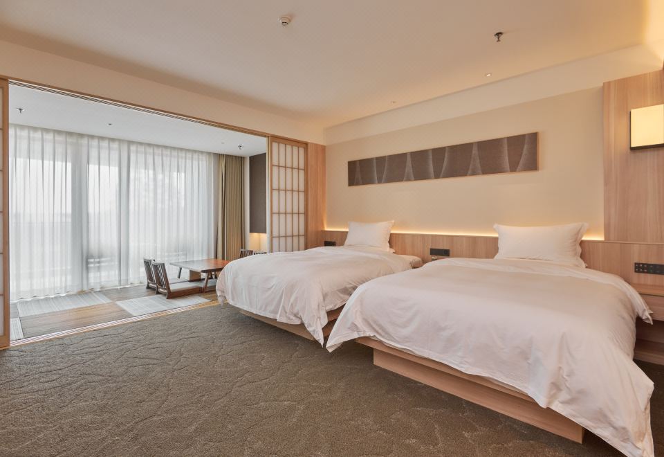 豪华景观双床家庭房(茶室)+四人温泉