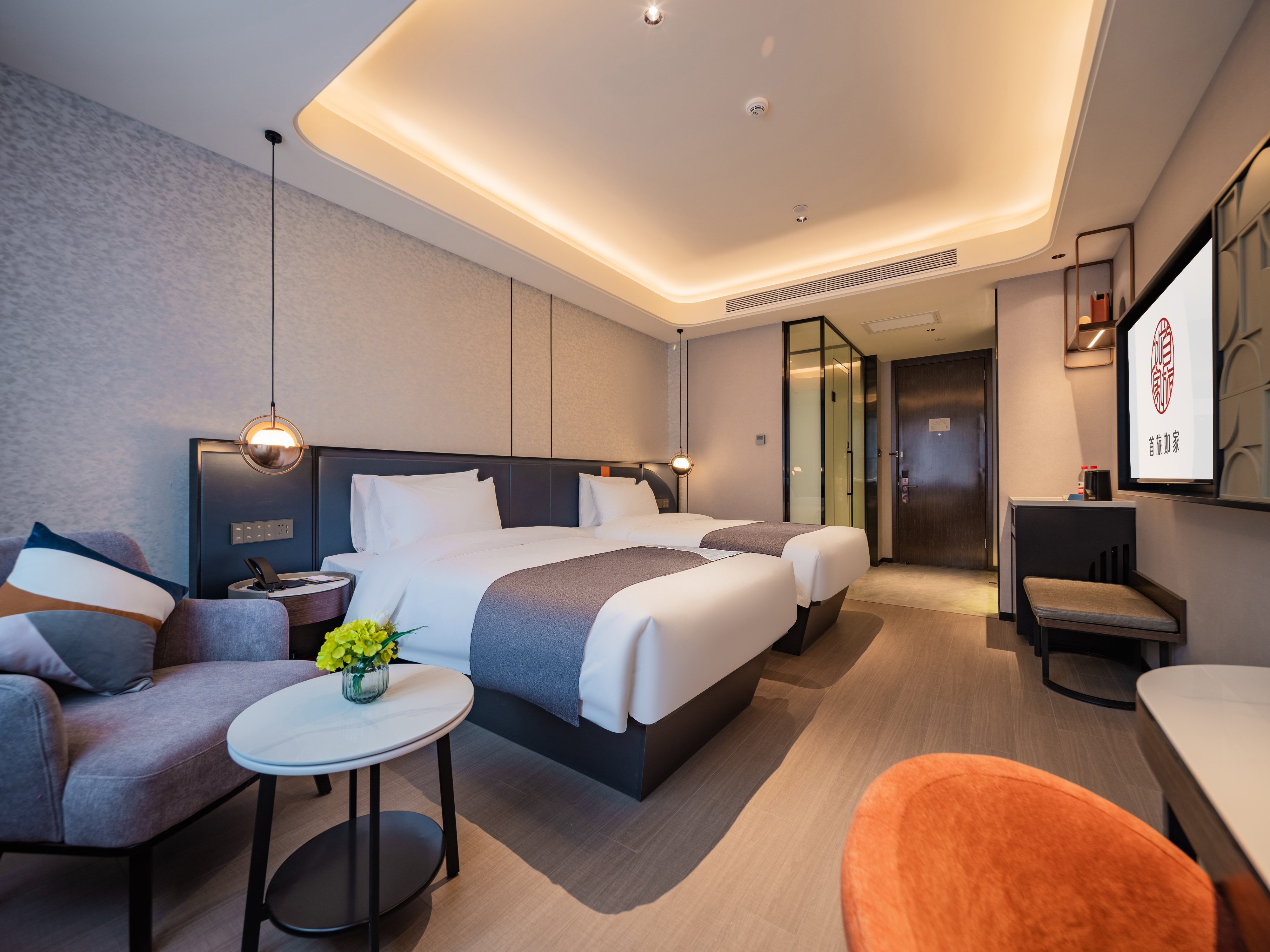双床房+梦百合垫床+小冰箱+加湿器+全屋智能+手机投屏