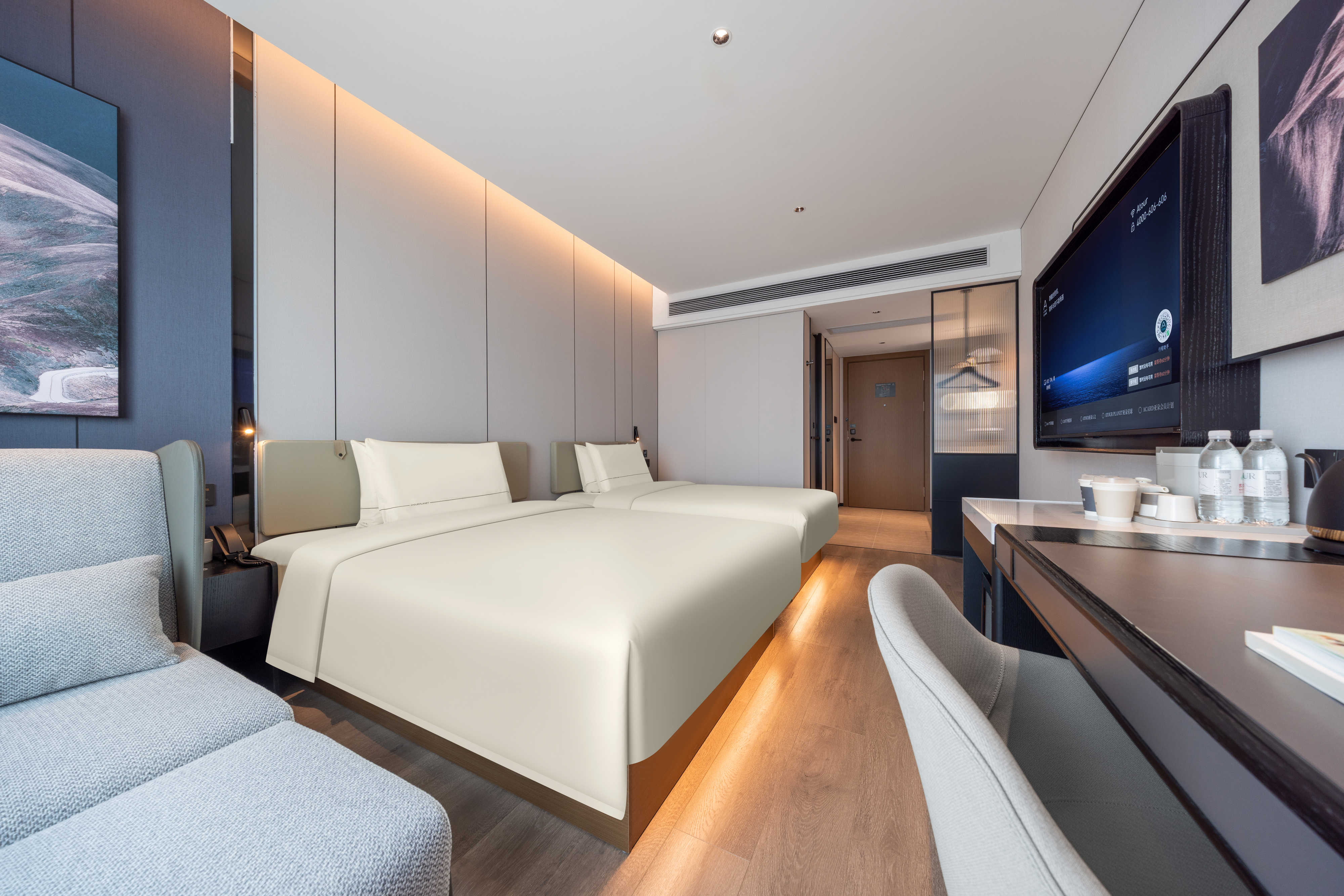 行政海景双床房(深睡床垫、枕头+裸棉床品+投屏电视)