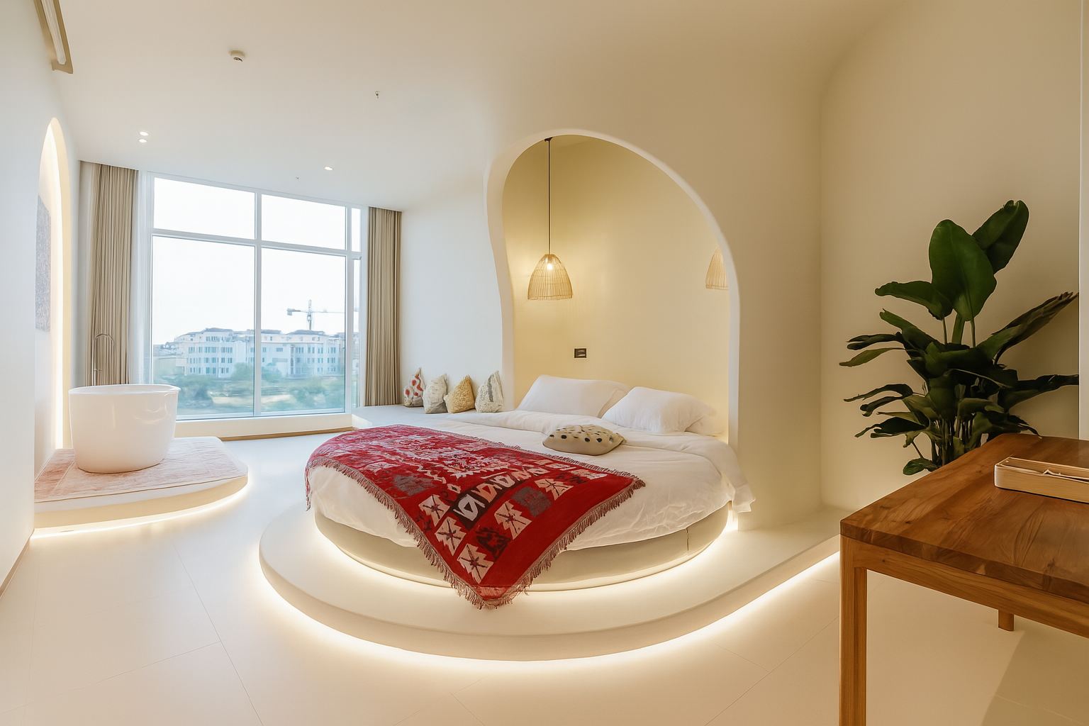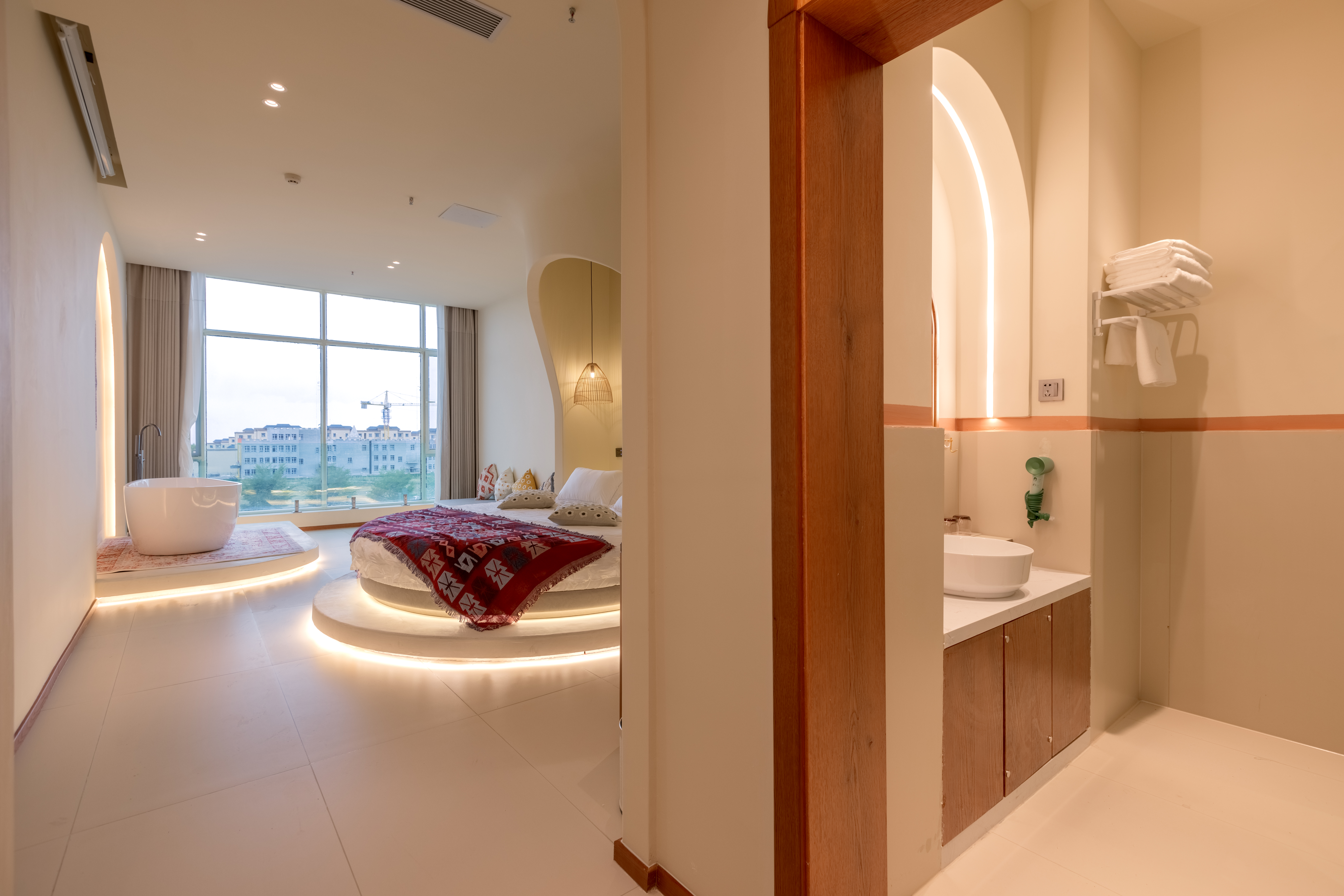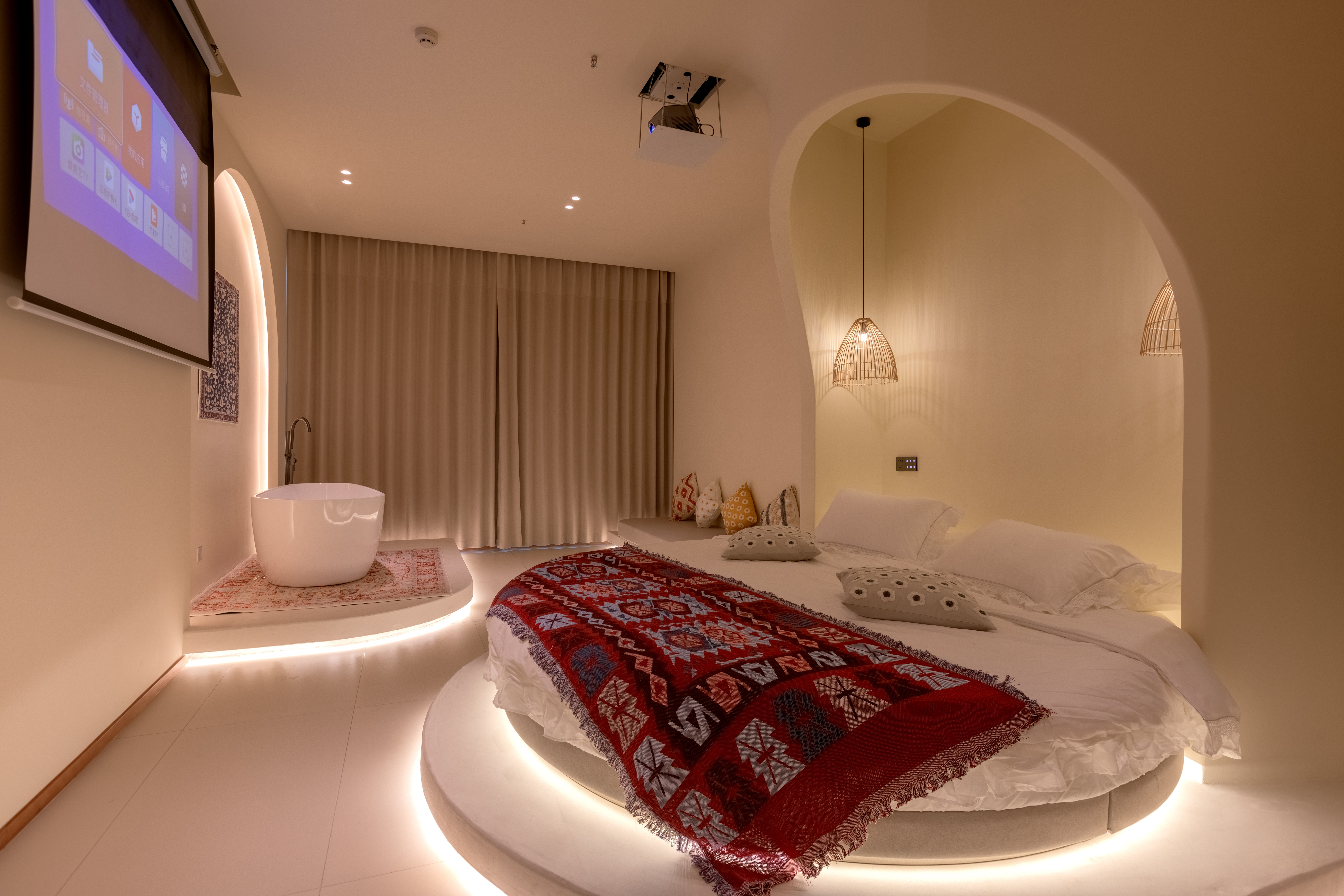 梦寐以求圆床房『高清投影·智能马桶·自动窗帘·全景落地玻璃』