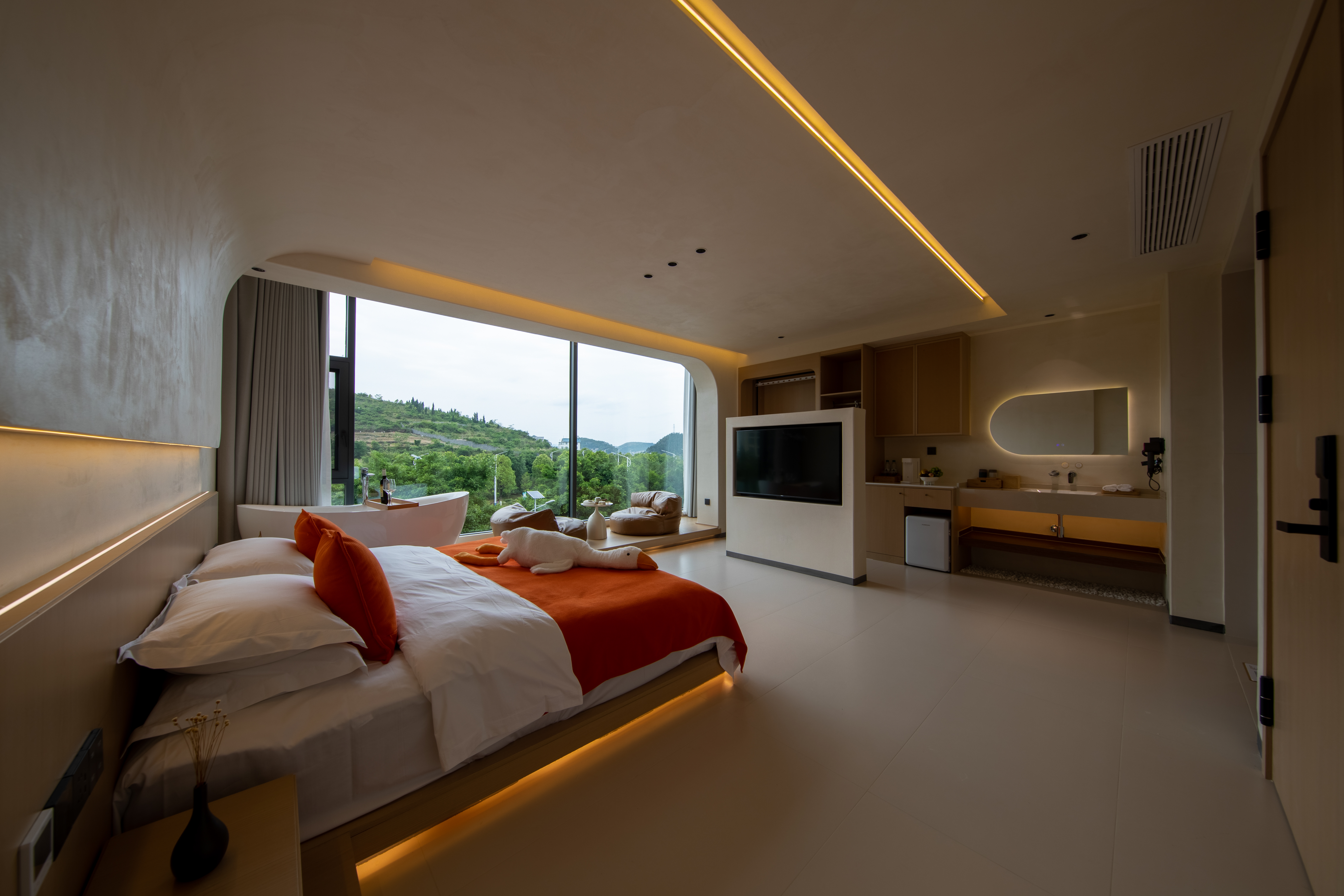 兮·云卧山景大床房【戴森吹风机|慕思床垫|minibar】