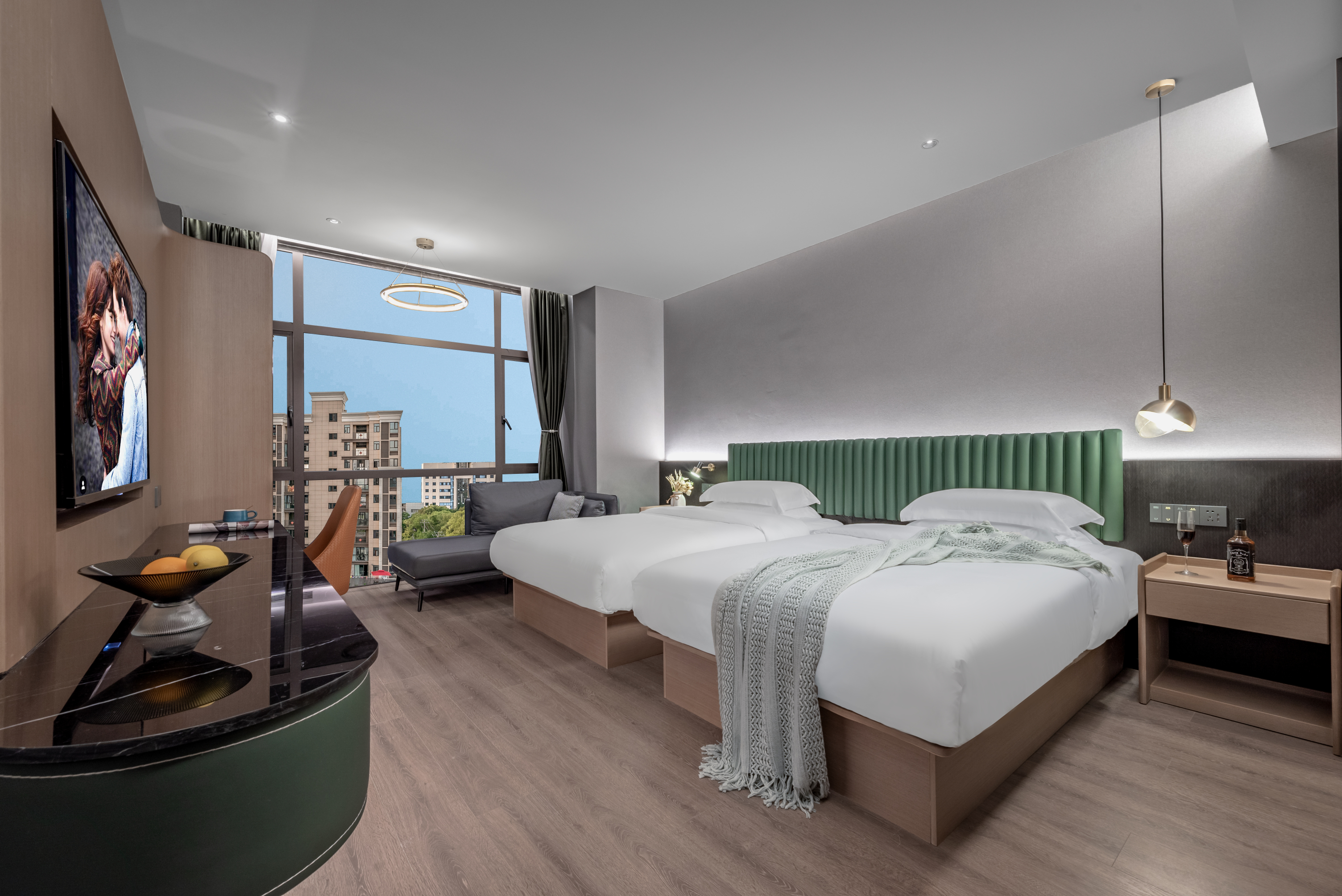 筑梦?舒睡双床房-智能客控+恒温加湿器+乳胶床垫+3.0日立新风系统+足浴桶