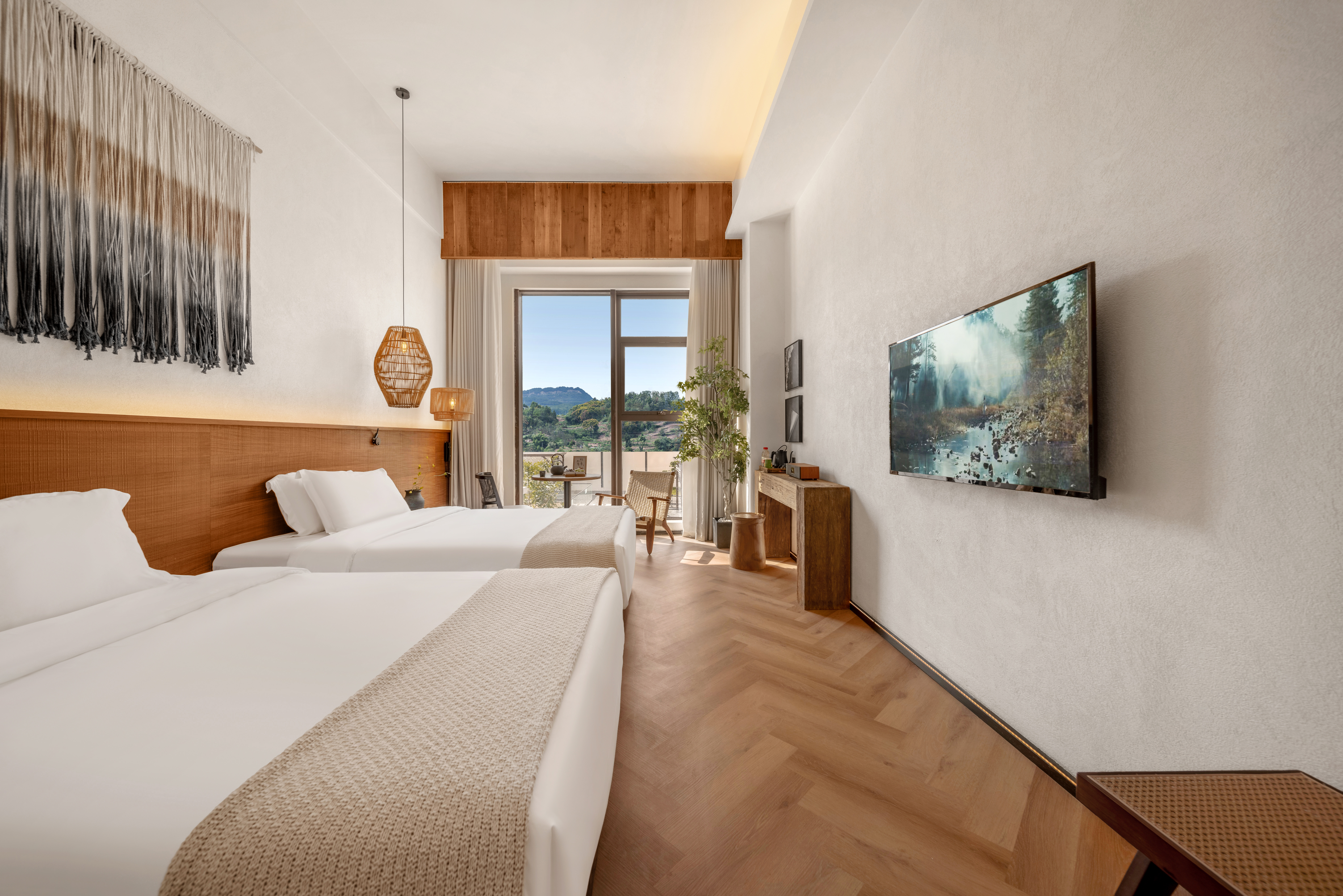 橙子﹒庭院观影双床房(巨幕投影+庭院茶室)