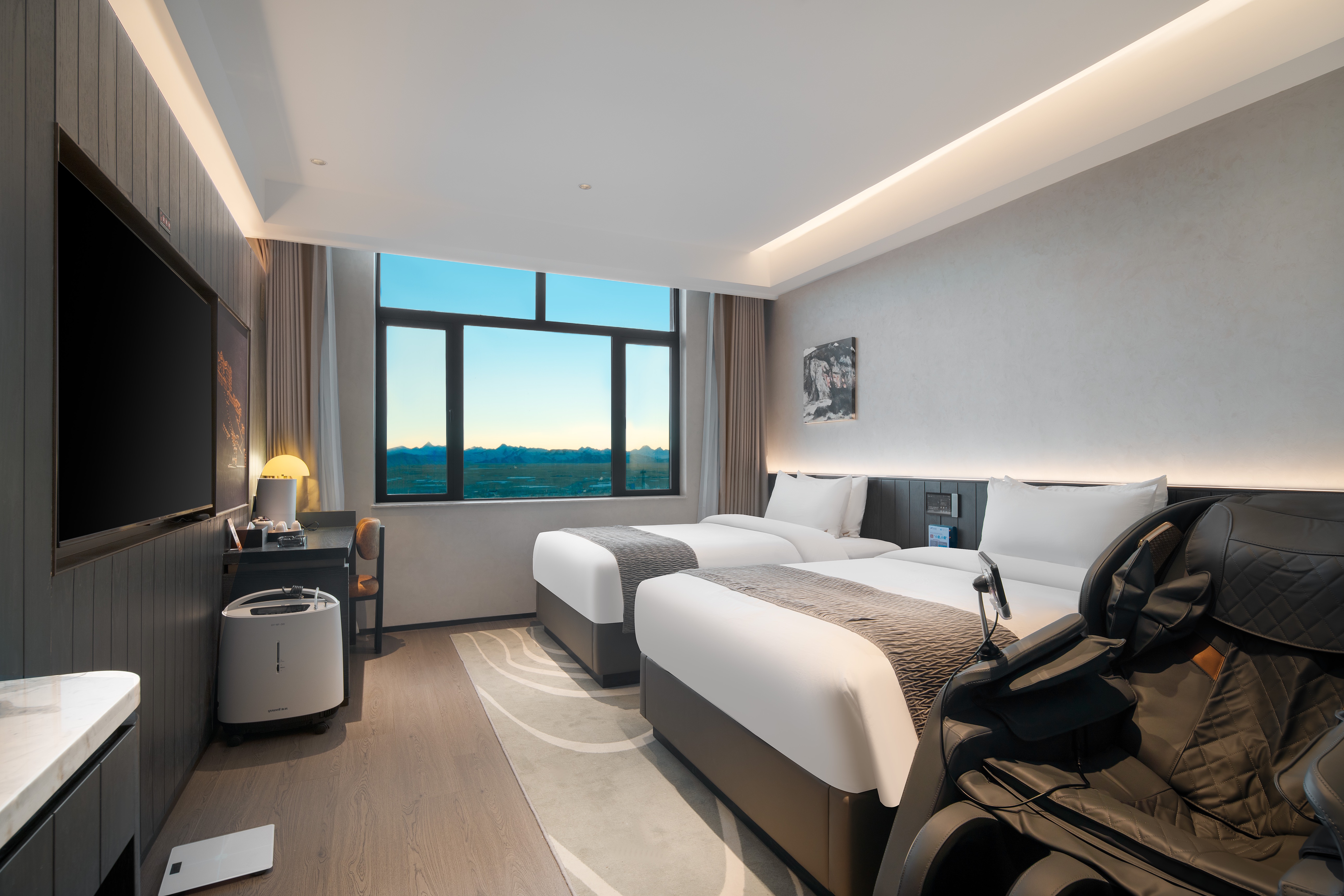 夕寻-观景双床房(全屋地暖+医用制氧机+慕思床垫+按摩椅+加湿器+智能马桶+蒸汽眼罩)