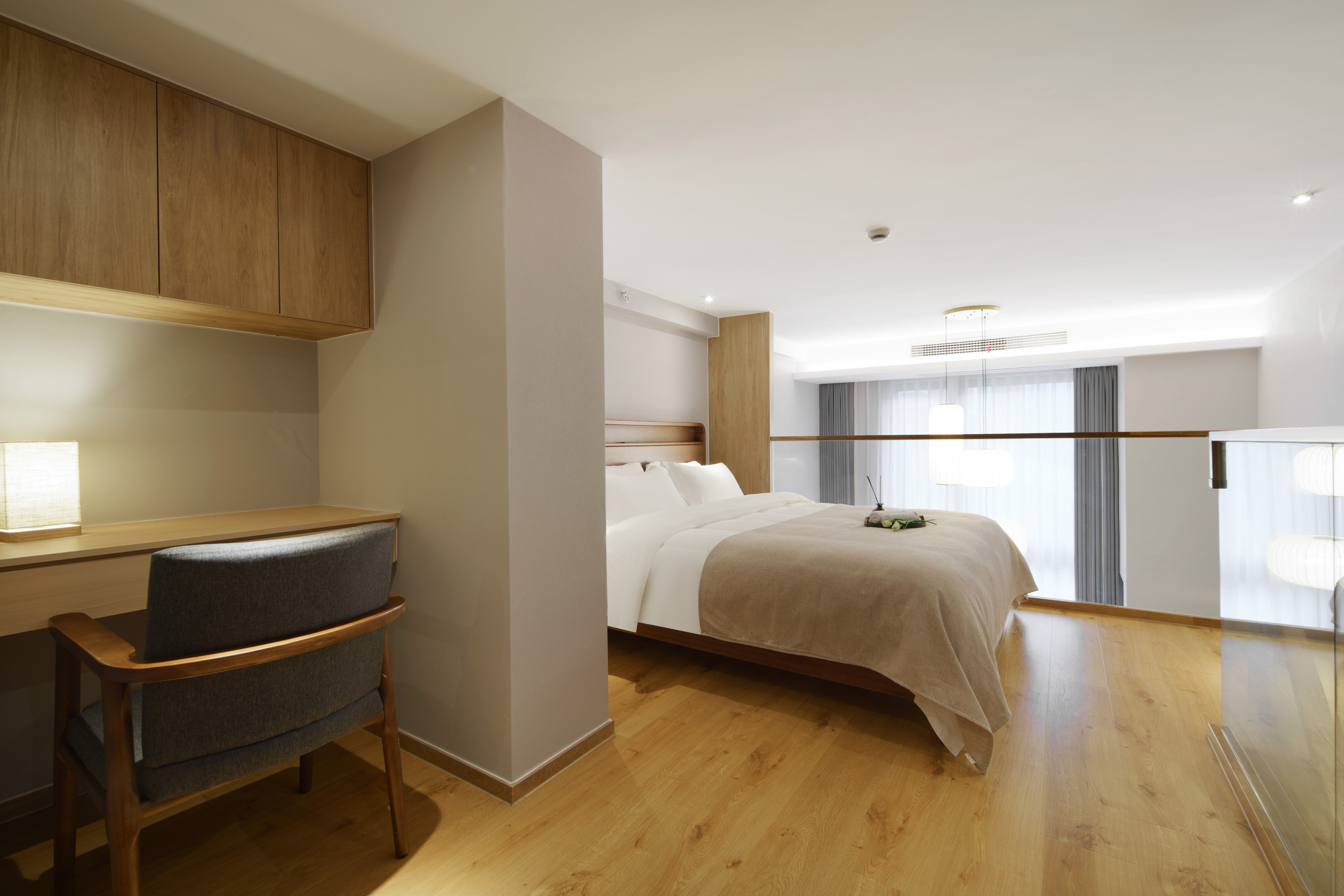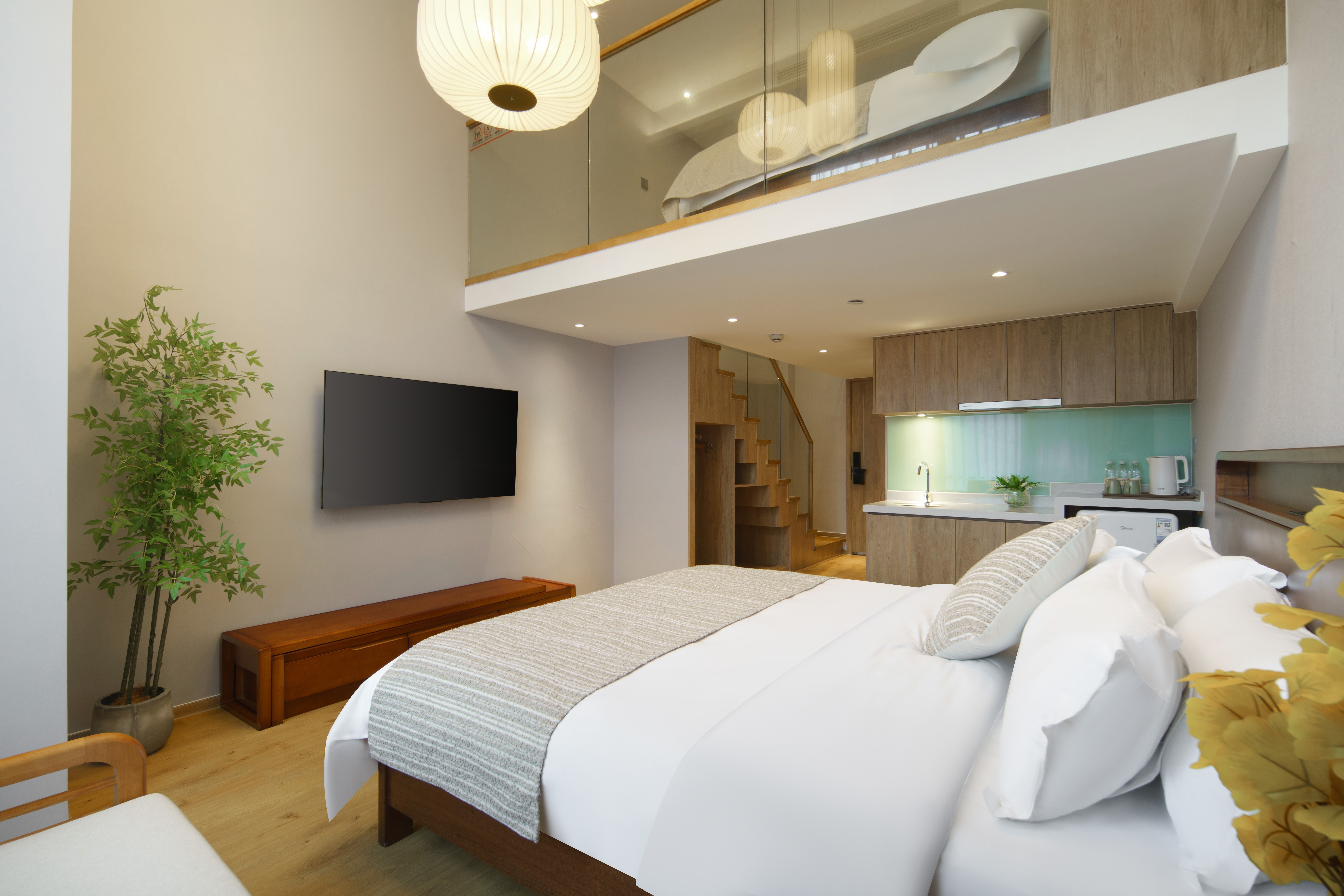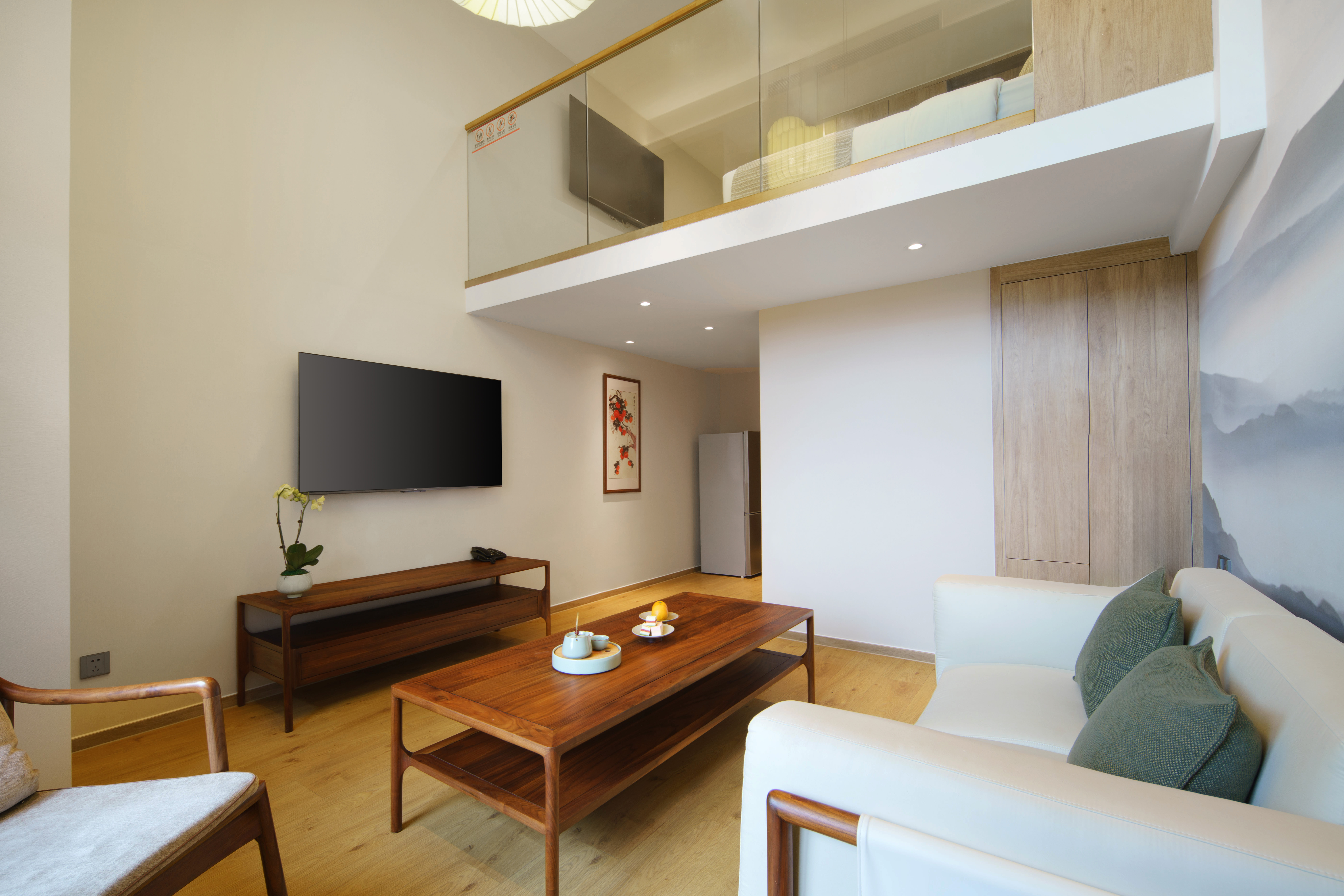 禅意复式大床房(胡桃木家俱+双55寸电视+独立冰箱)