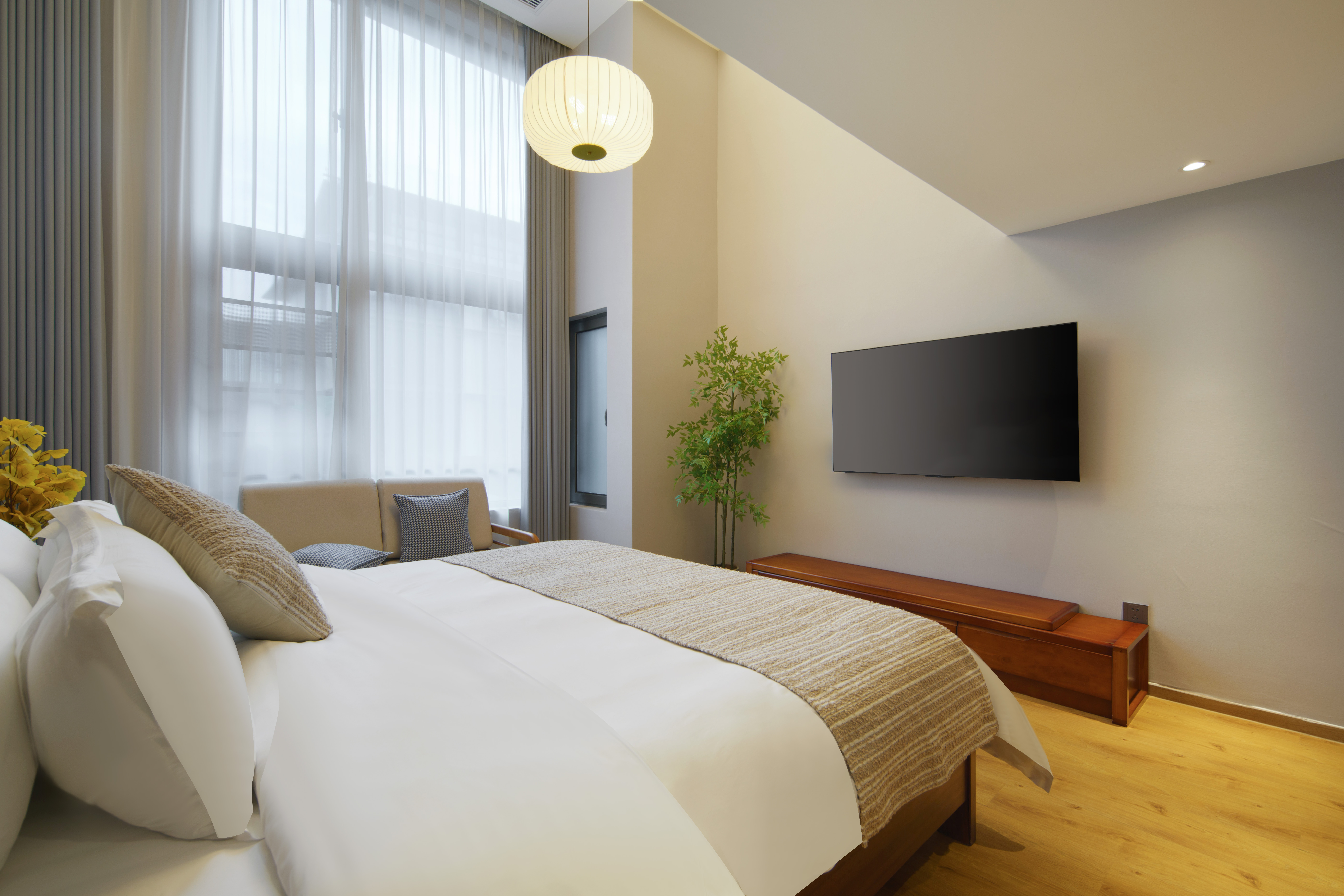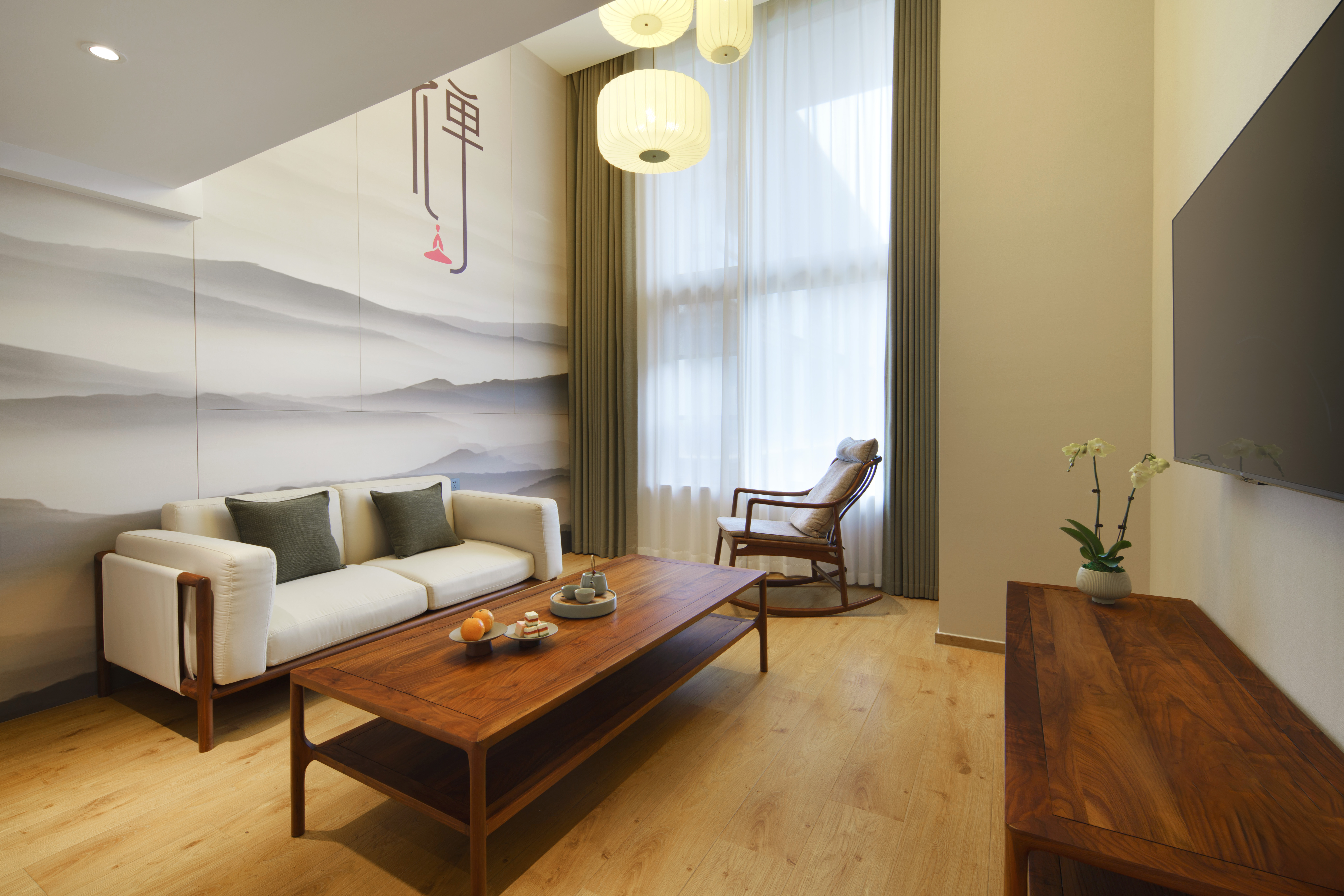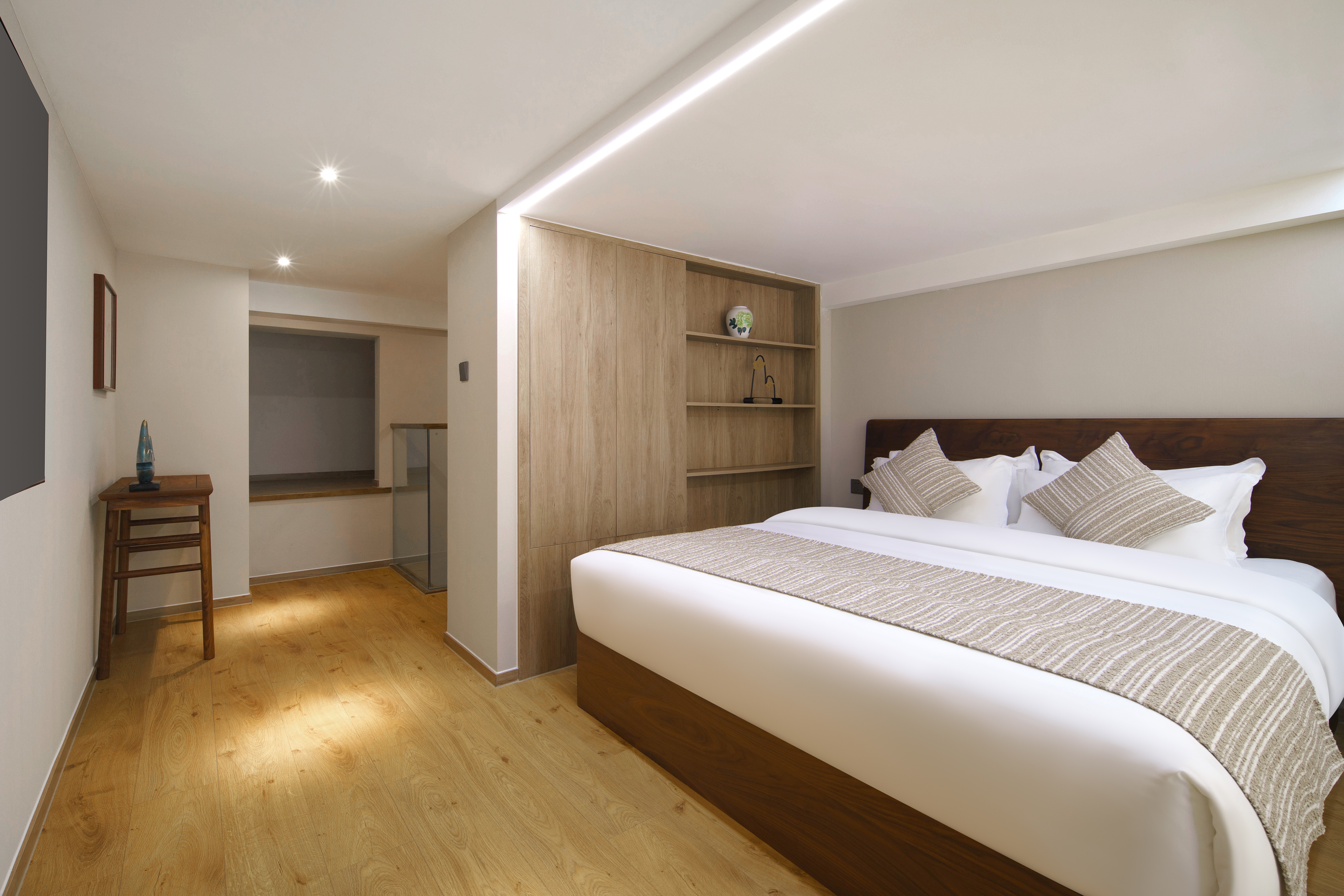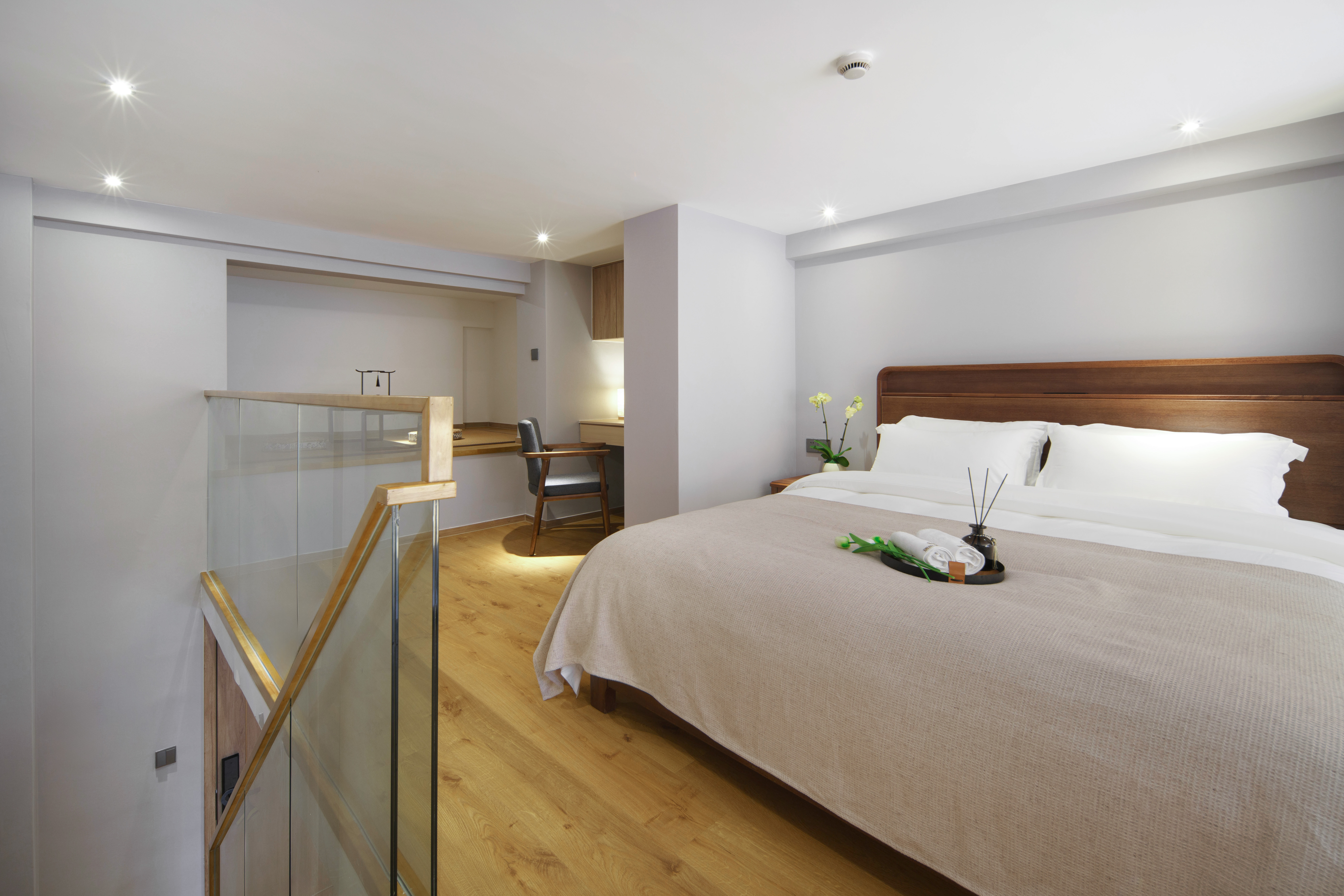 禅意复式大床房(胡桃木家俱+双55寸电视+独立冰箱)