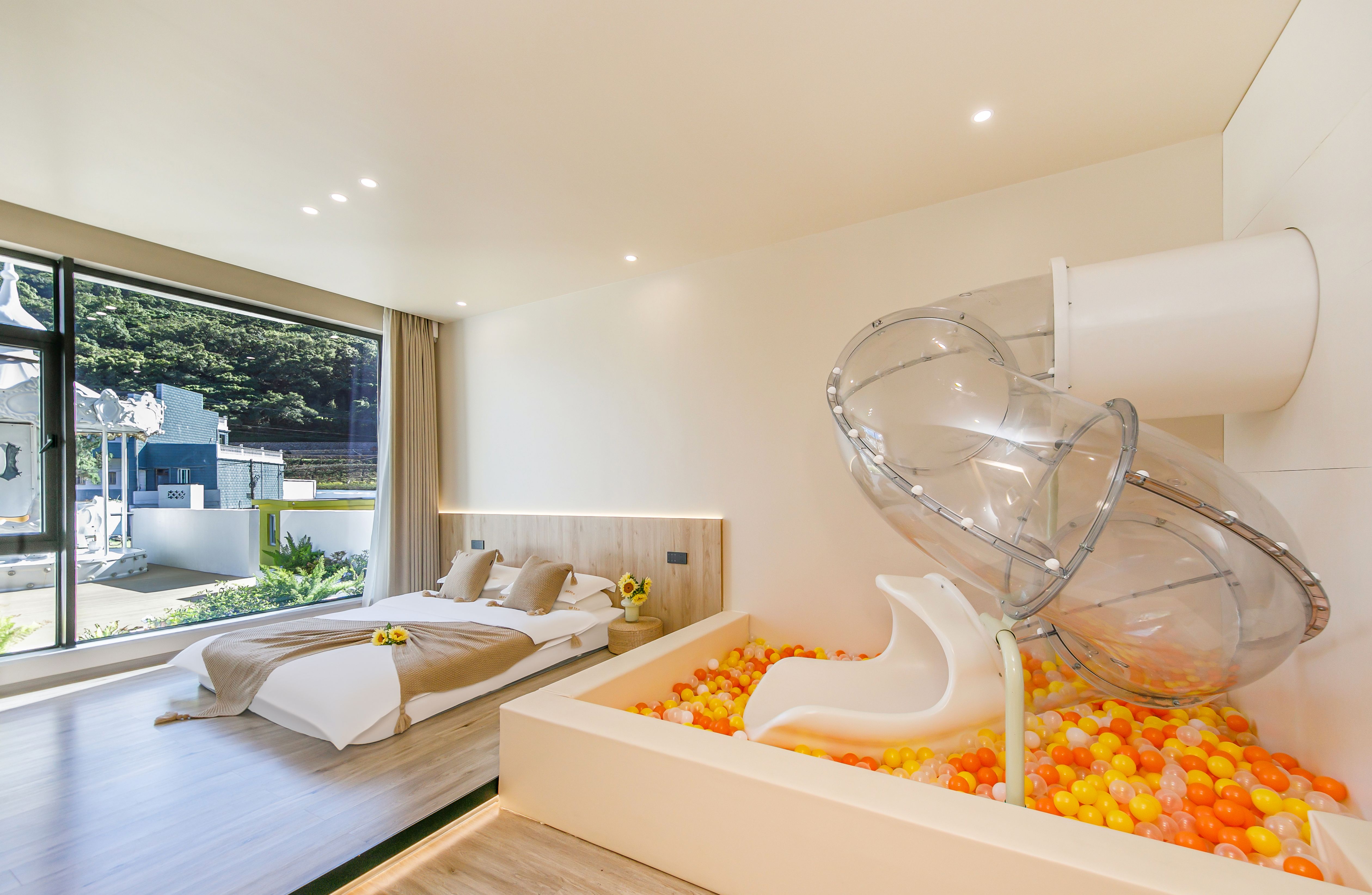 初夏里·滑滑梯家庭双卧亲子套房(2室1厅+私人庭院)