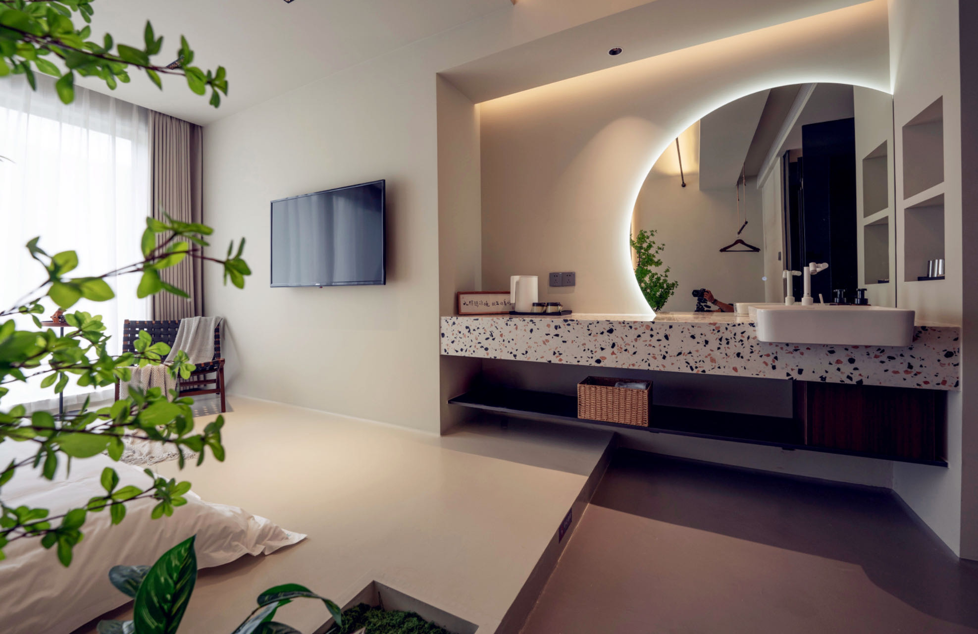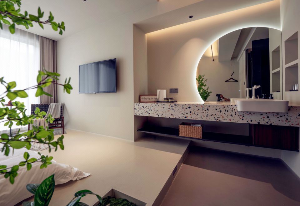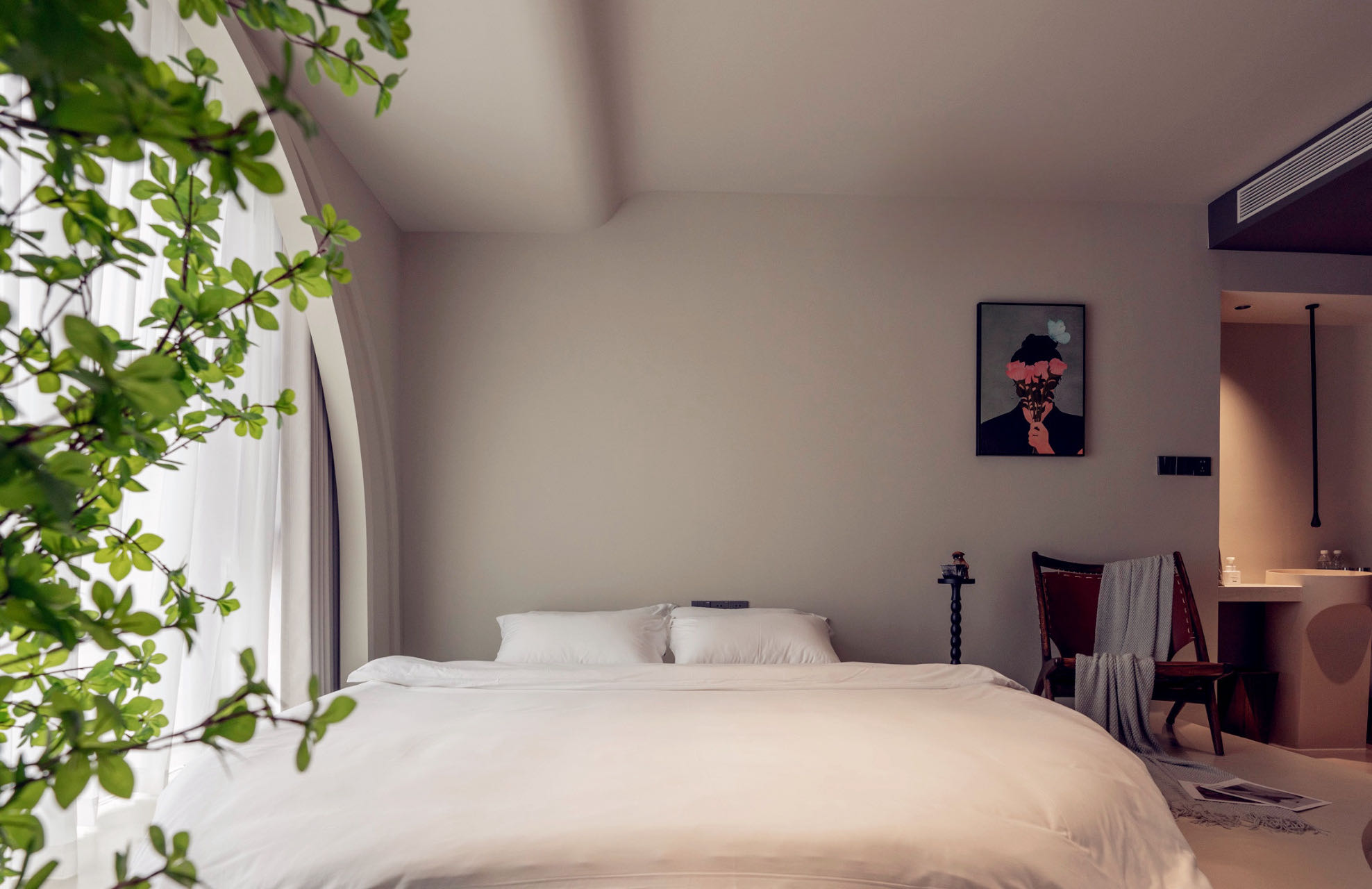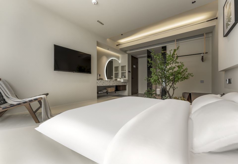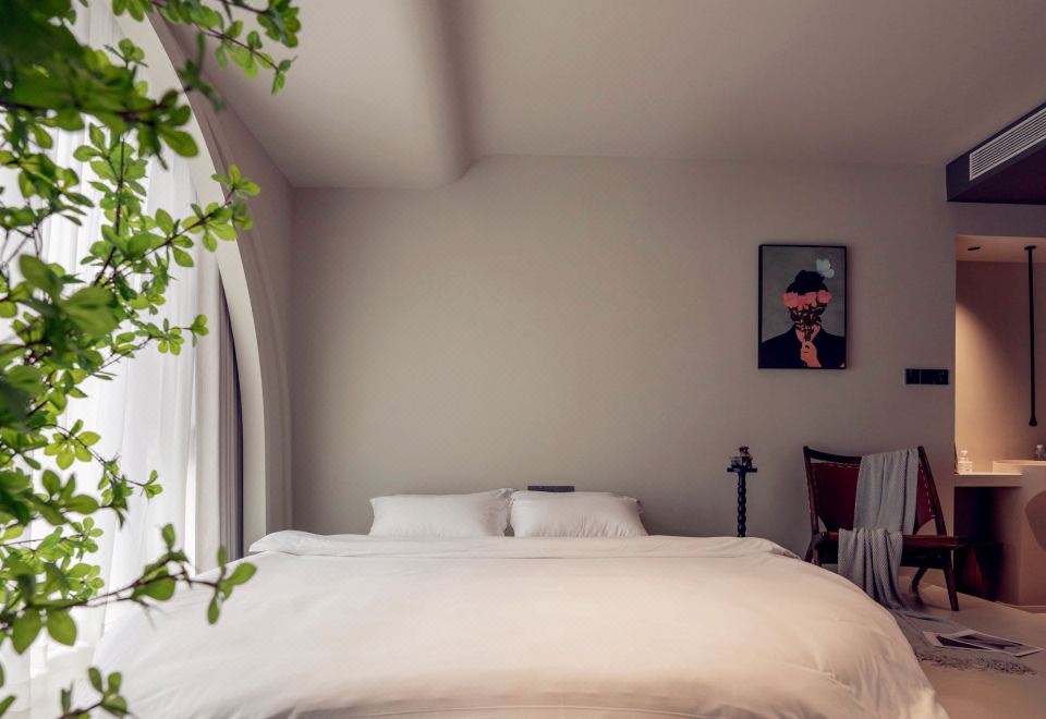槐序·自然憩息大床房|深睡床枕|养眼绿植|悠闲一角