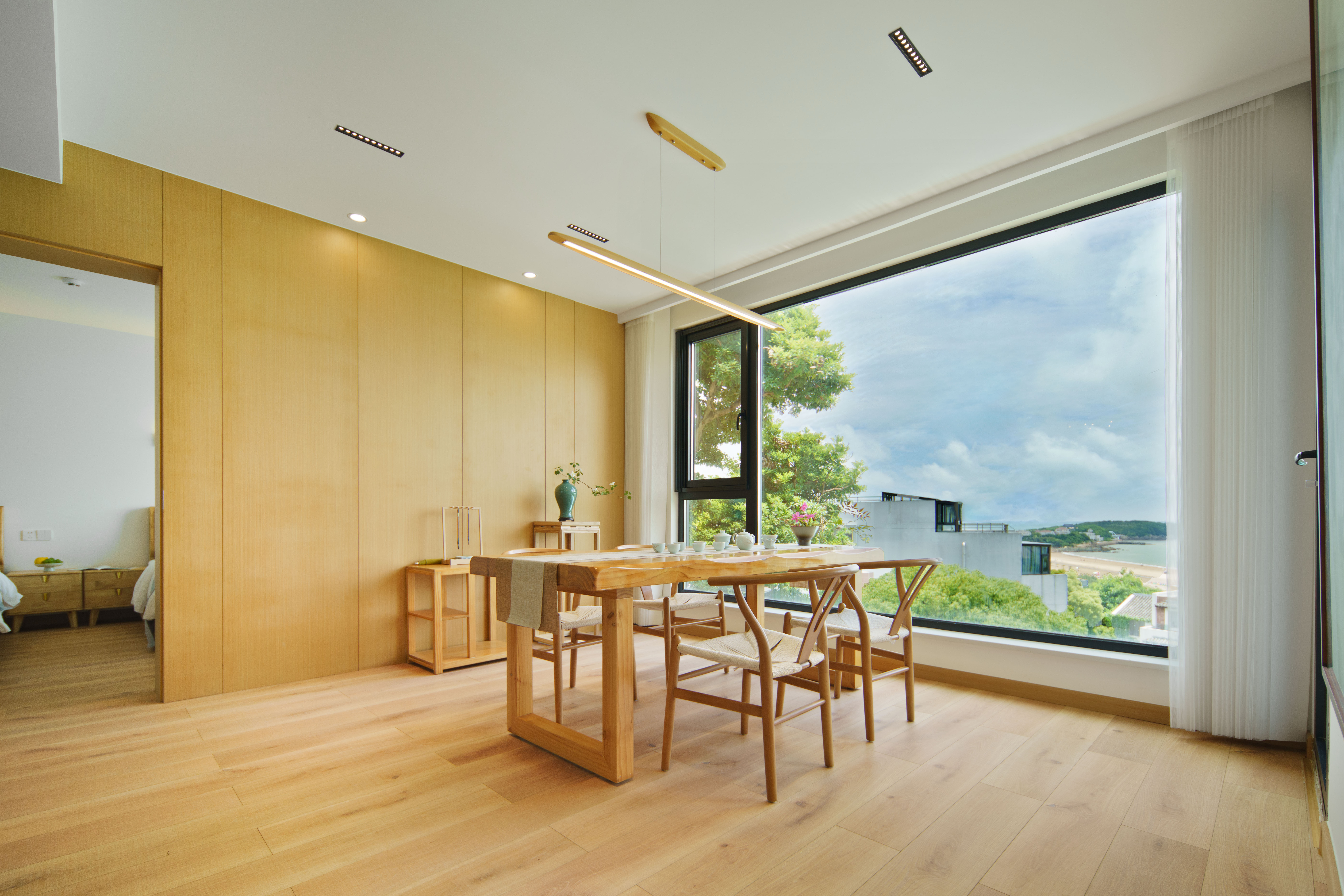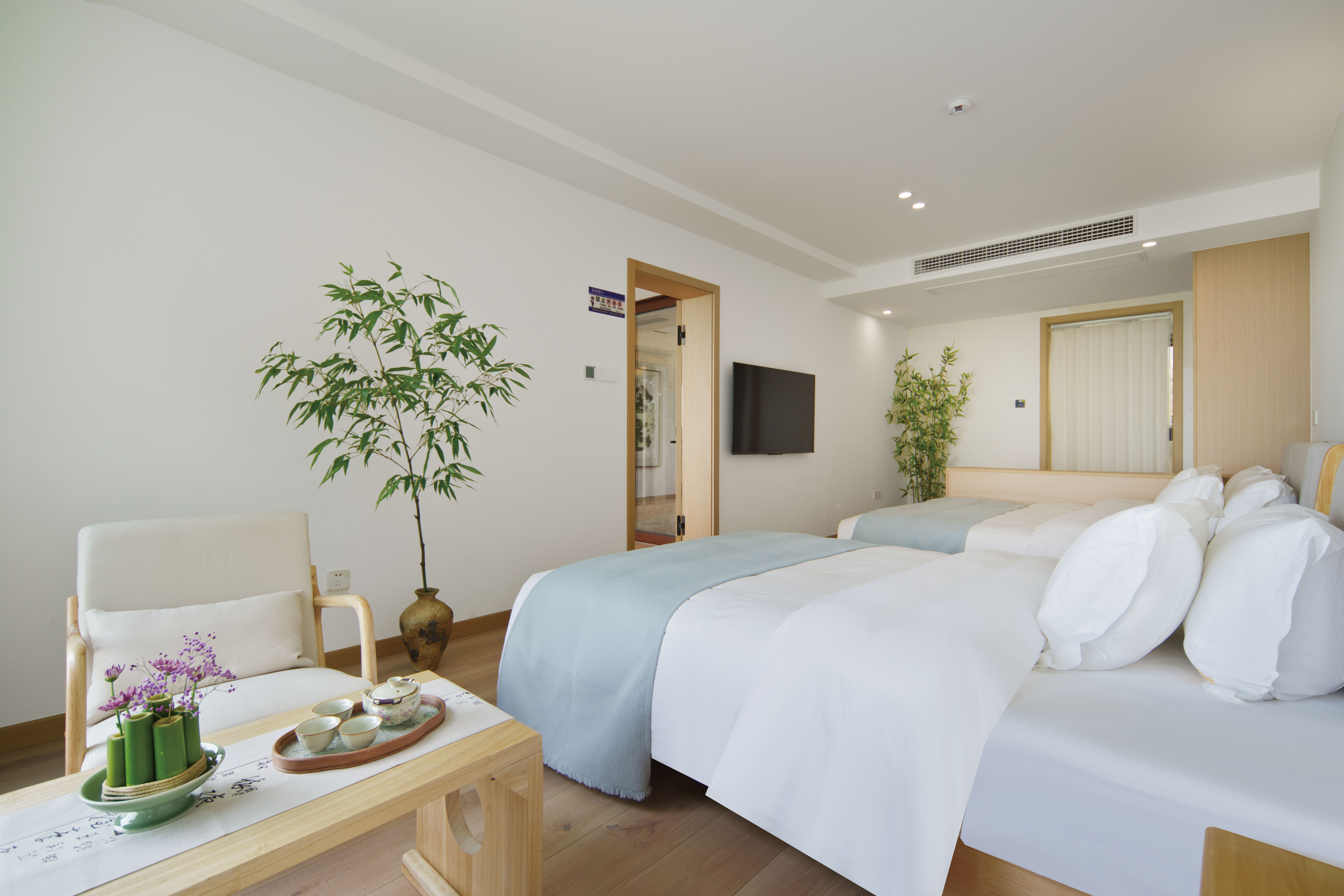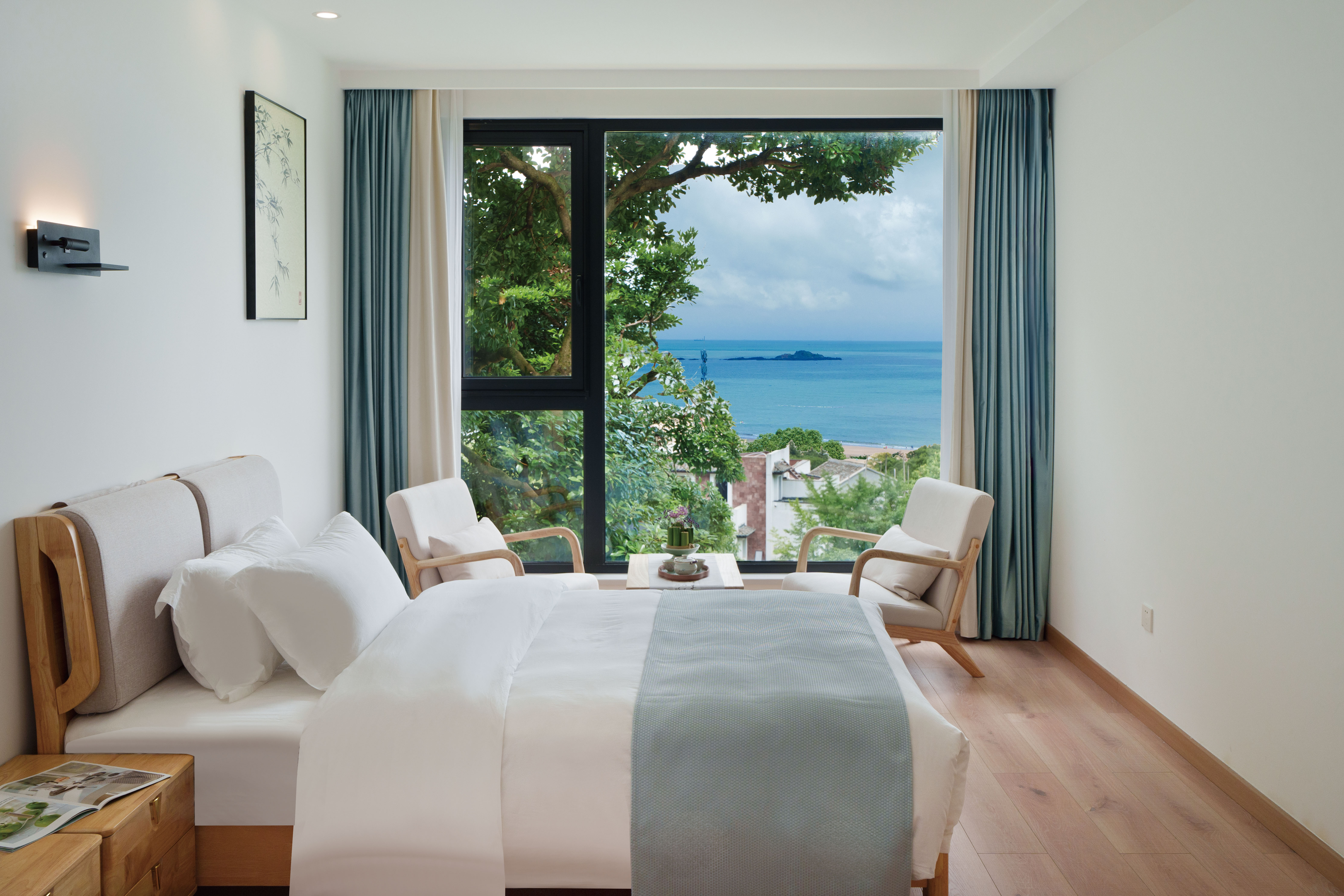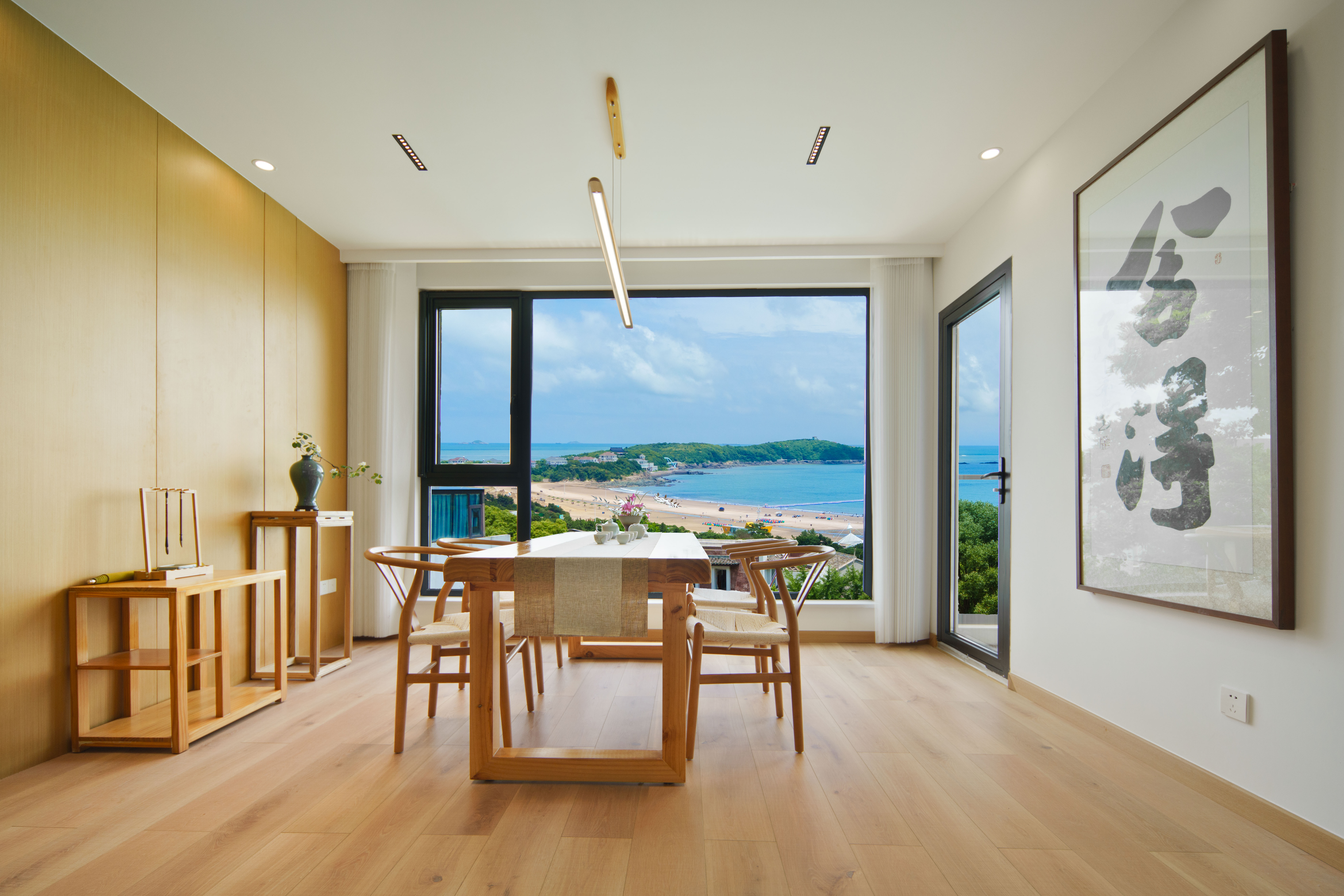 Elegant竹韻·新中式禪意全海景雙床家庭套房(禪意茶室+一線海景日出景觀+東方插花+書法掛畫)